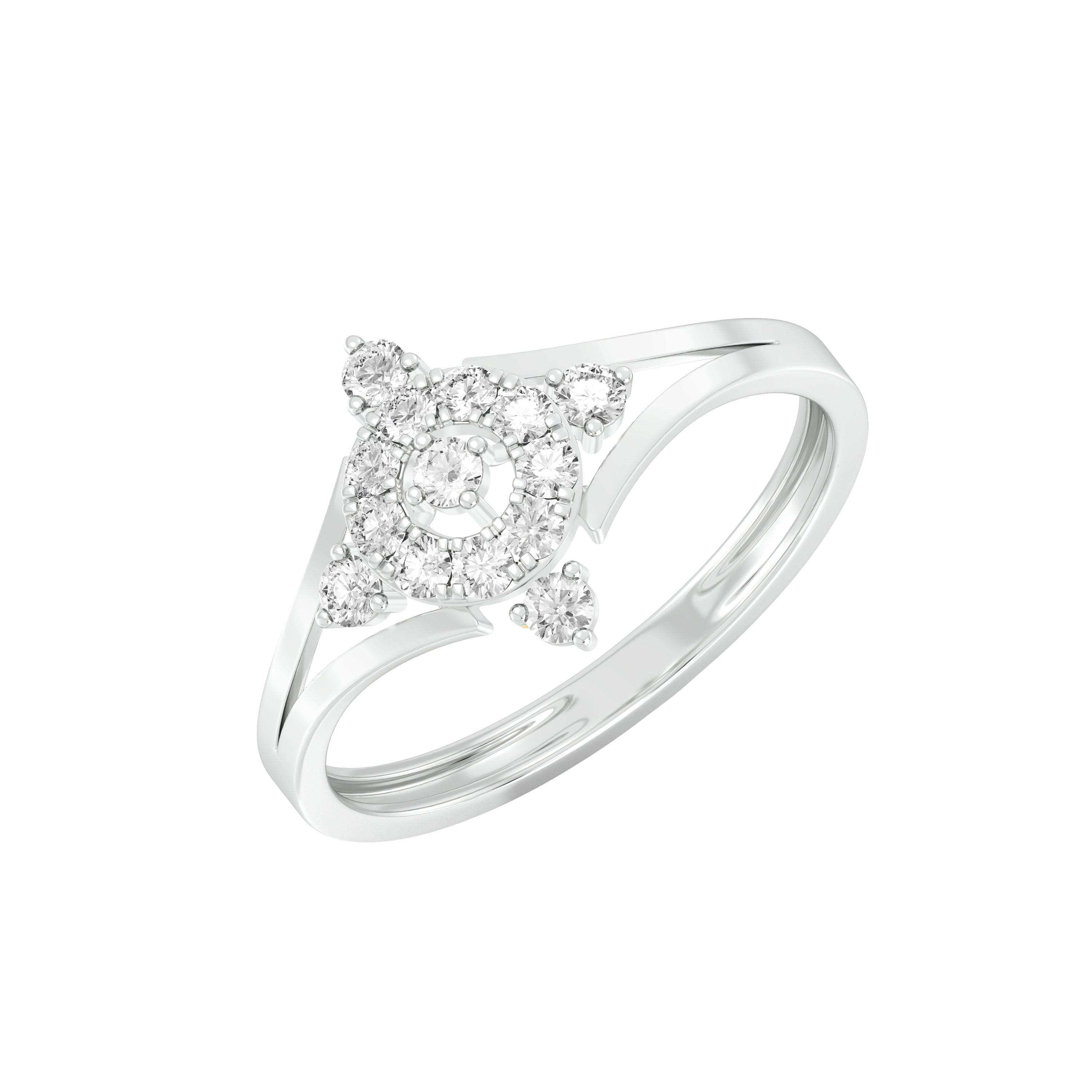 18k White Gold and Diamond Fancy Ring in size 5.5 measuring 21.1mm length x 15.98mm width. Total gold weight is approximately 1.51g.