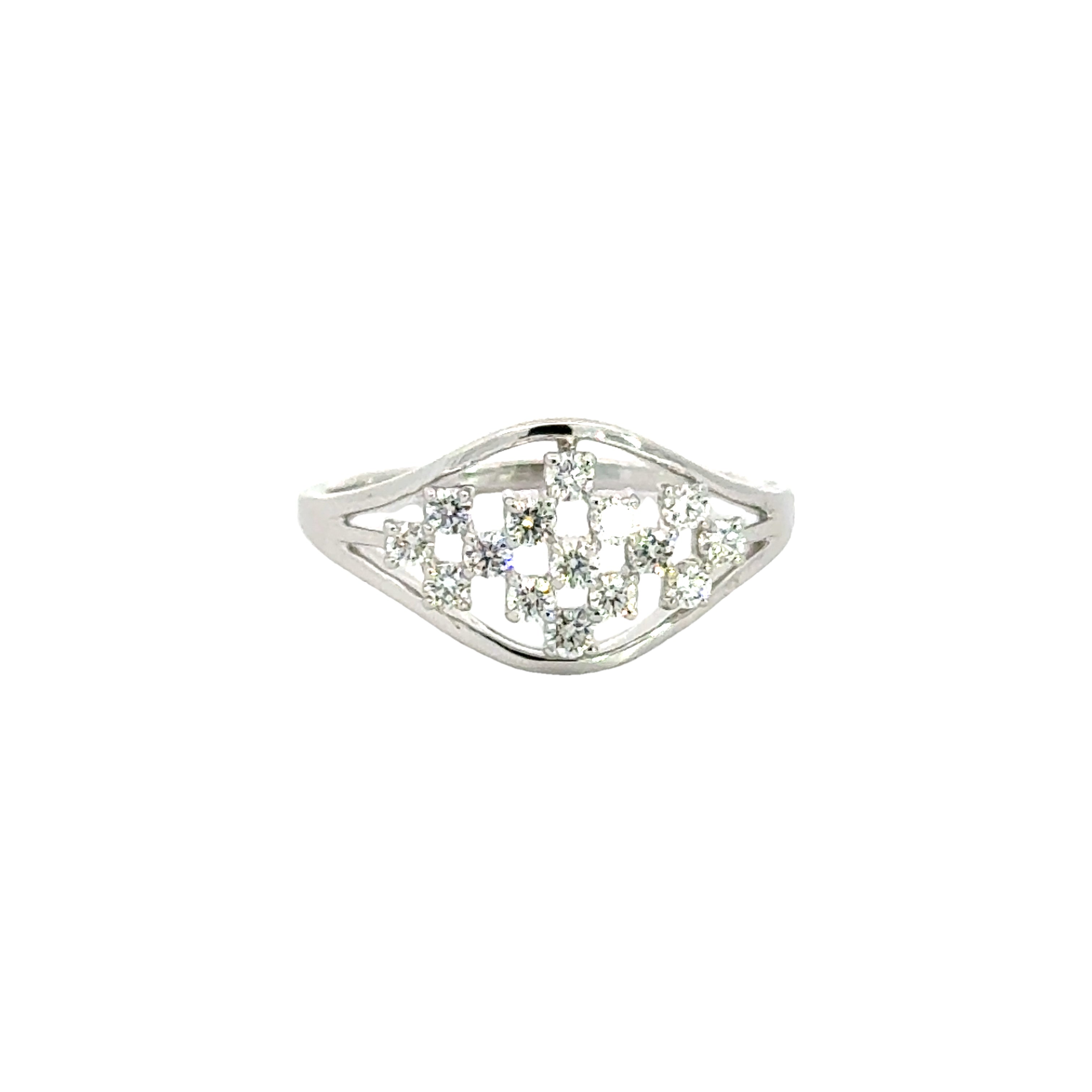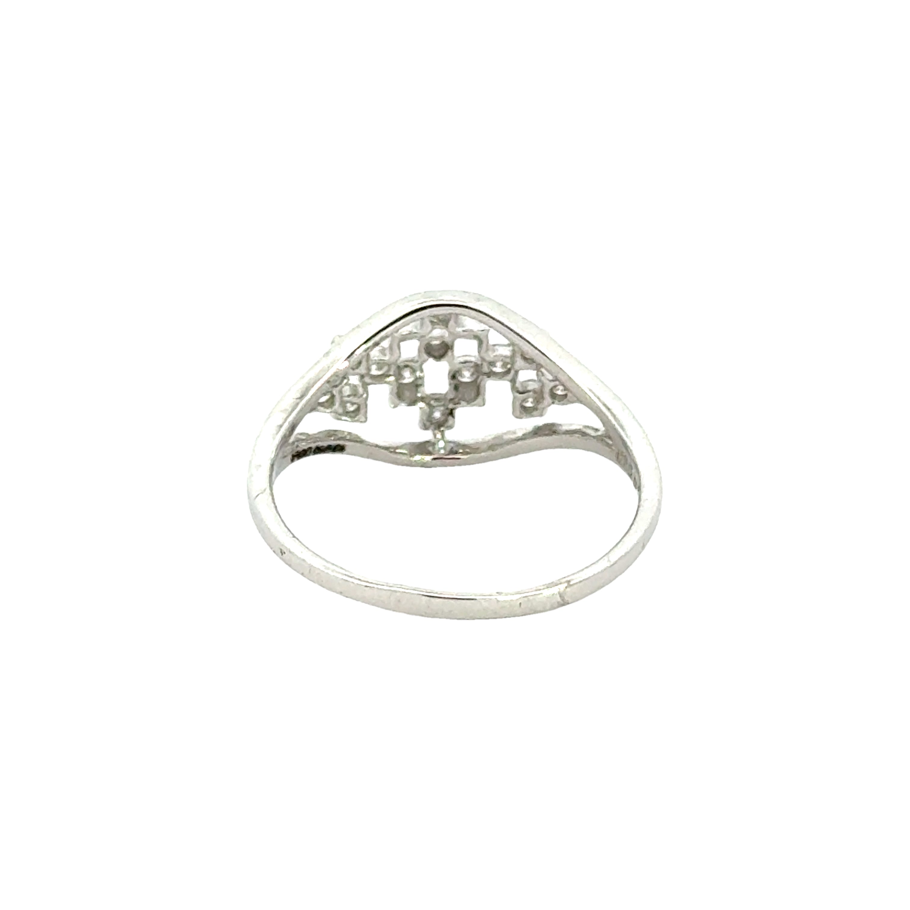 18k White Gold and Diamond Fancy Ring in size 5.5 measuring 23mm length x 16mm width. Total gold weight is approximately 1.91g.