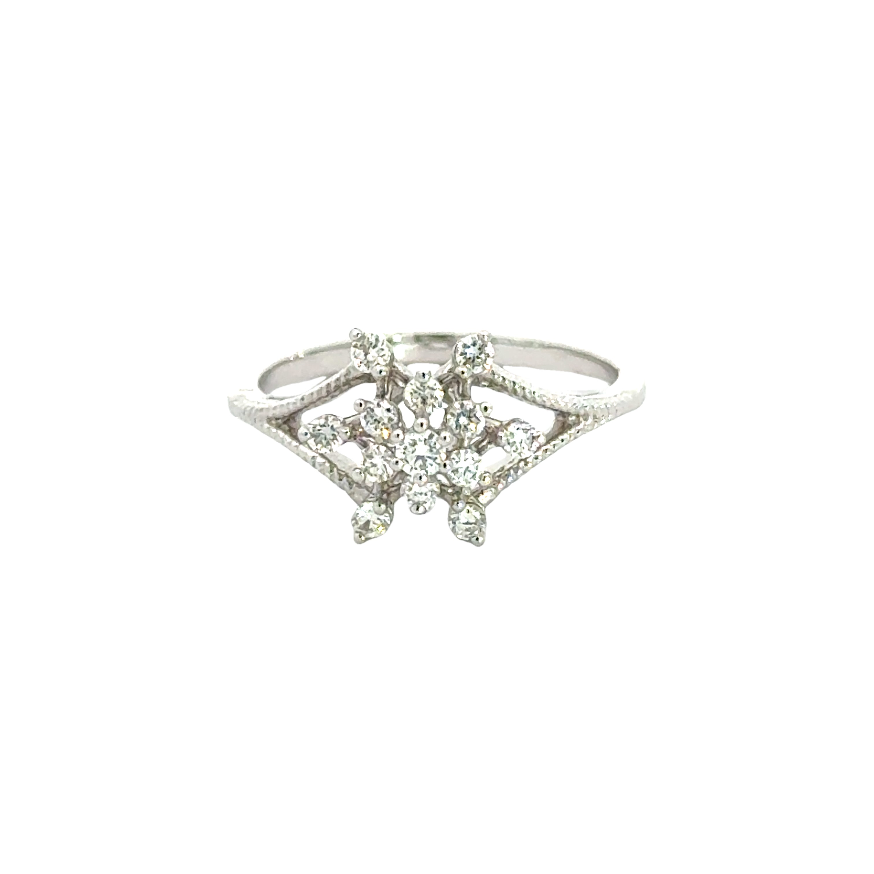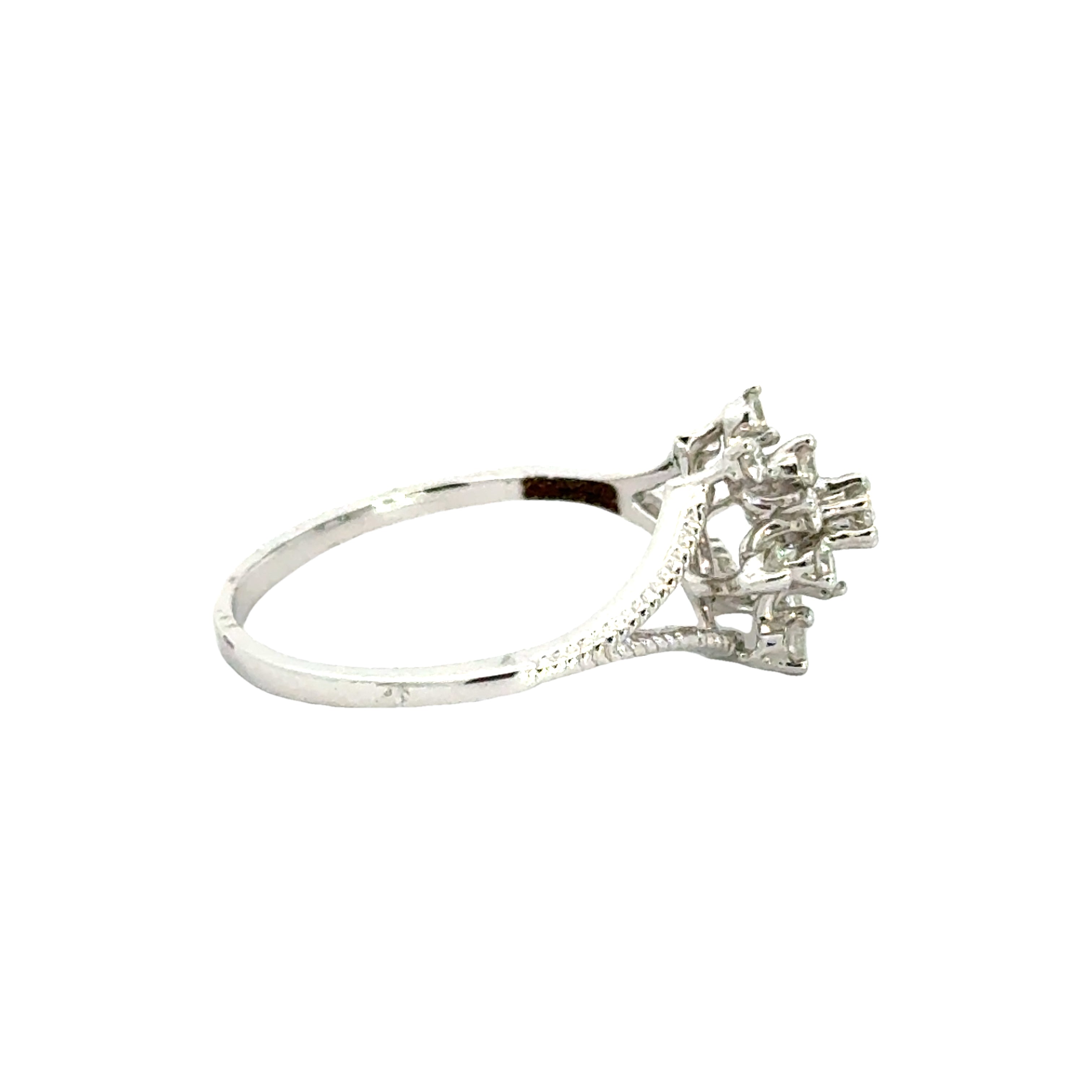18k White Gold and Diamond Fancy Ring in size 5.5 measuring 25mm length x 16mm width. Total gold weight is approximately 2.23g.