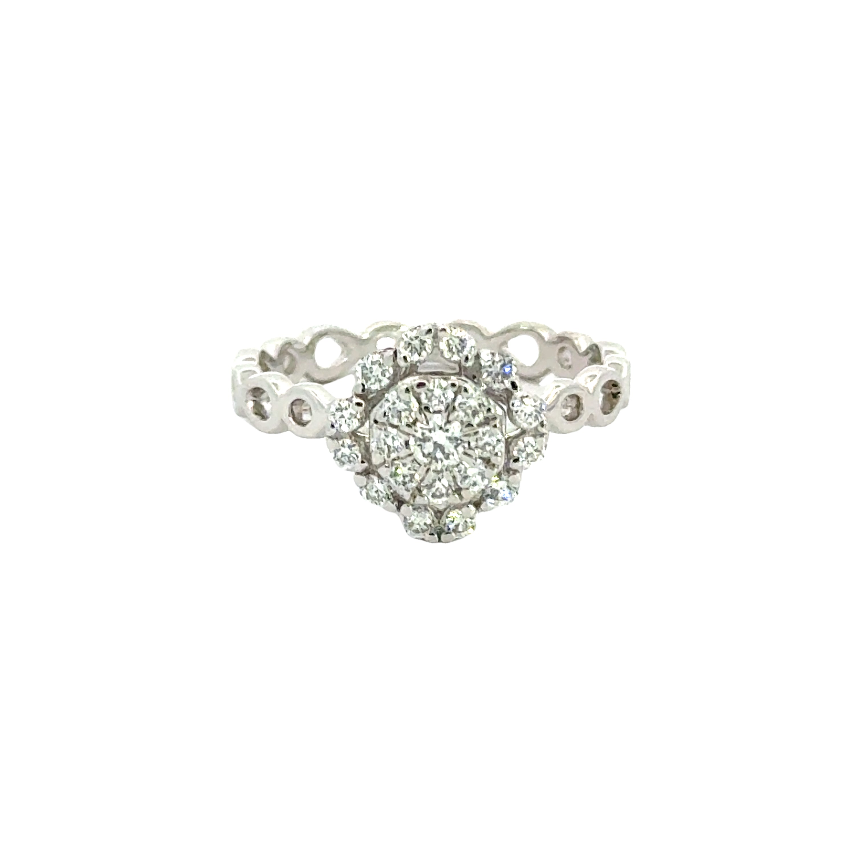 18k White Gold and Diamond Fancy Ring in size 5.5 measuring 25mm length x 16mm width. Total gold weight is approximately 2.75g.