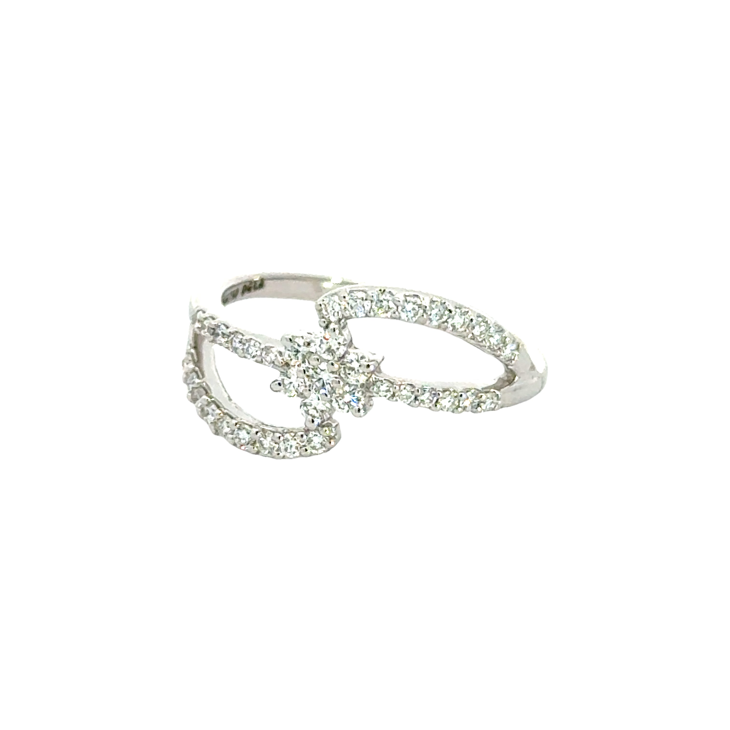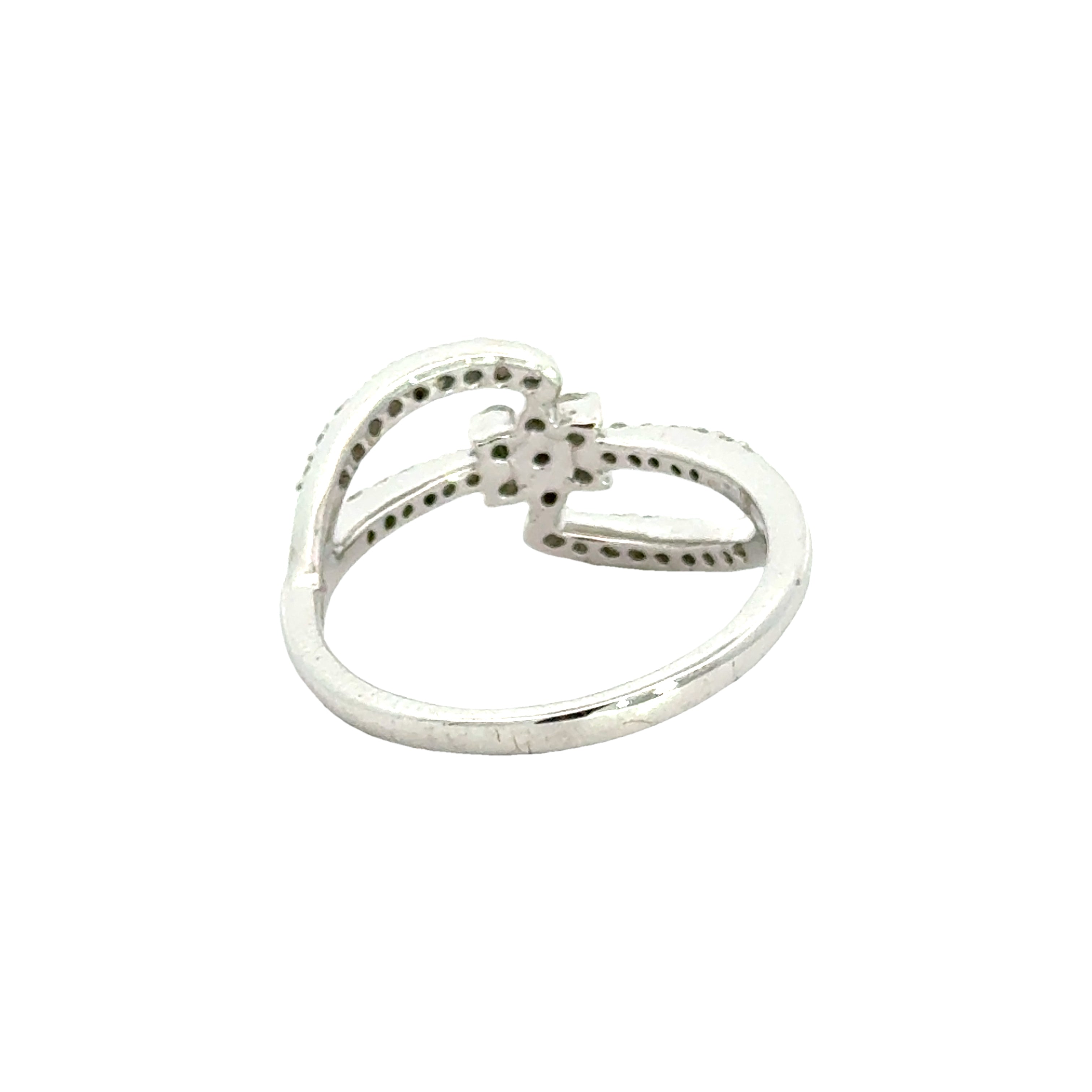 18k White Gold and Diamond Fancy Ring in size 5.5 measuring 20mm length x 16mm width. Total gold weight is approximately 2.76g.