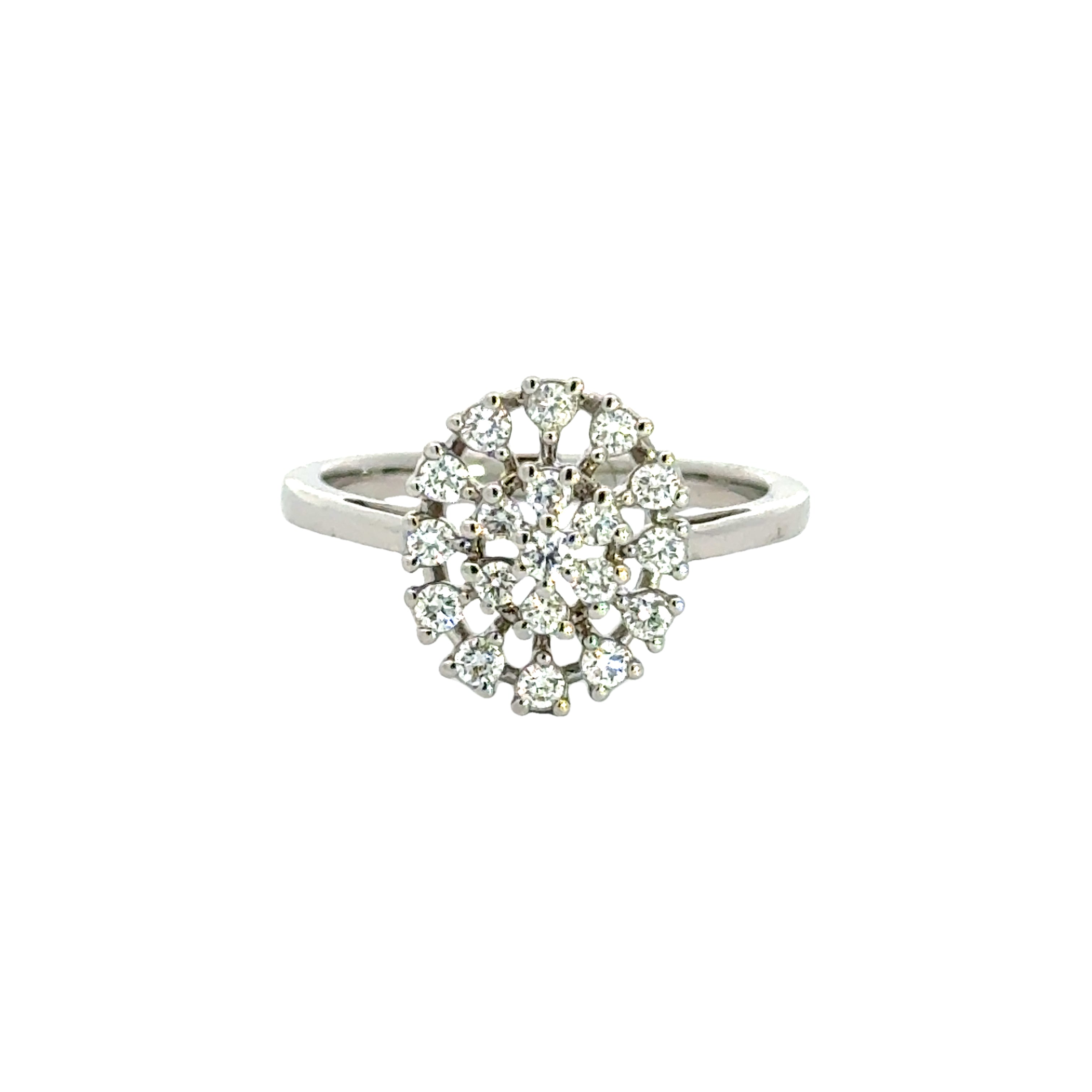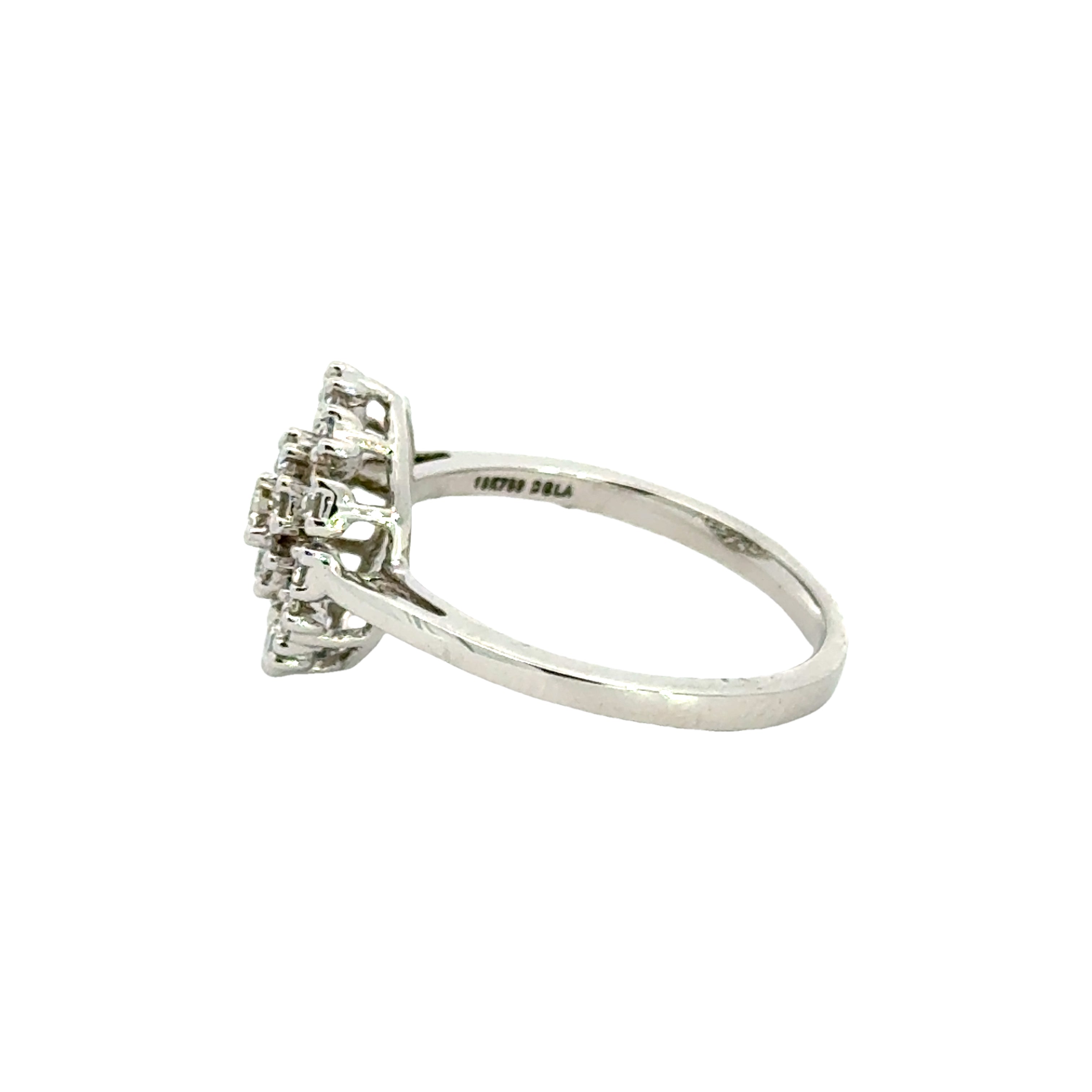 18k White Gold and Diamond Fancy Ring in size 5.5 measuring 23mm length x 16mm width. Total gold weight is approximately 2.81g.