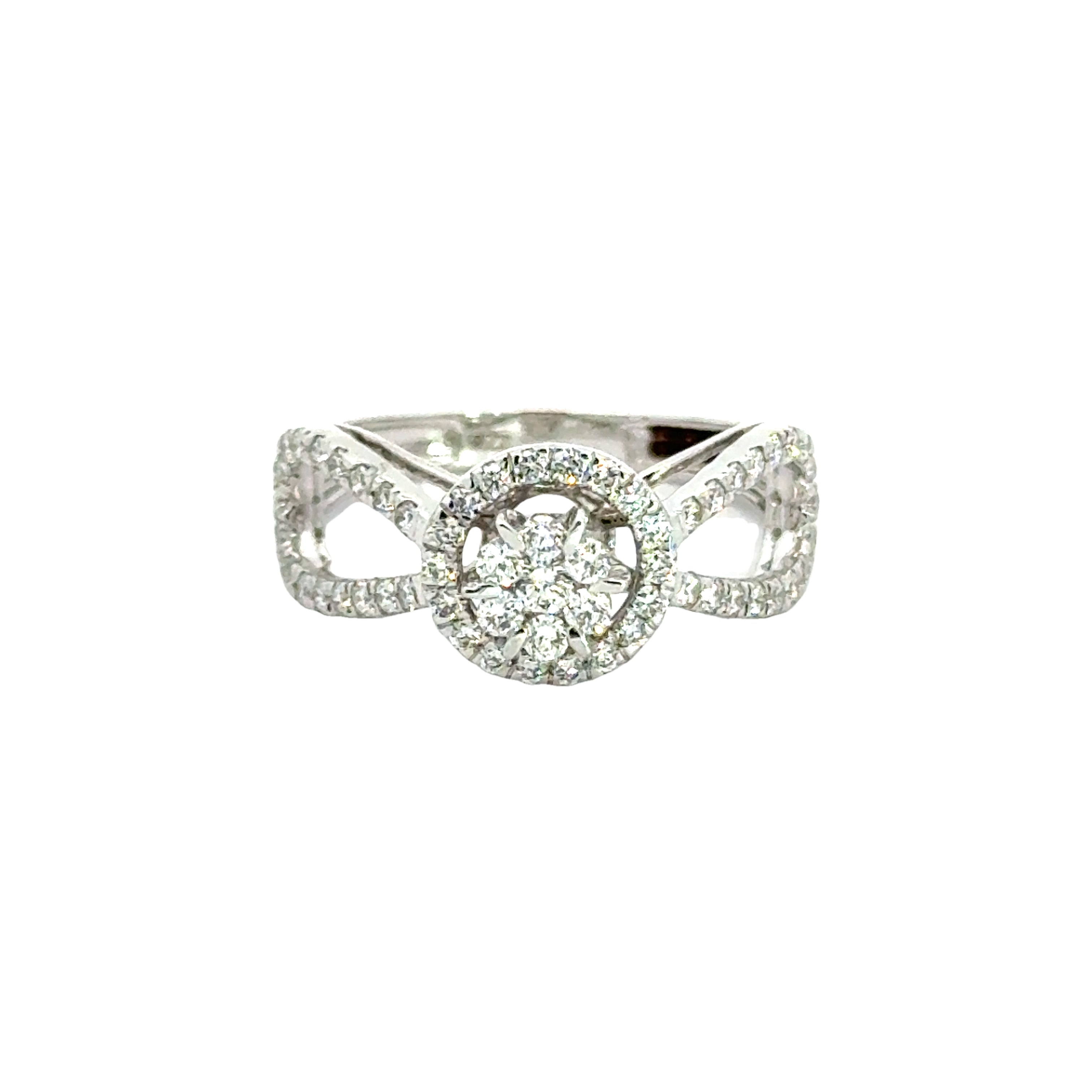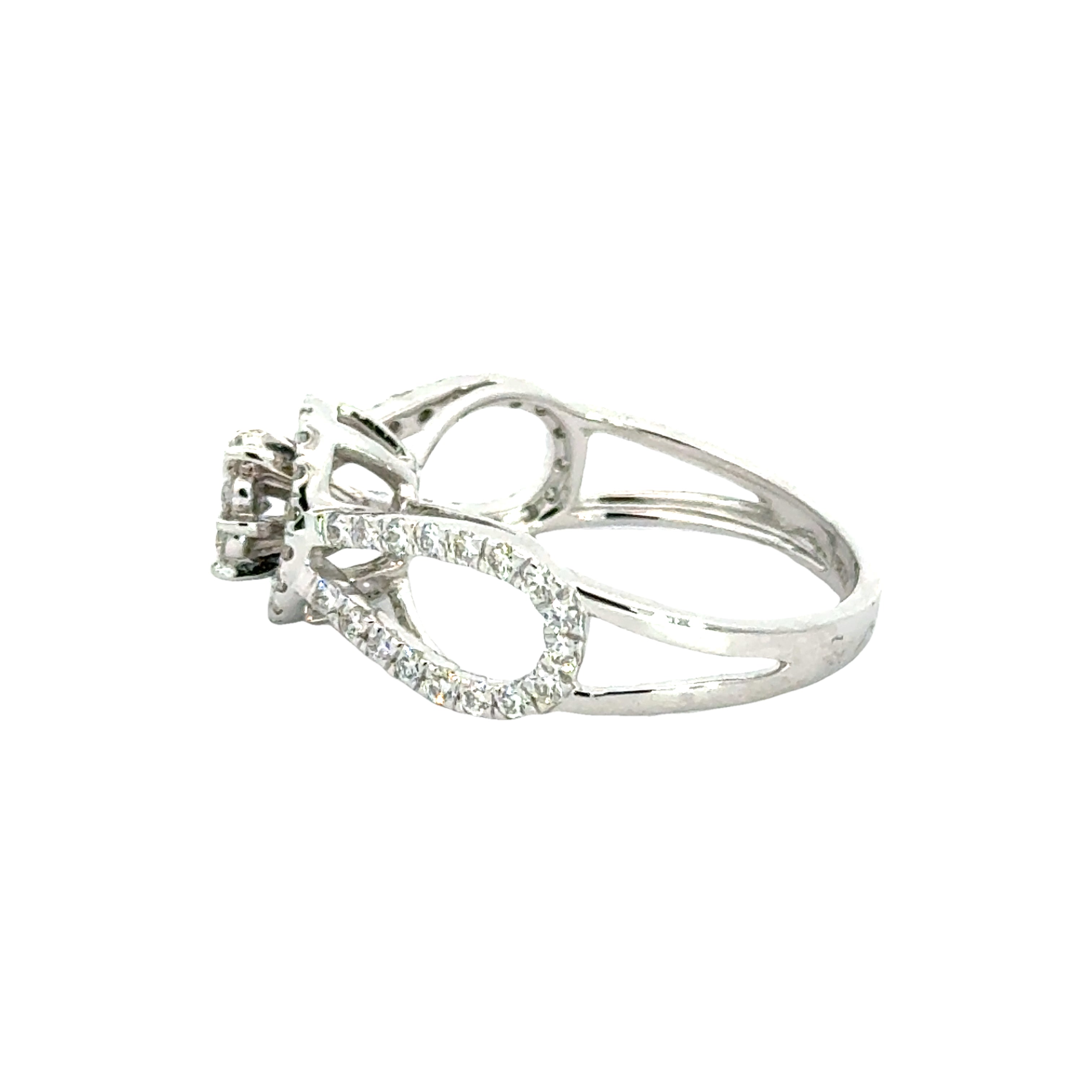 18k White Gold and Diamond Fancy Ring in size 5.5 measuring 25mm length x 16mm width. Total gold weight is approximately 3.28g.