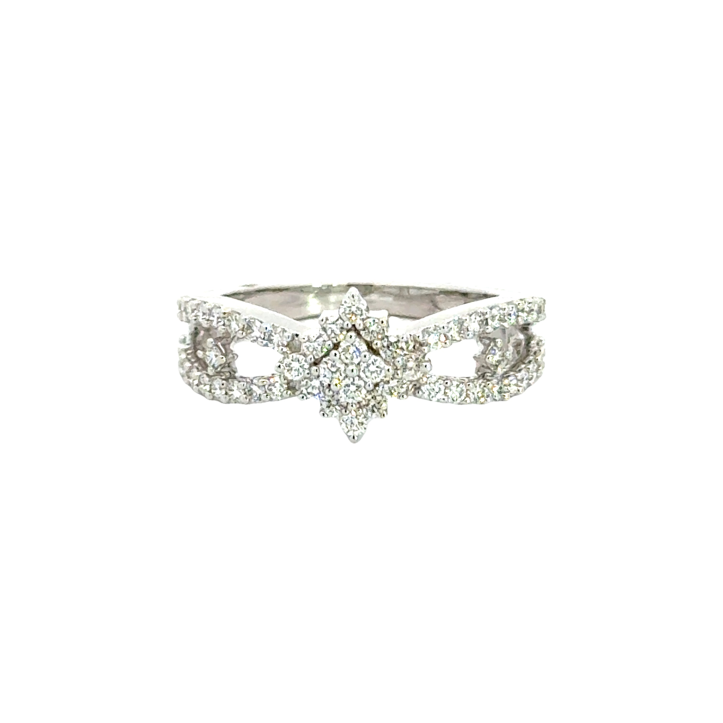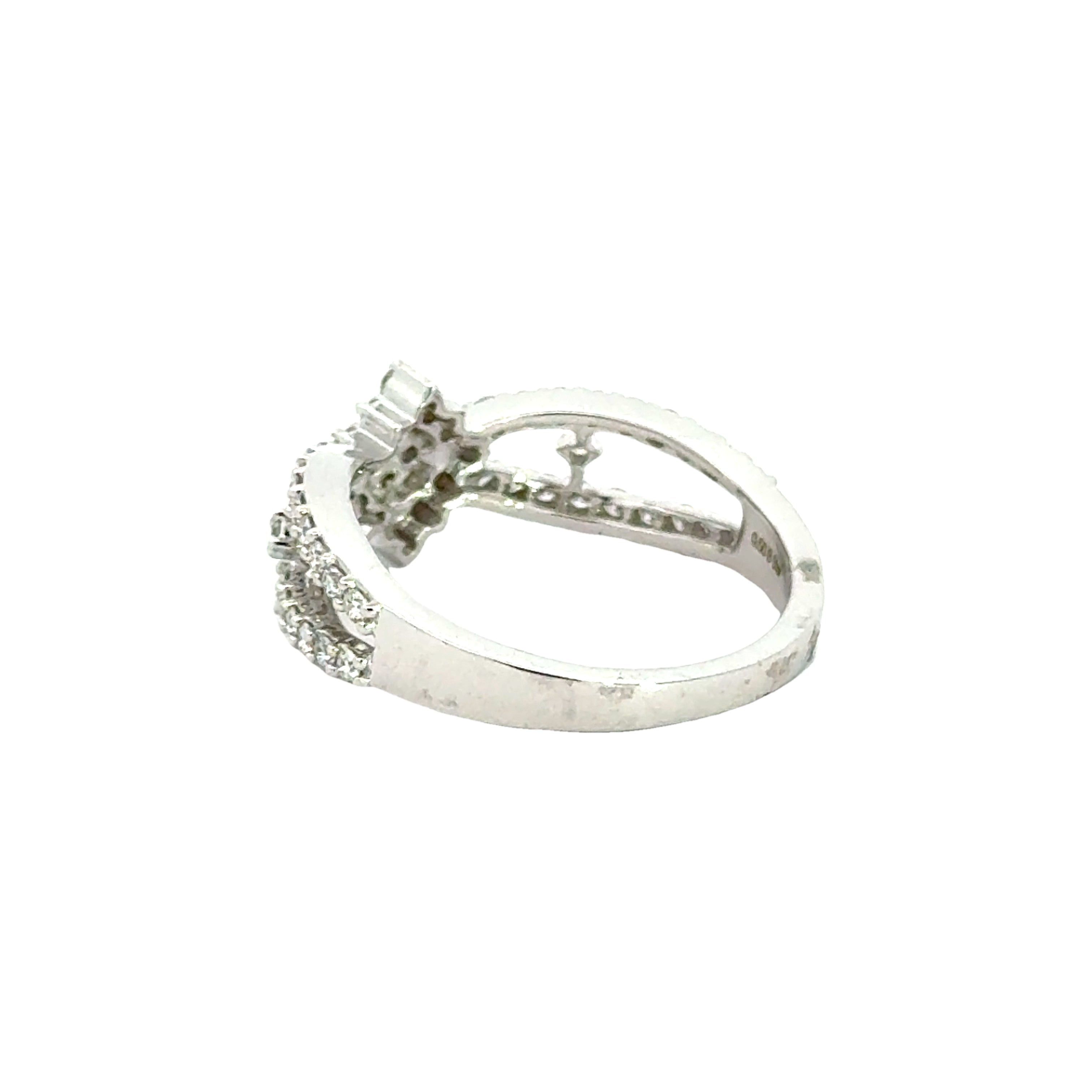 18k White Gold and Diamond Fancy Ring in size 5.5 measuring 23mm length x 16mm width. Total gold weight is approximately 3.2g.