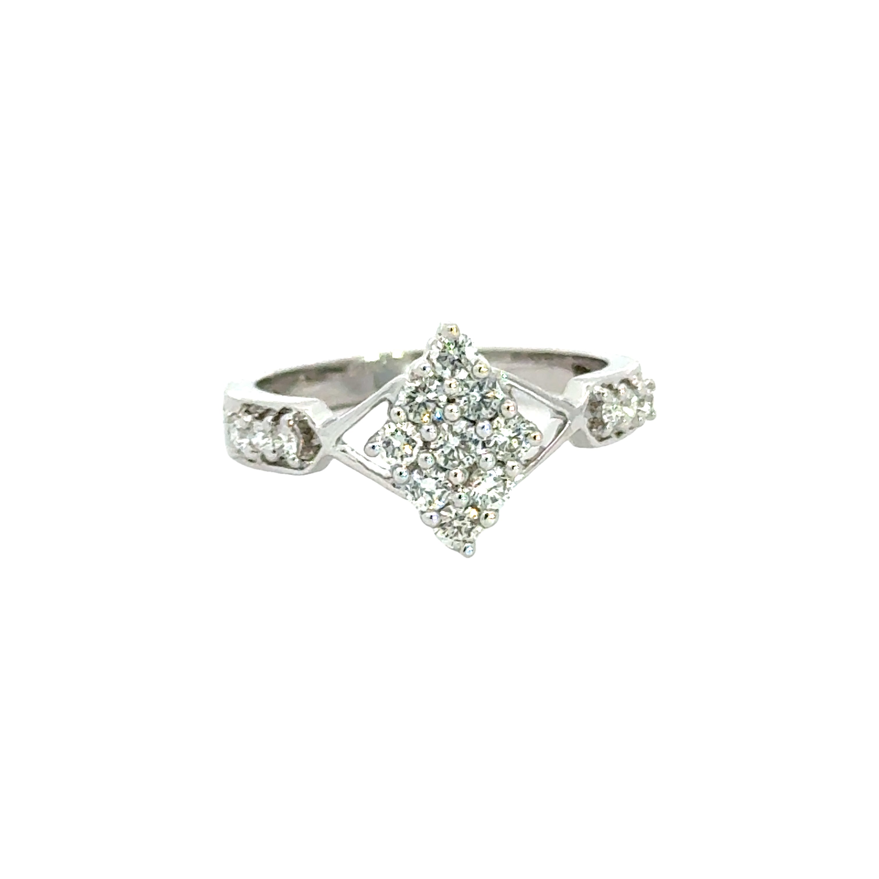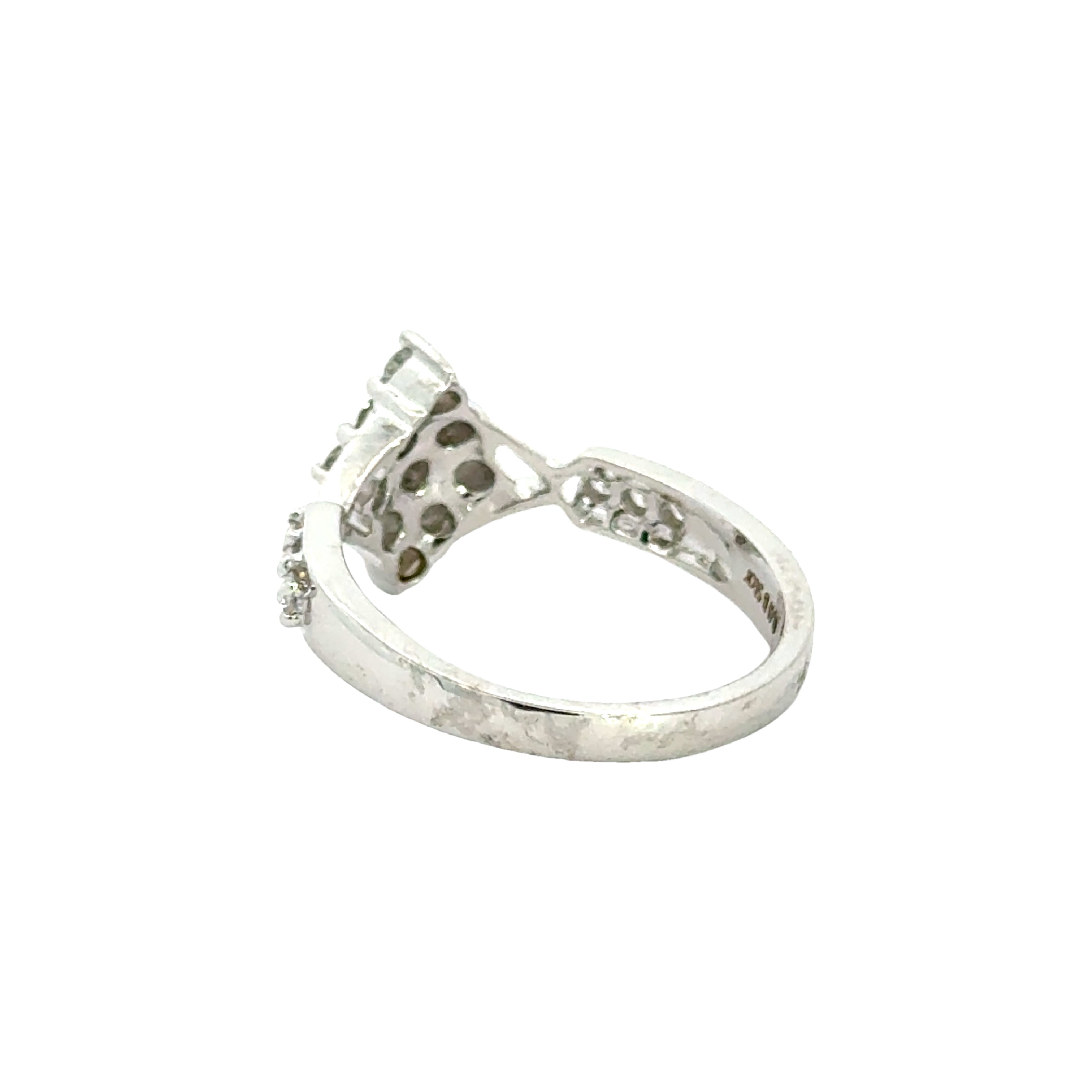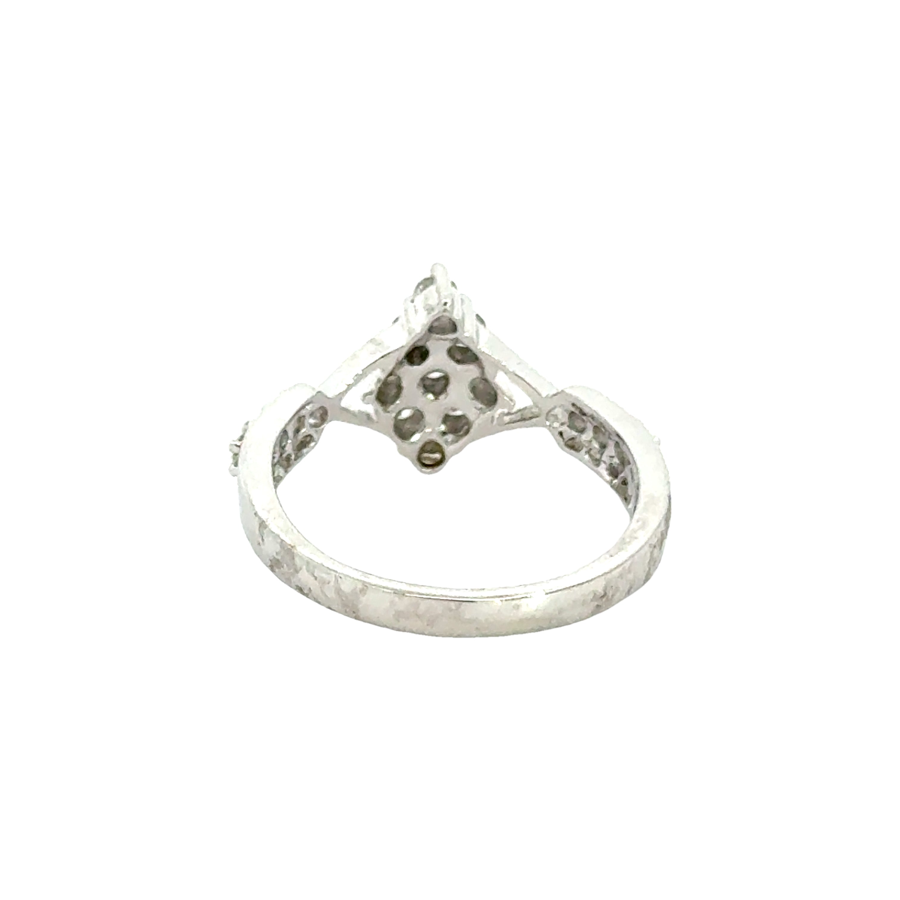 18k White Gold and Diamond Fancy Ring in size 5.5 measuring 23mm length x 16mm width. Total gold weight is approximately 3.32g.