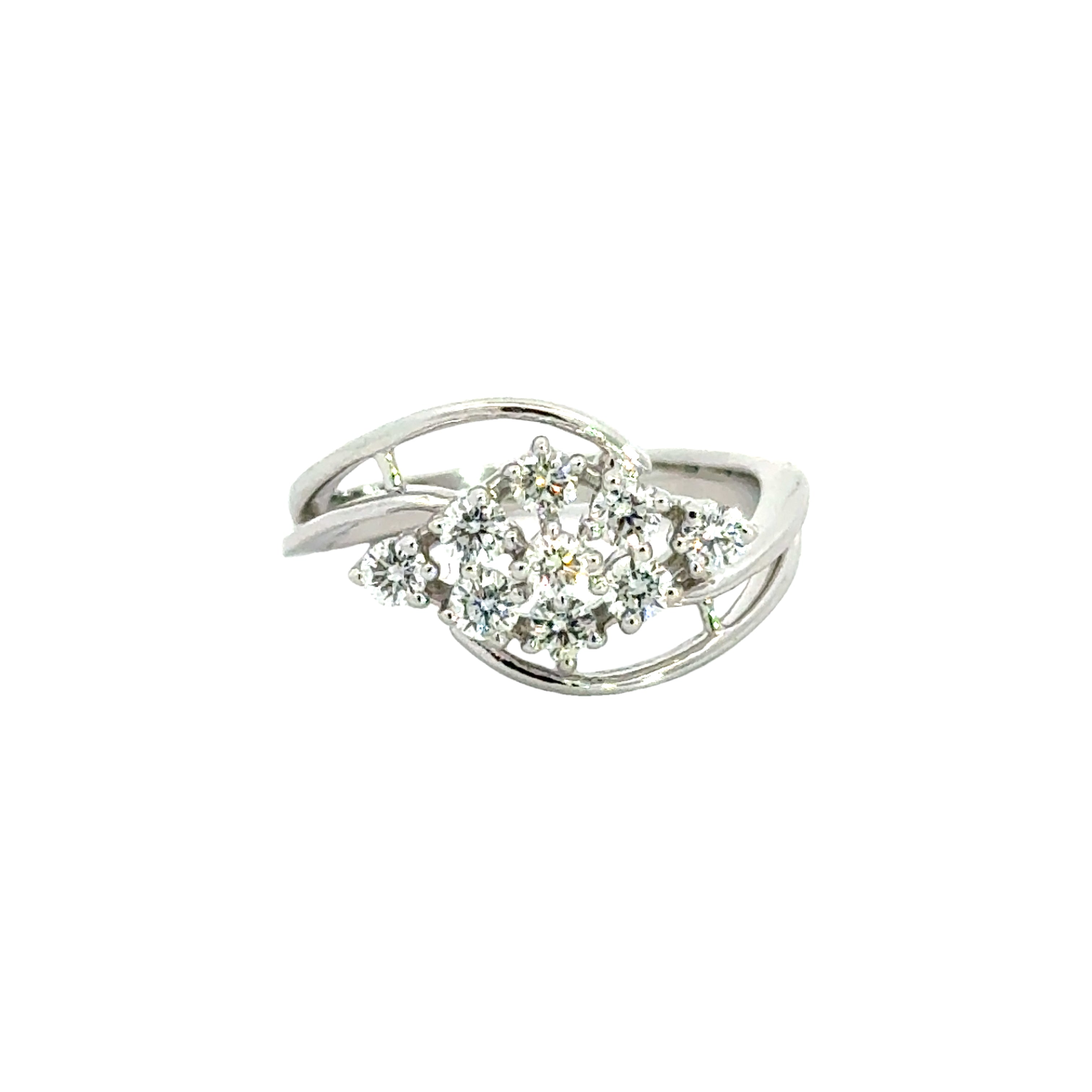 18k White Gold and Diamond Fancy Ring in size 5.5 measuring 23mm length x 16mm width. Total gold weight is approximately 3.76g.