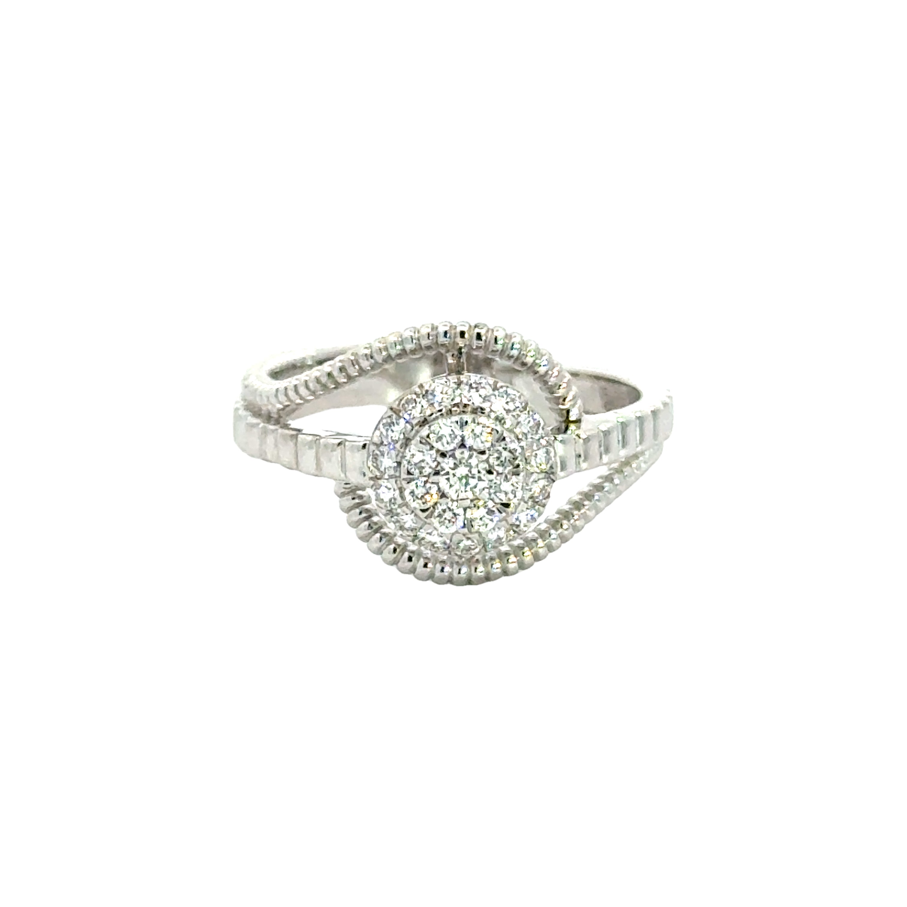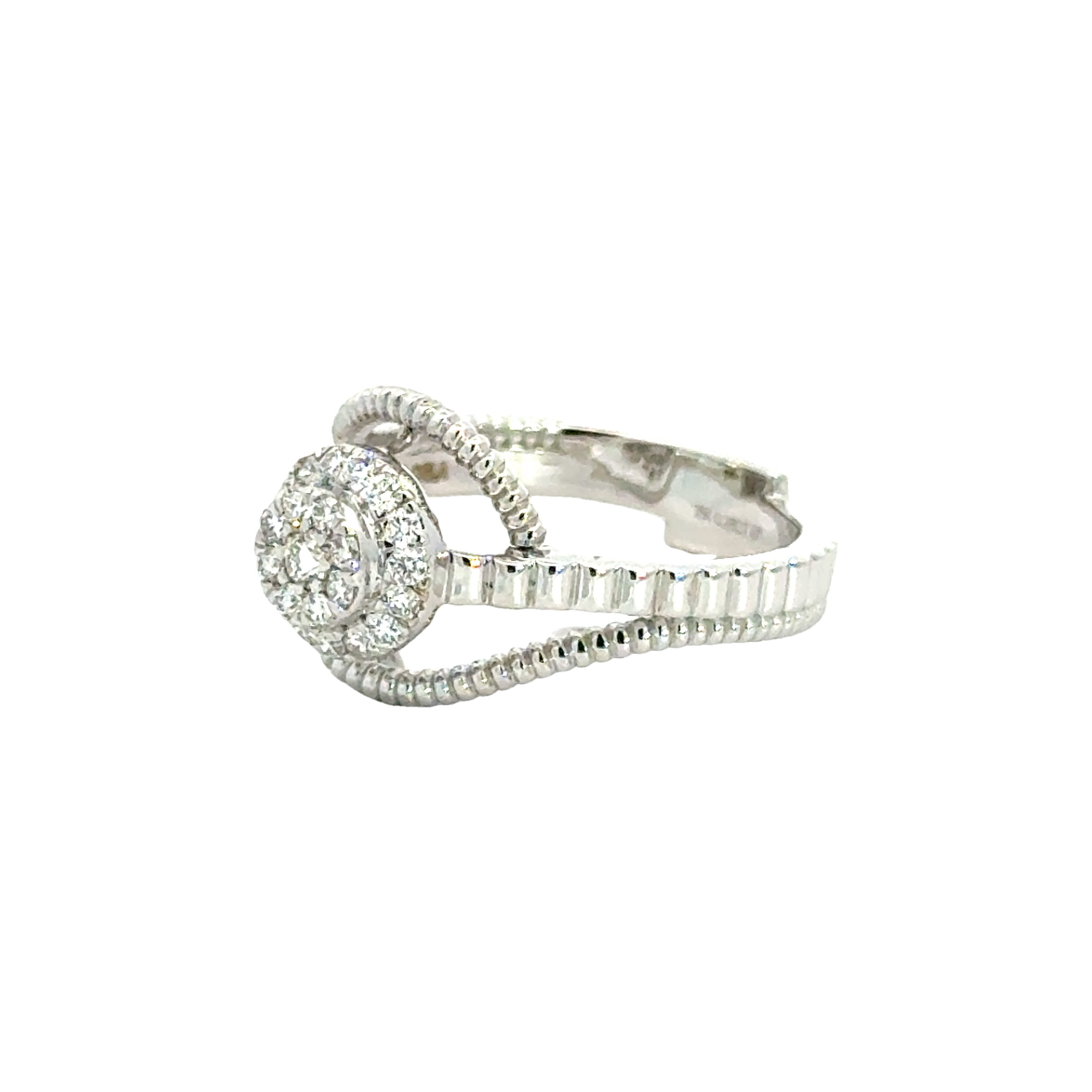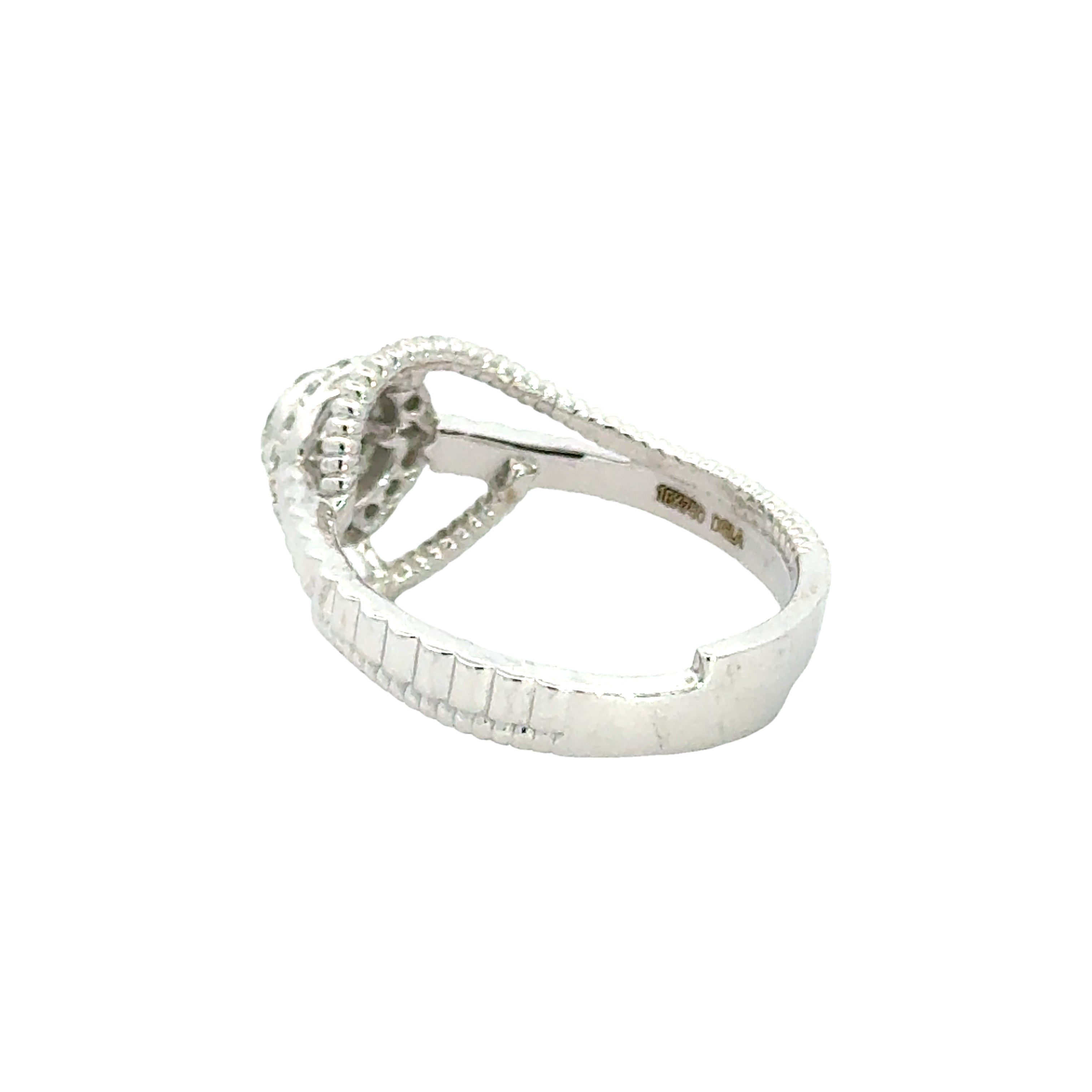 18k White Gold and Diamond Fancy Ring in size 5.5 measuring 25mm length x 16mm width. Total gold weight is approximately 4.42g.