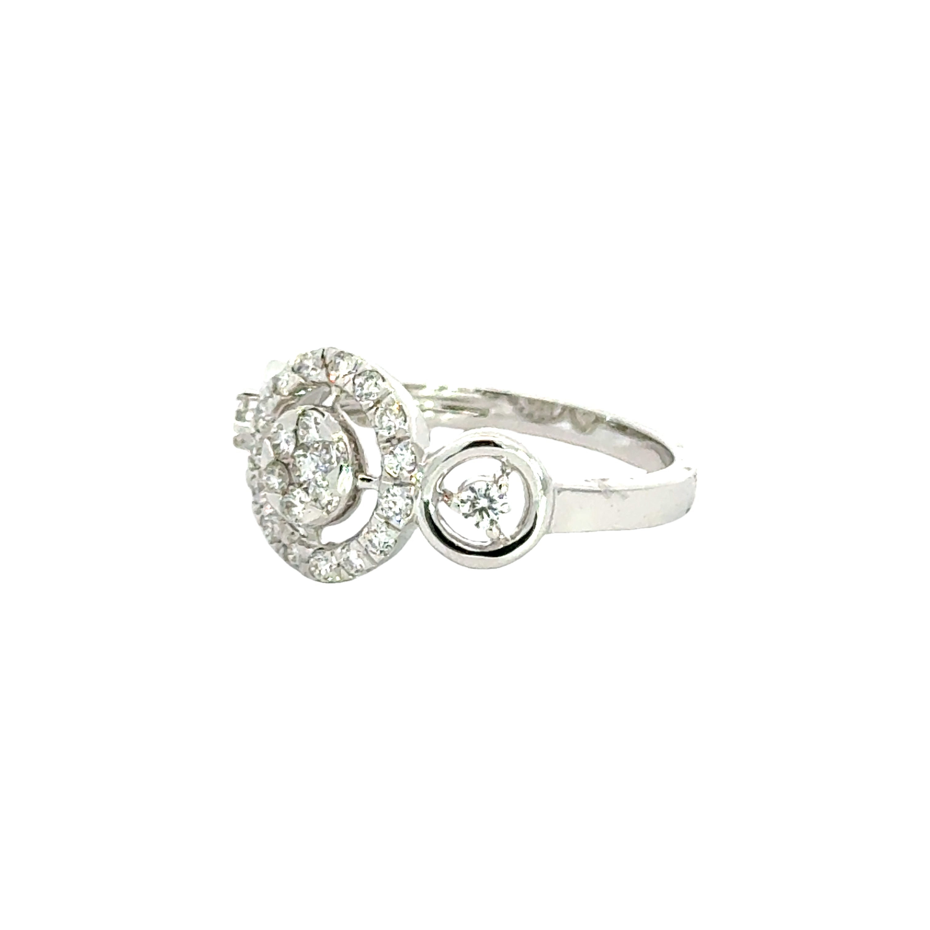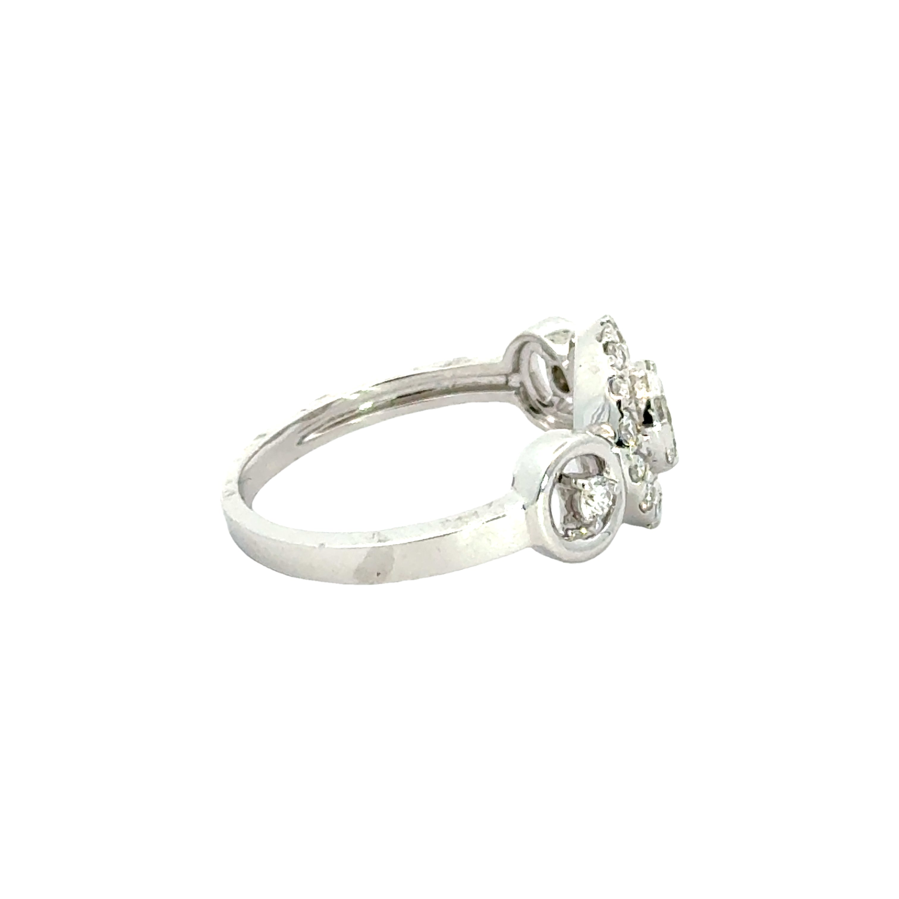 18k White Gold and Diamond Fancy Ring in size 5 measuring 20mm length x 15mm width. Total gold weight is approximately 2.9g.