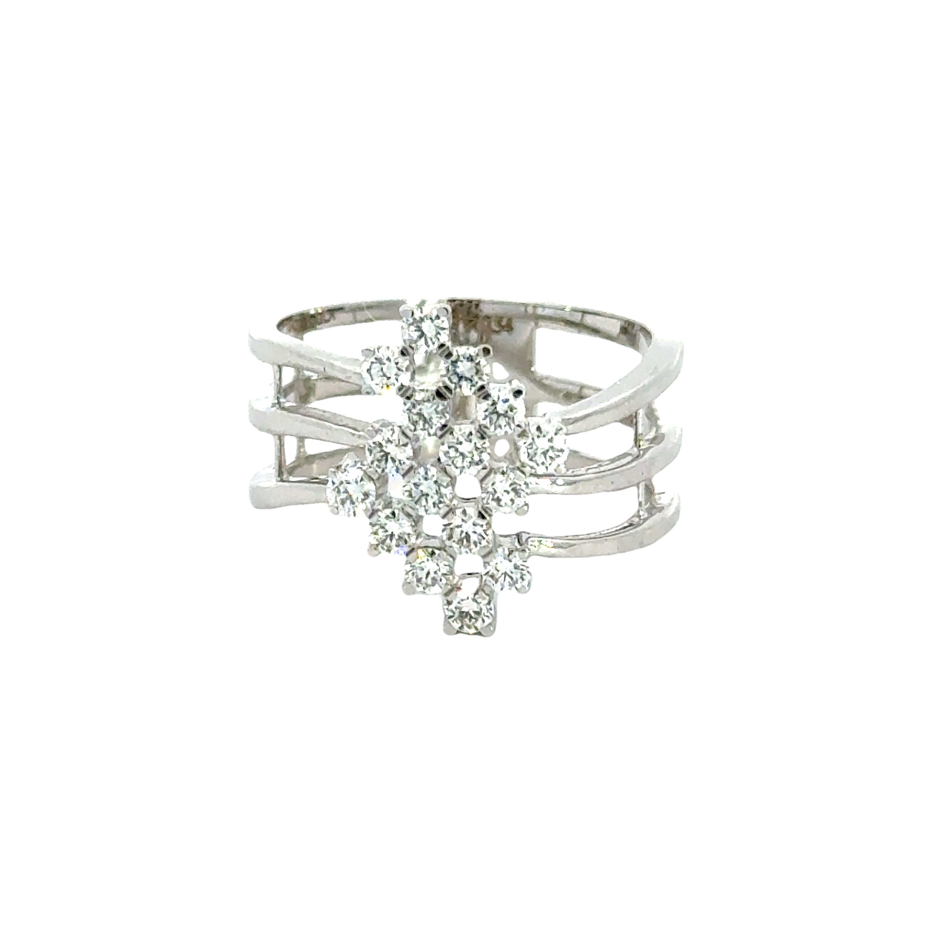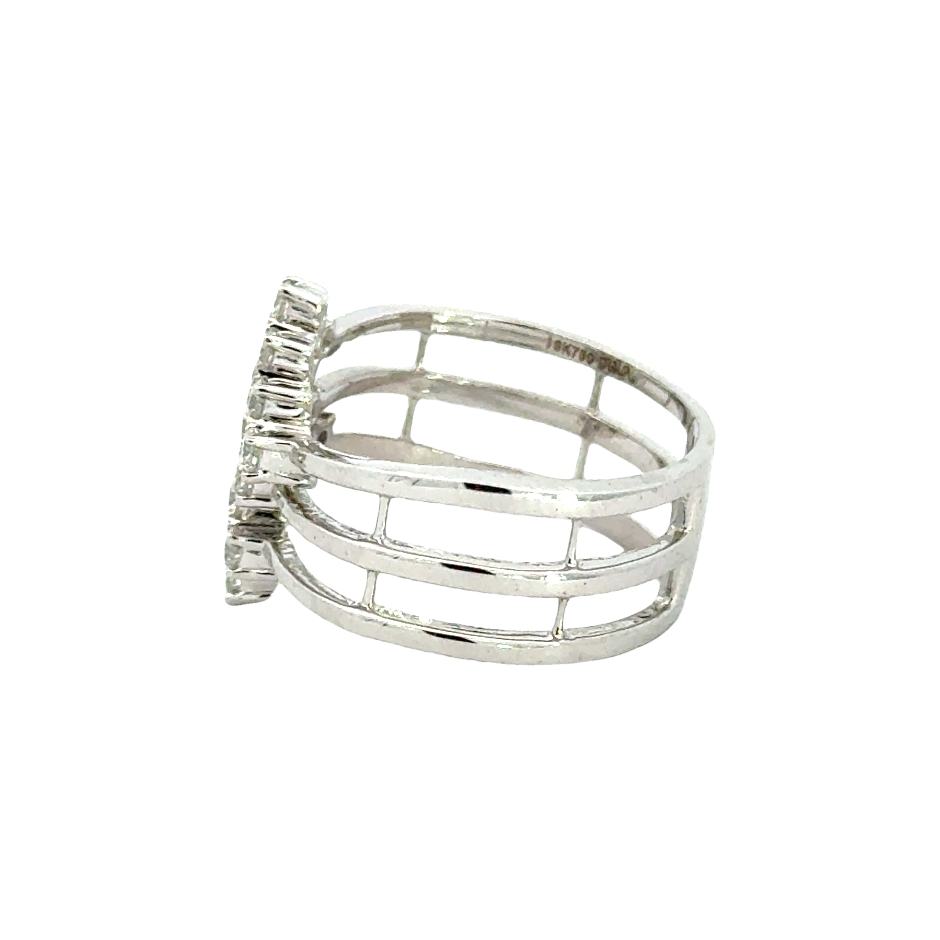 18k White Gold and Diamond Fancy Ring in size 5 measuring 20mm length x 15mm width. Total gold weight is approximately 4.75g.