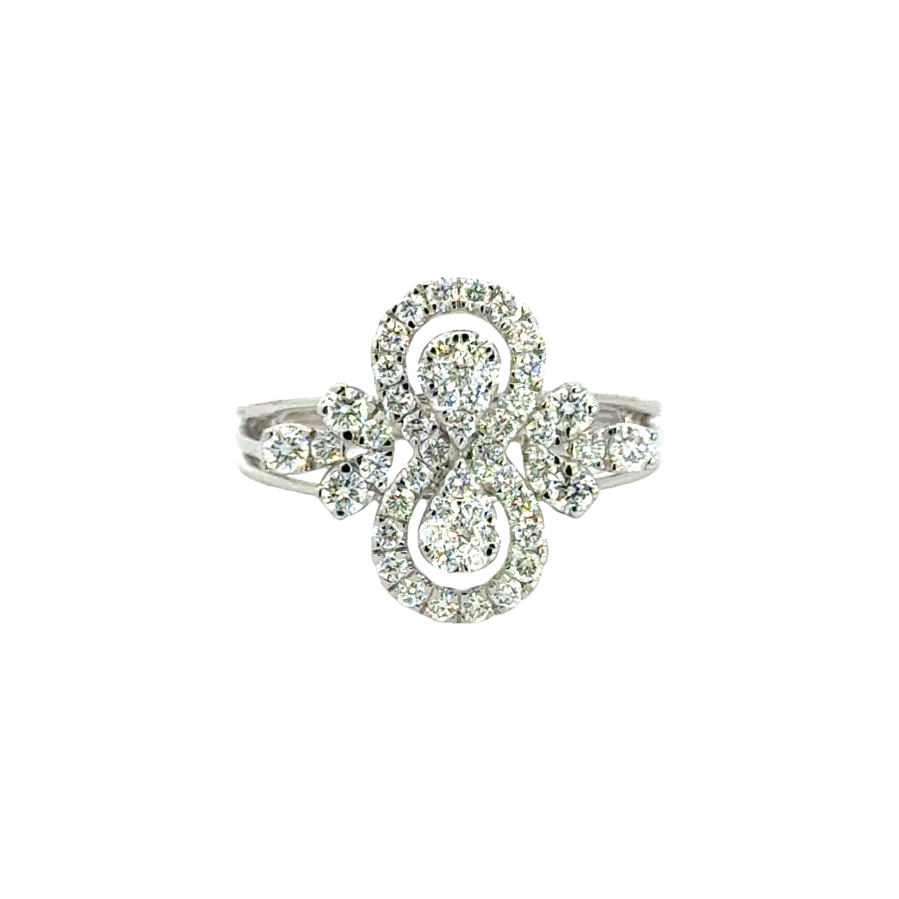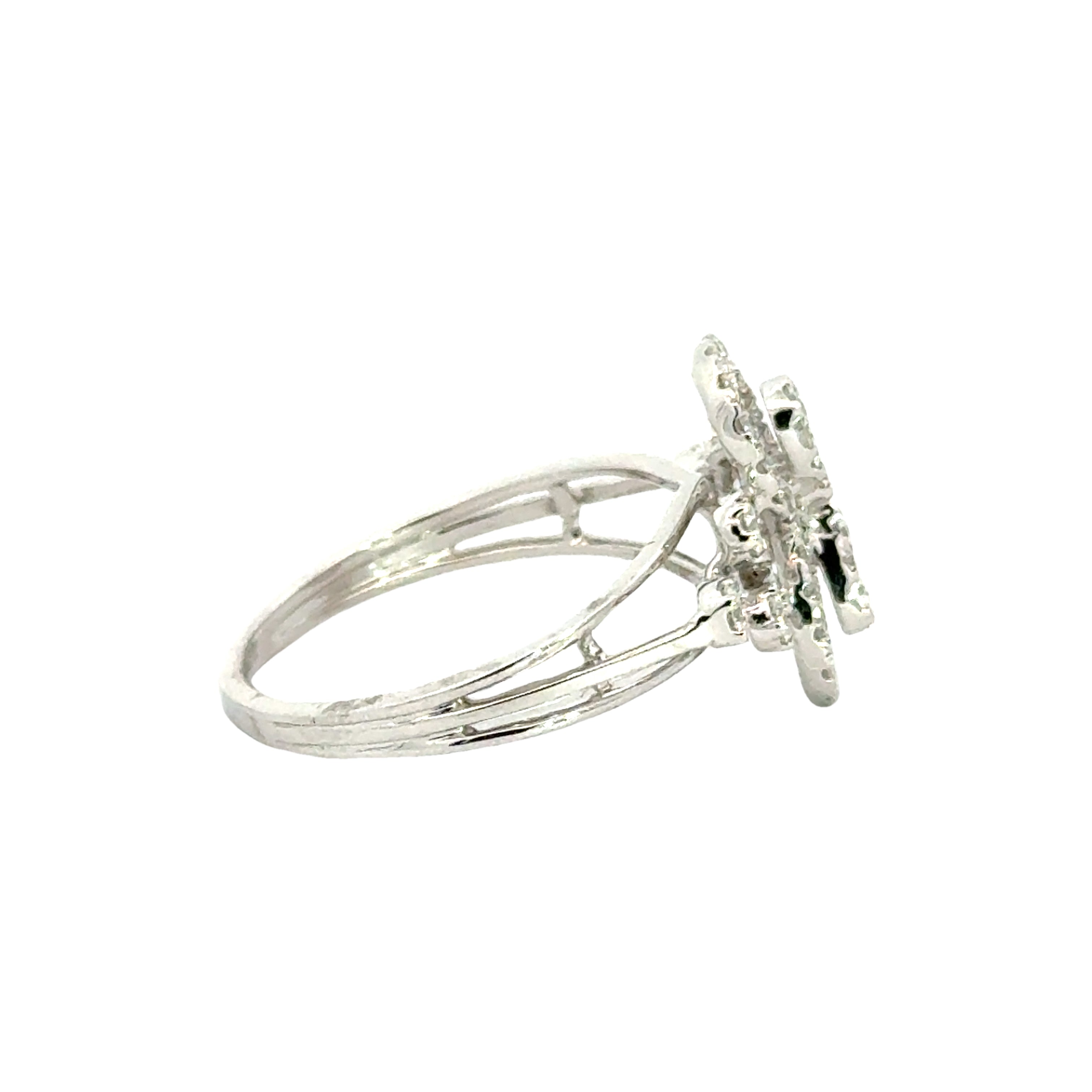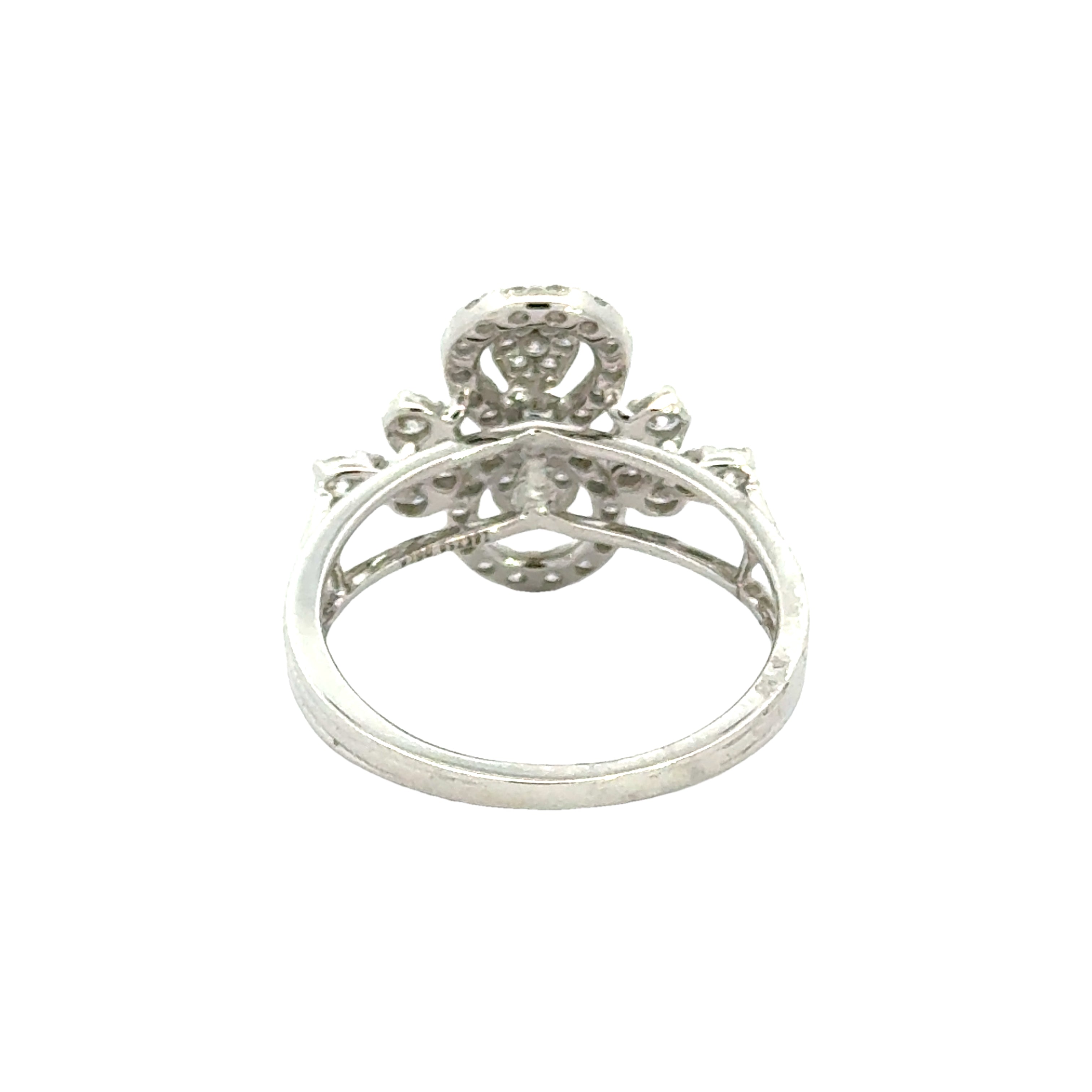 18k White Gold and Diamond Fancy Ring in size 6 measuring 25mm length x 17mm width. Total gold weight is approximately 3.12g.