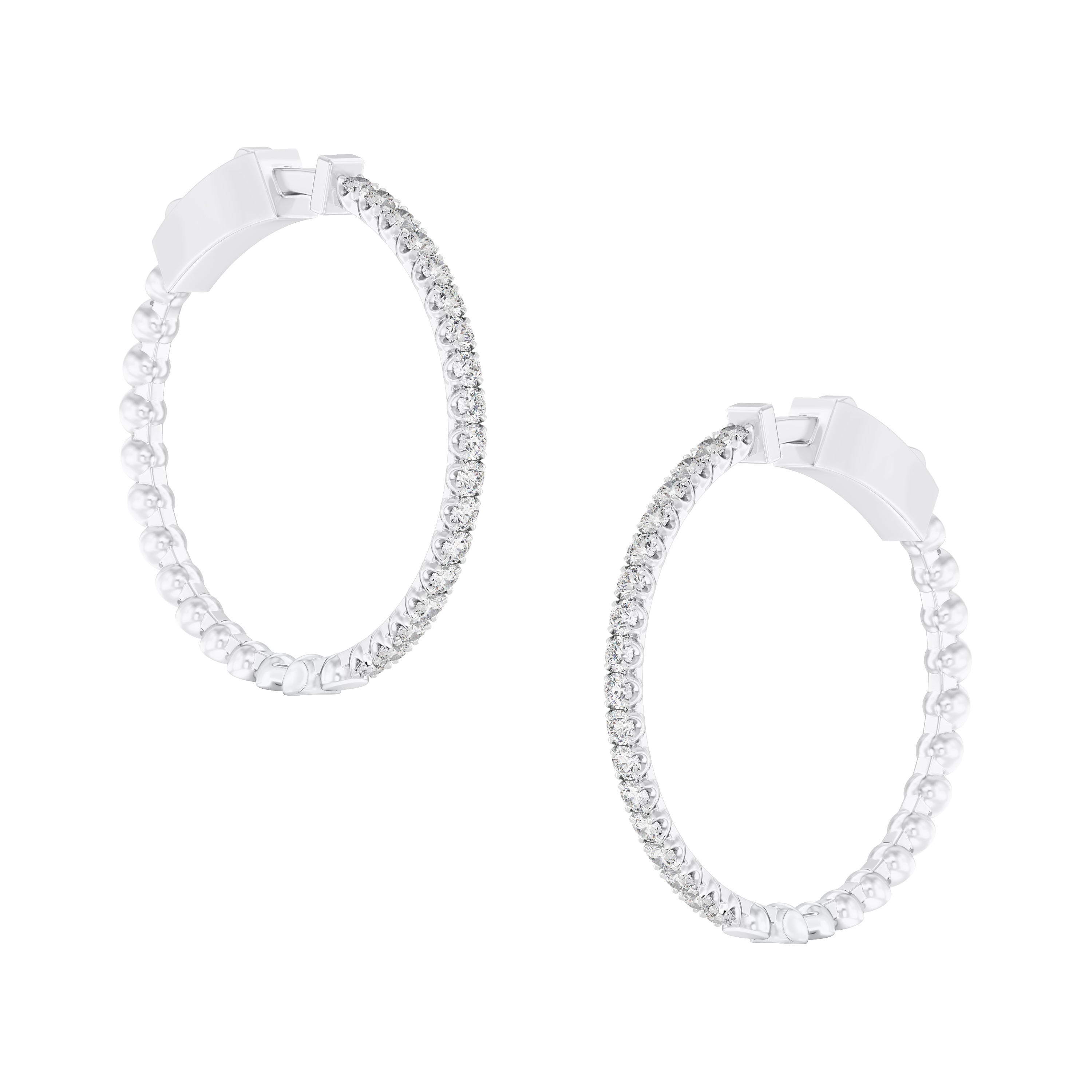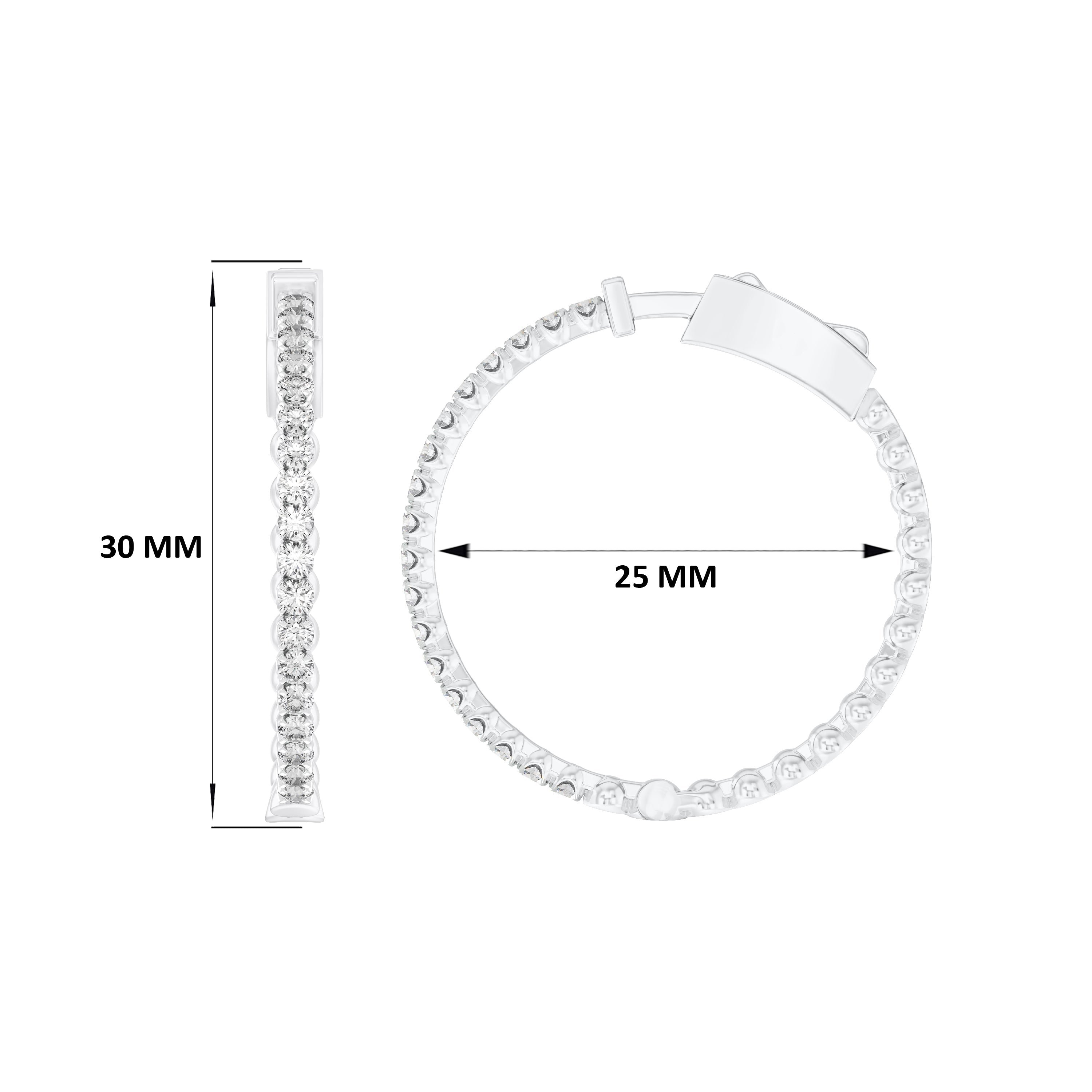18k White Gold and Diamond Hoops measuring 25mm thickness x 30mm width. Total gold weight is approximately 7.183g.