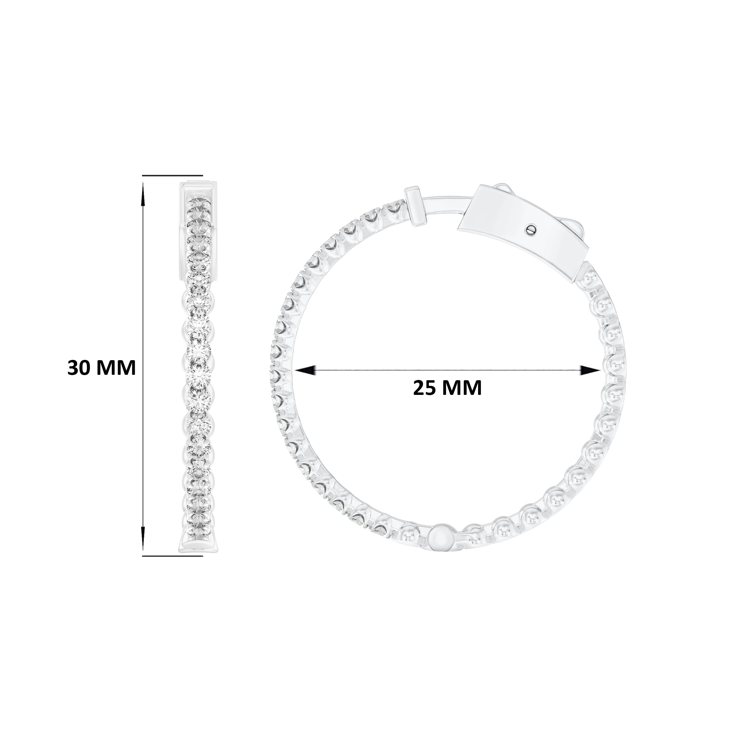 18k White Gold and Diamond Hoops measuring 30mm thickness x 25mm width. Total gold weight is approximately 7.21g.