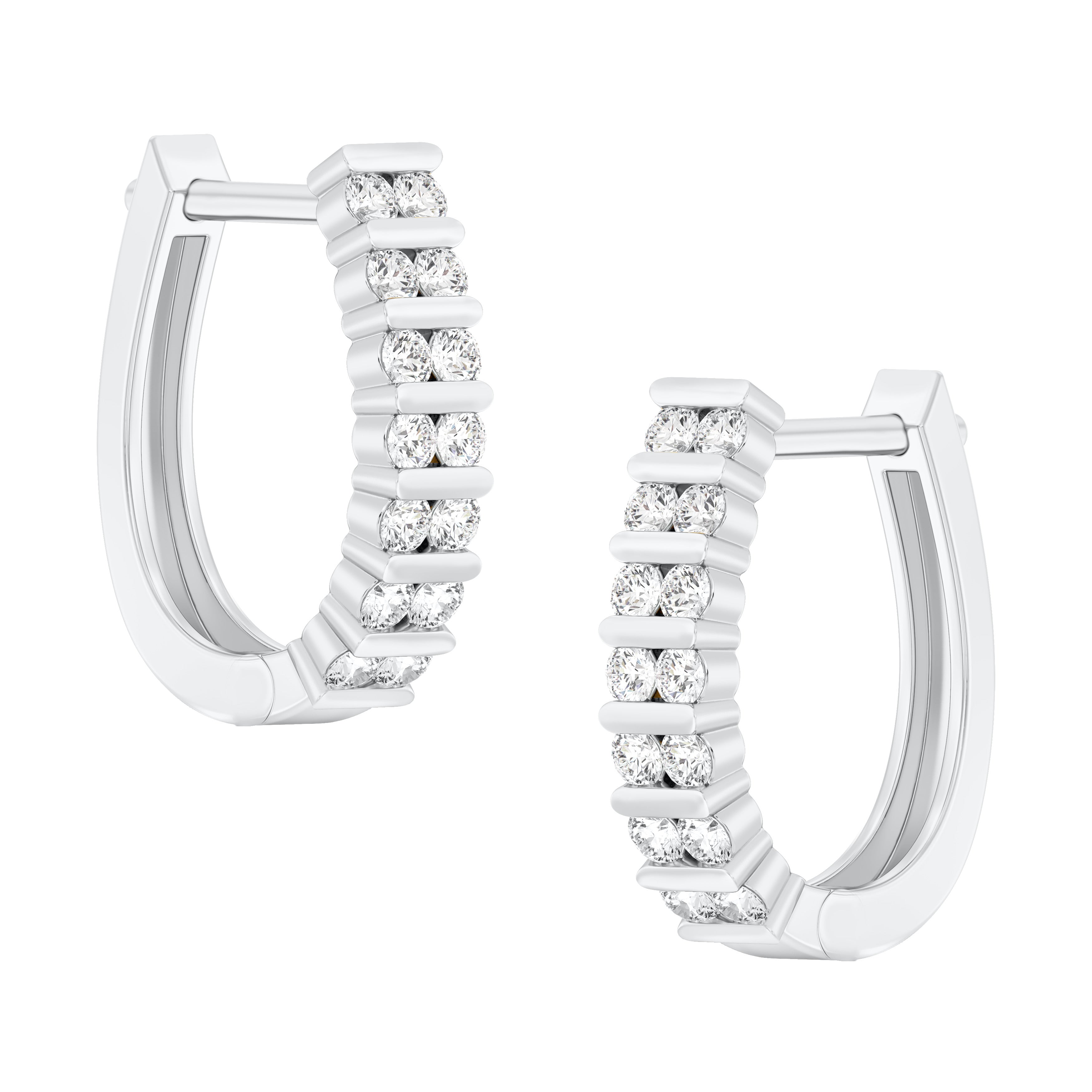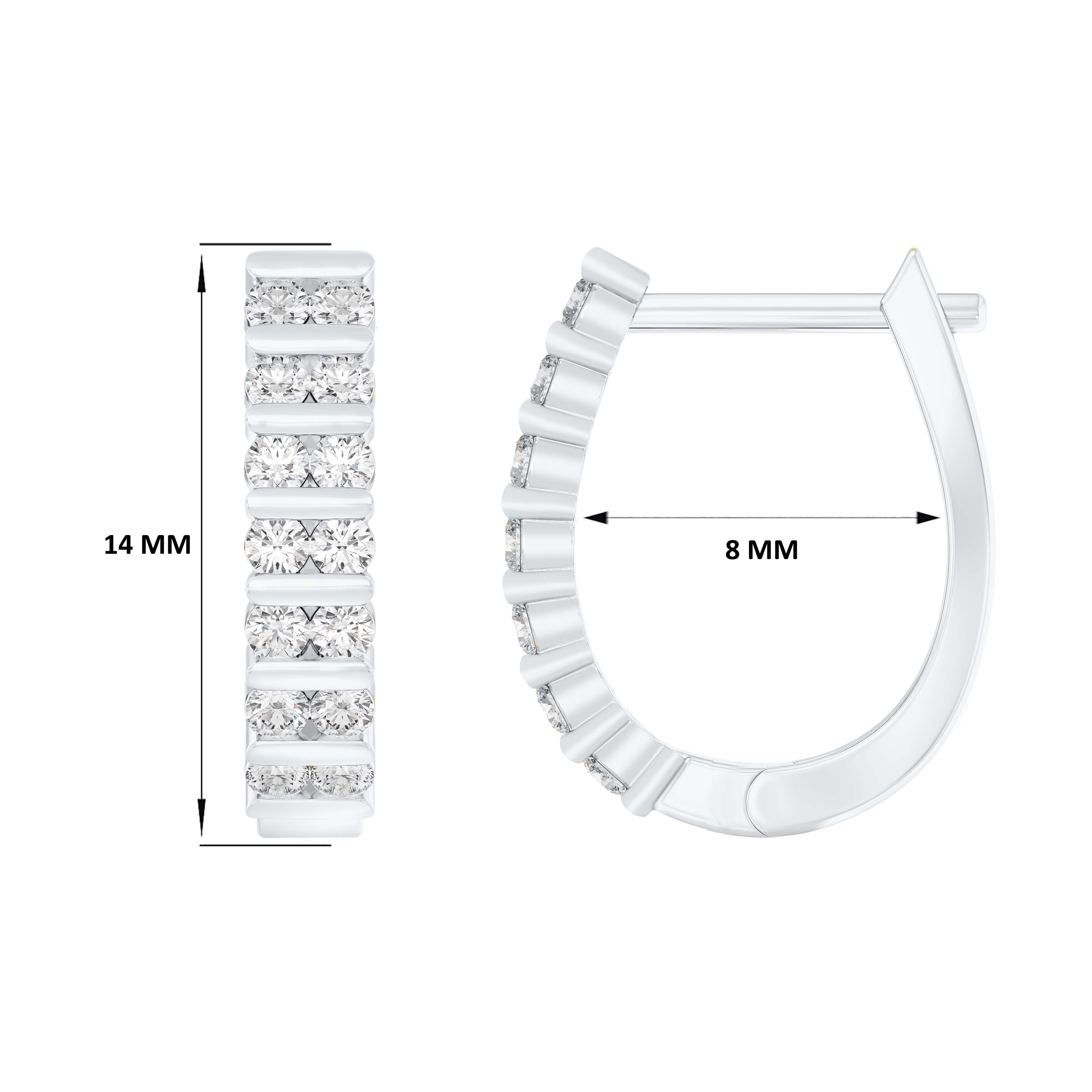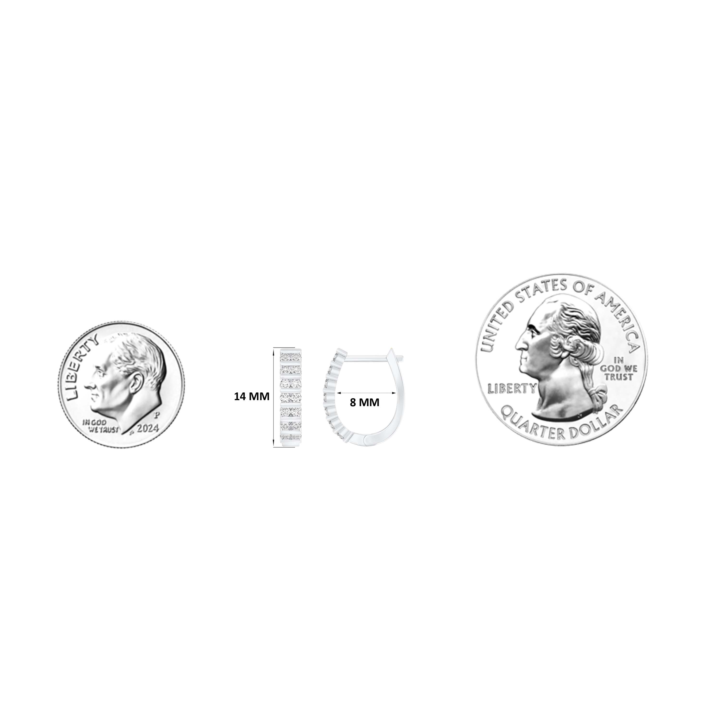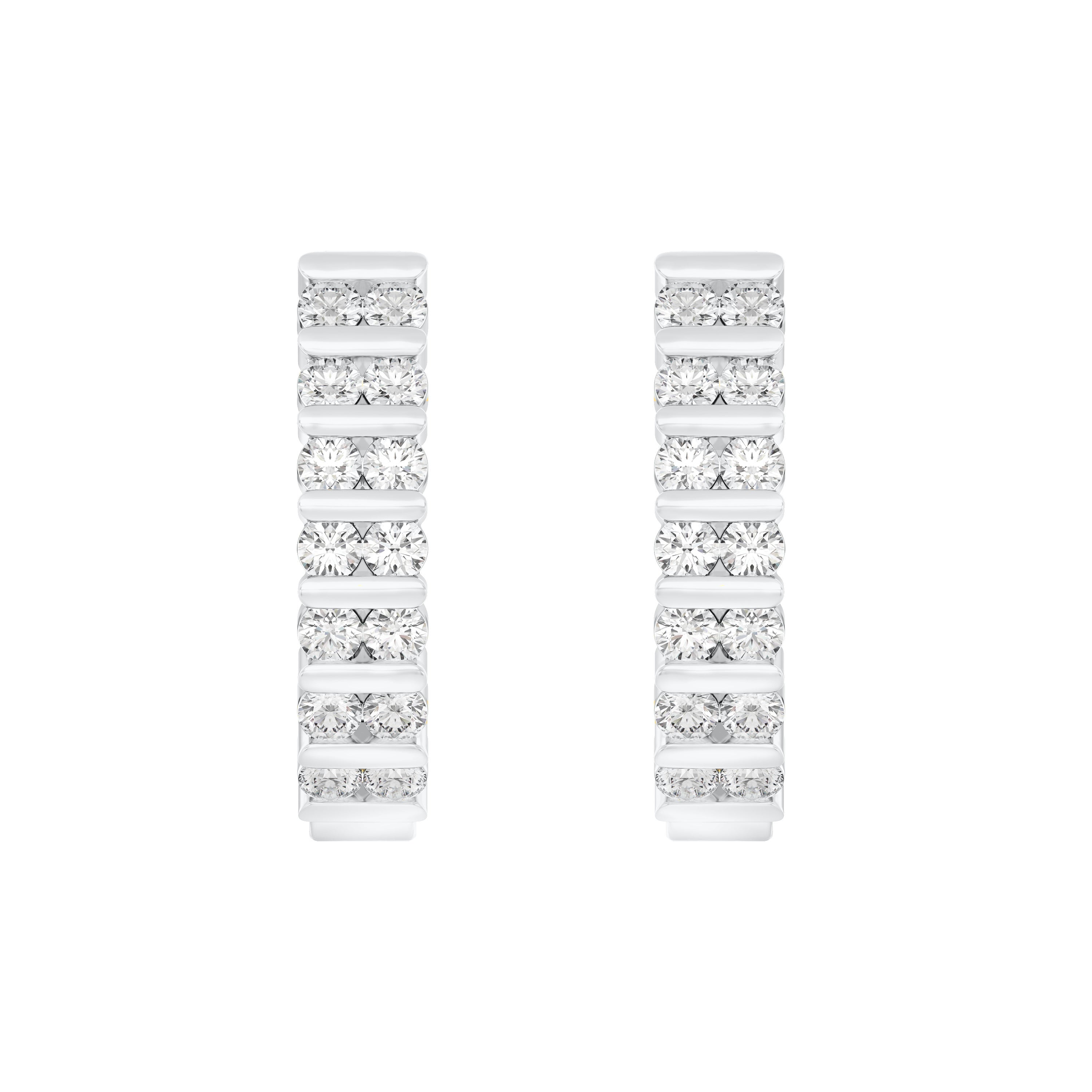 18k White Gold and Diamond Huggies measuring 8mm thickness x 14mm width. Total gold weight is approximately 3.31g.