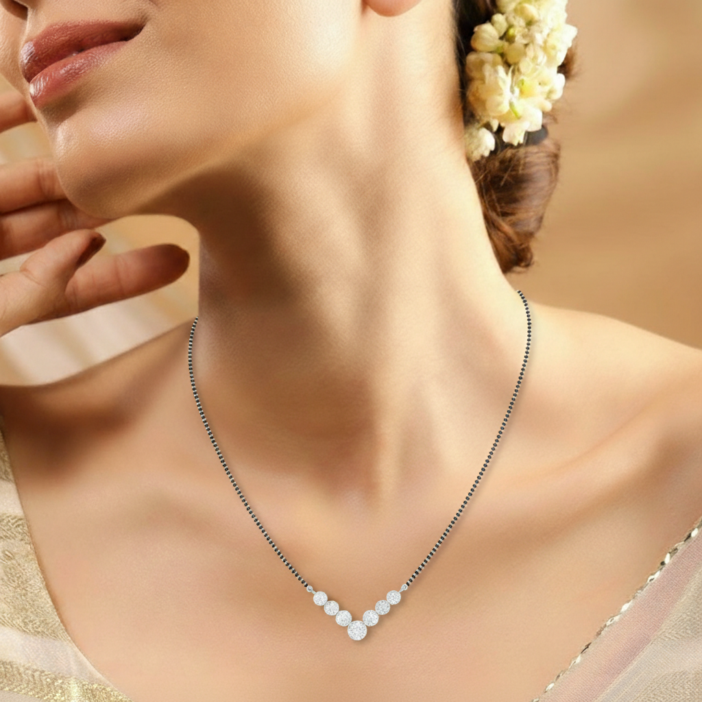 18k White Gold and Diamond Mangalsutra Necklace measuring 18mm thickness x 2mm width. Total gold weight is approximately 6.36g.