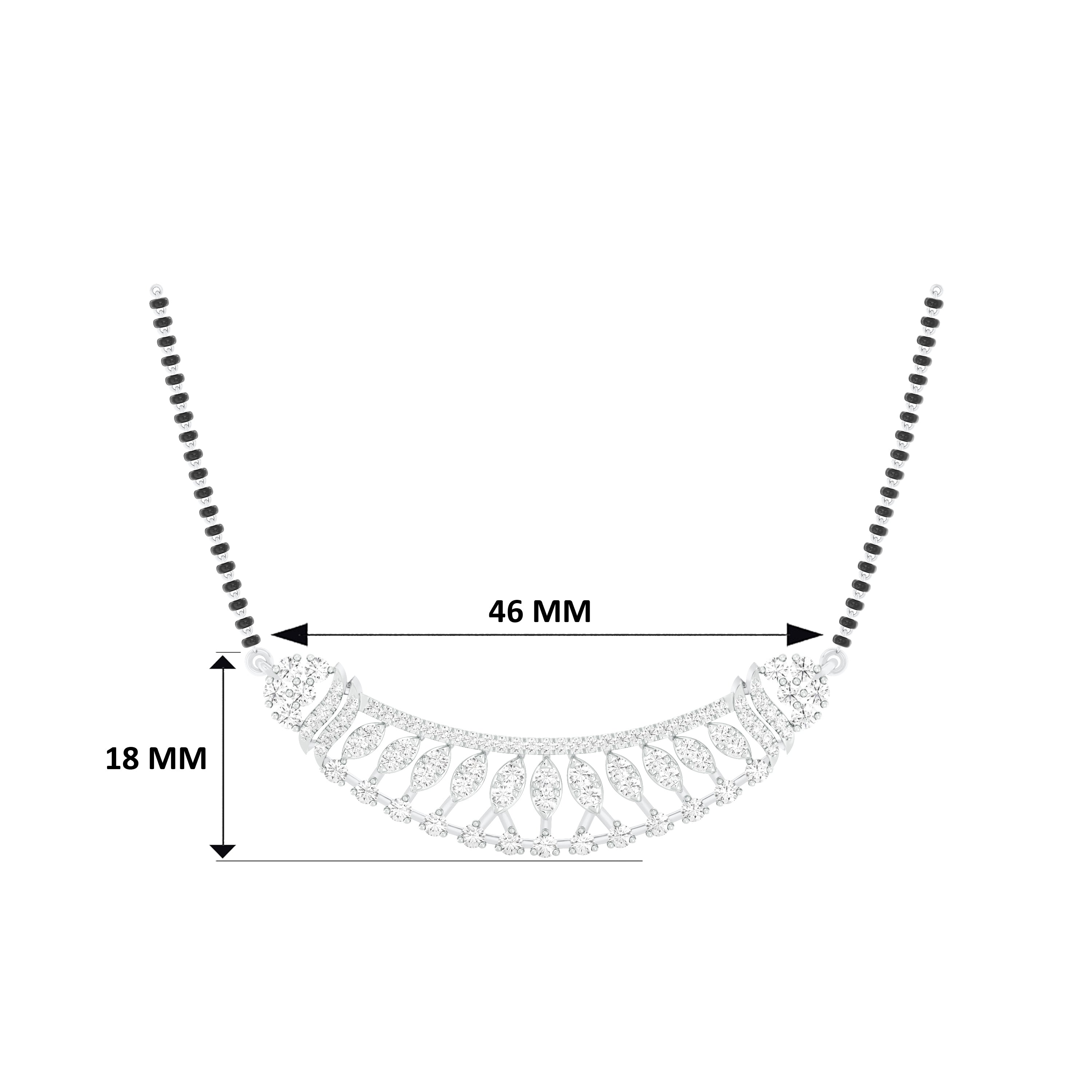 18k White Gold and Diamond Mangalsutra Necklace measuring 18mm thickness x 2mm width. Total gold weight is approximately 8.43g.