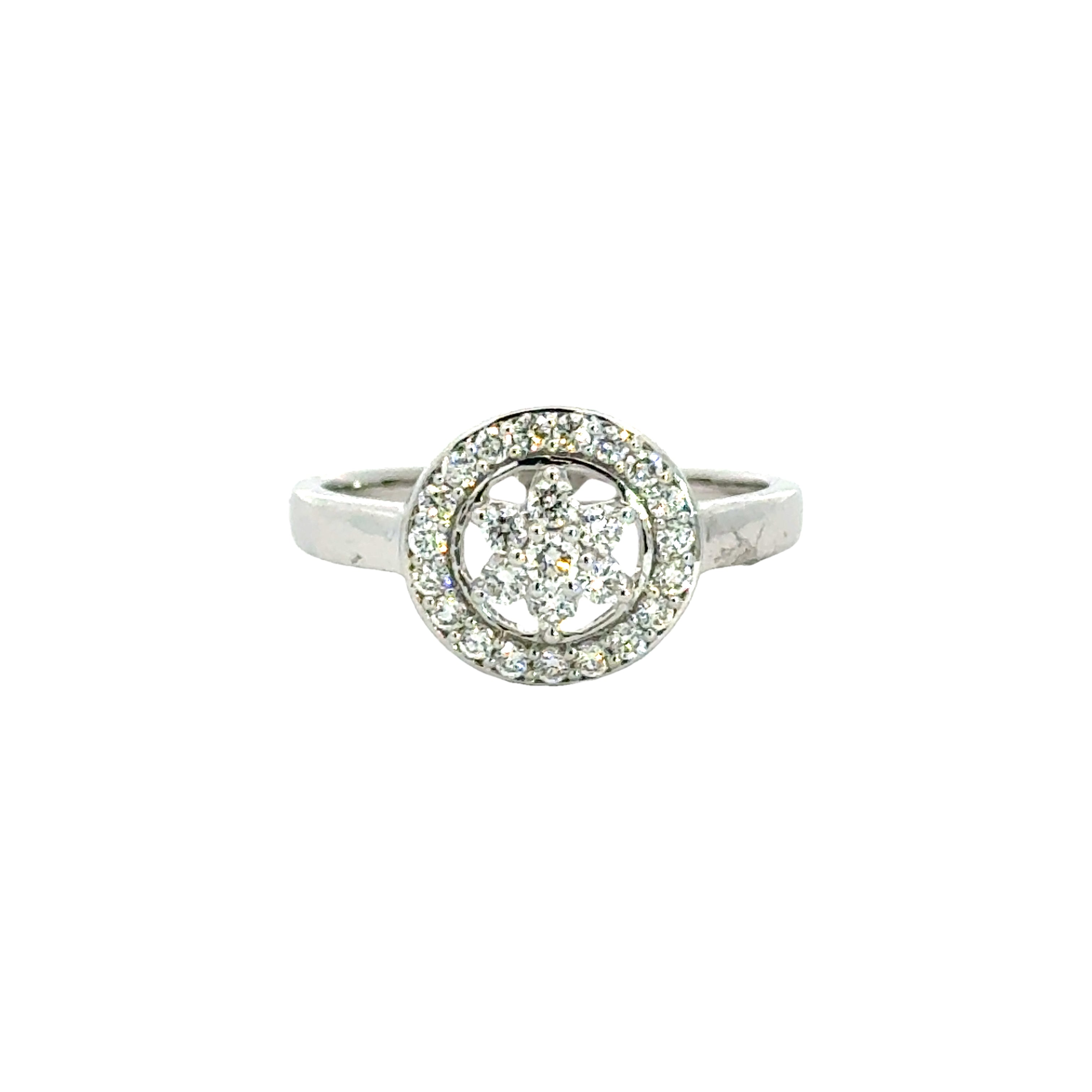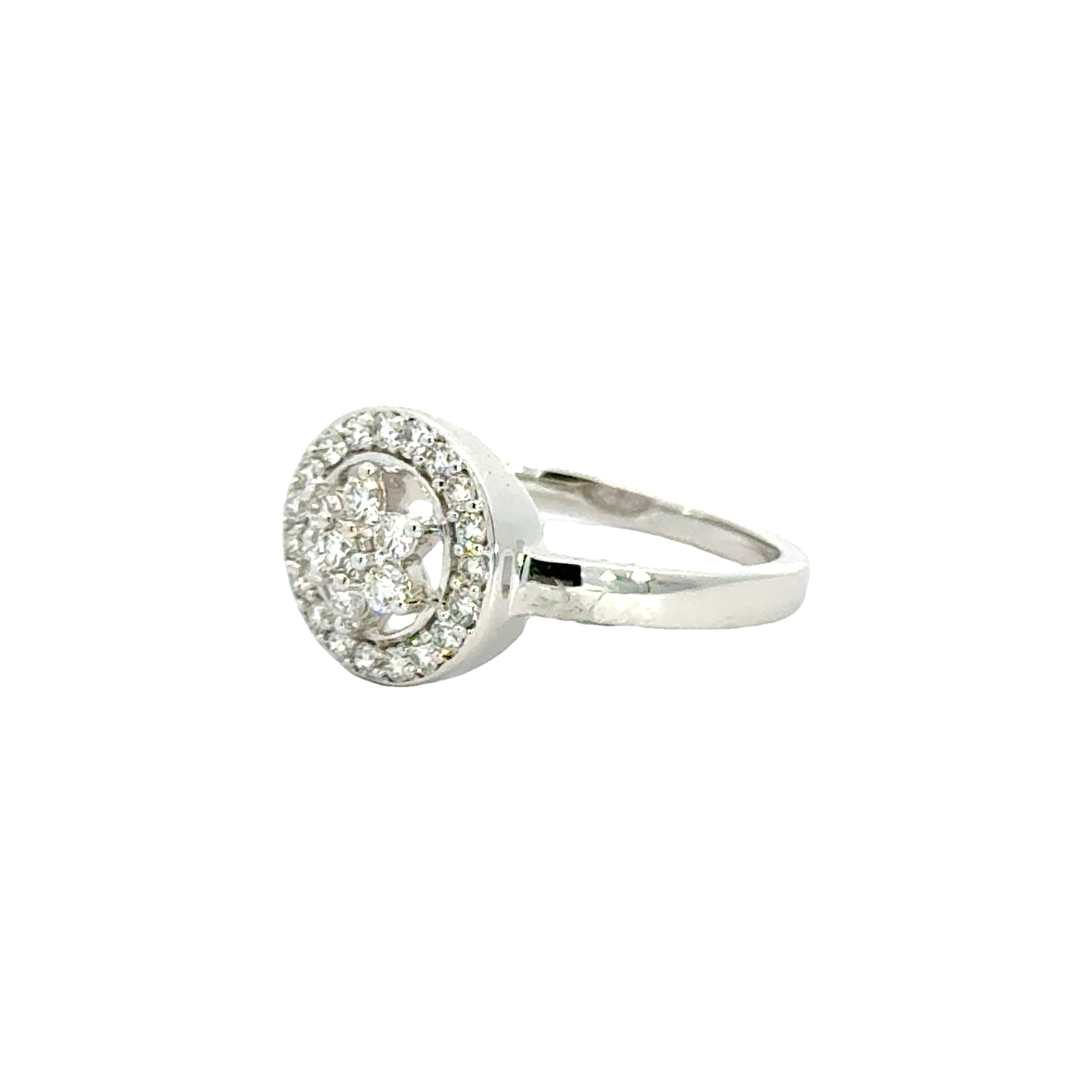 18k White Gold and Diamond Star Fancy Ring in size 5.5 measuring 23mm length x 16mm width. Total gold weight is approximately 3.25g.
