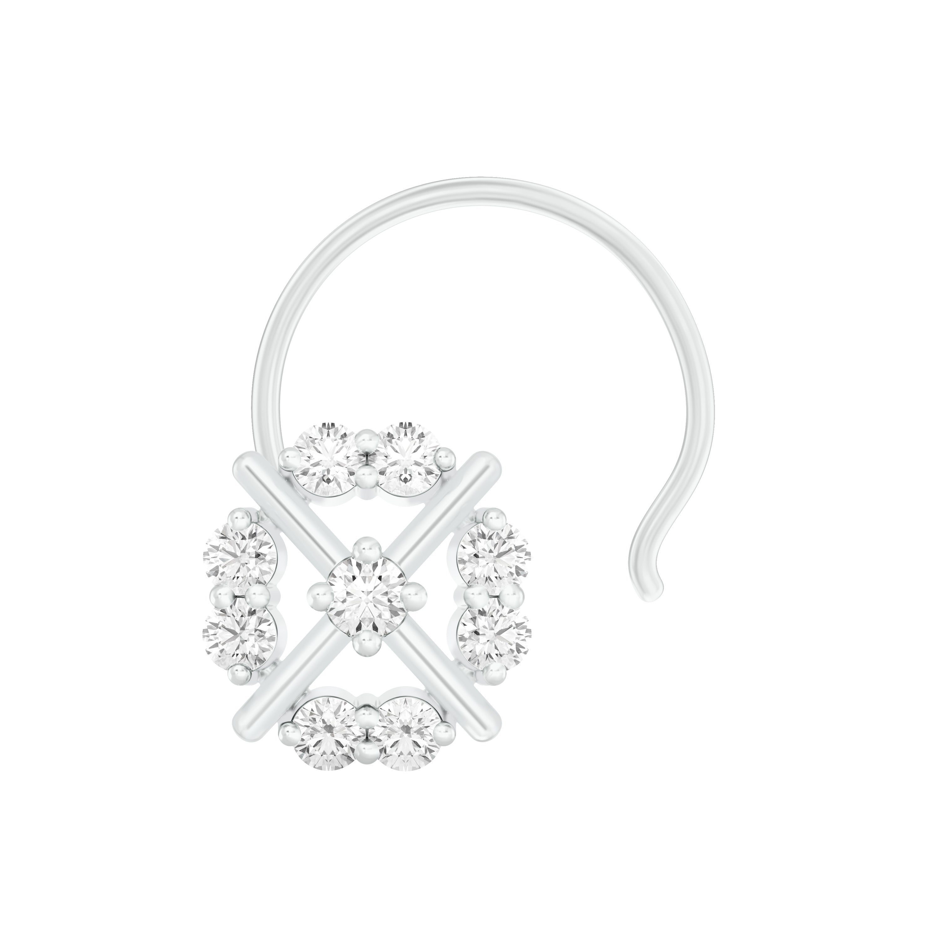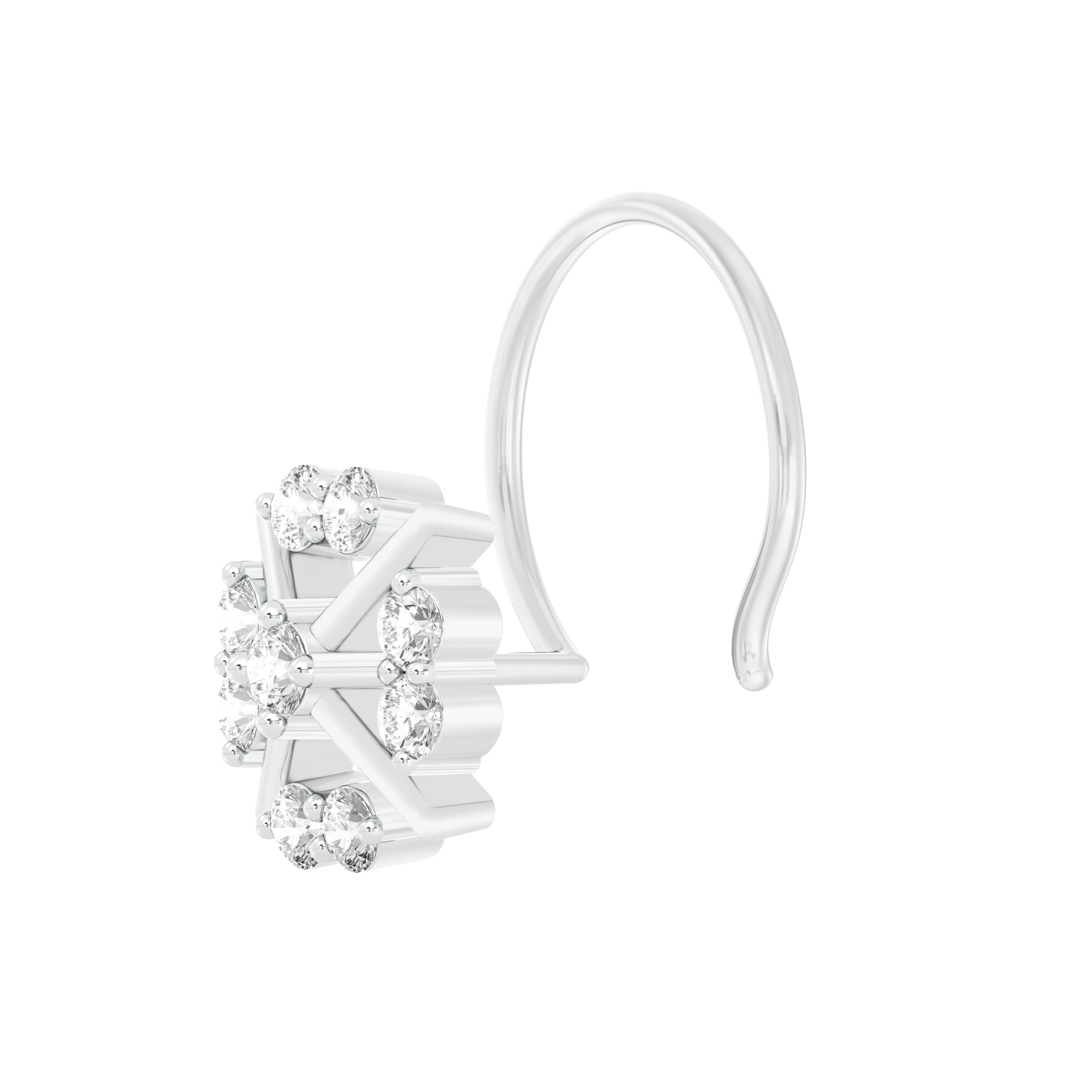18k White Gold Round Brilliant Cut Captivating Diamond Nose Pin with Wire measuring 5mm width. For health and safety reasons, nose pins and nose rings CANNOT BE exchanged or returned once purchased.