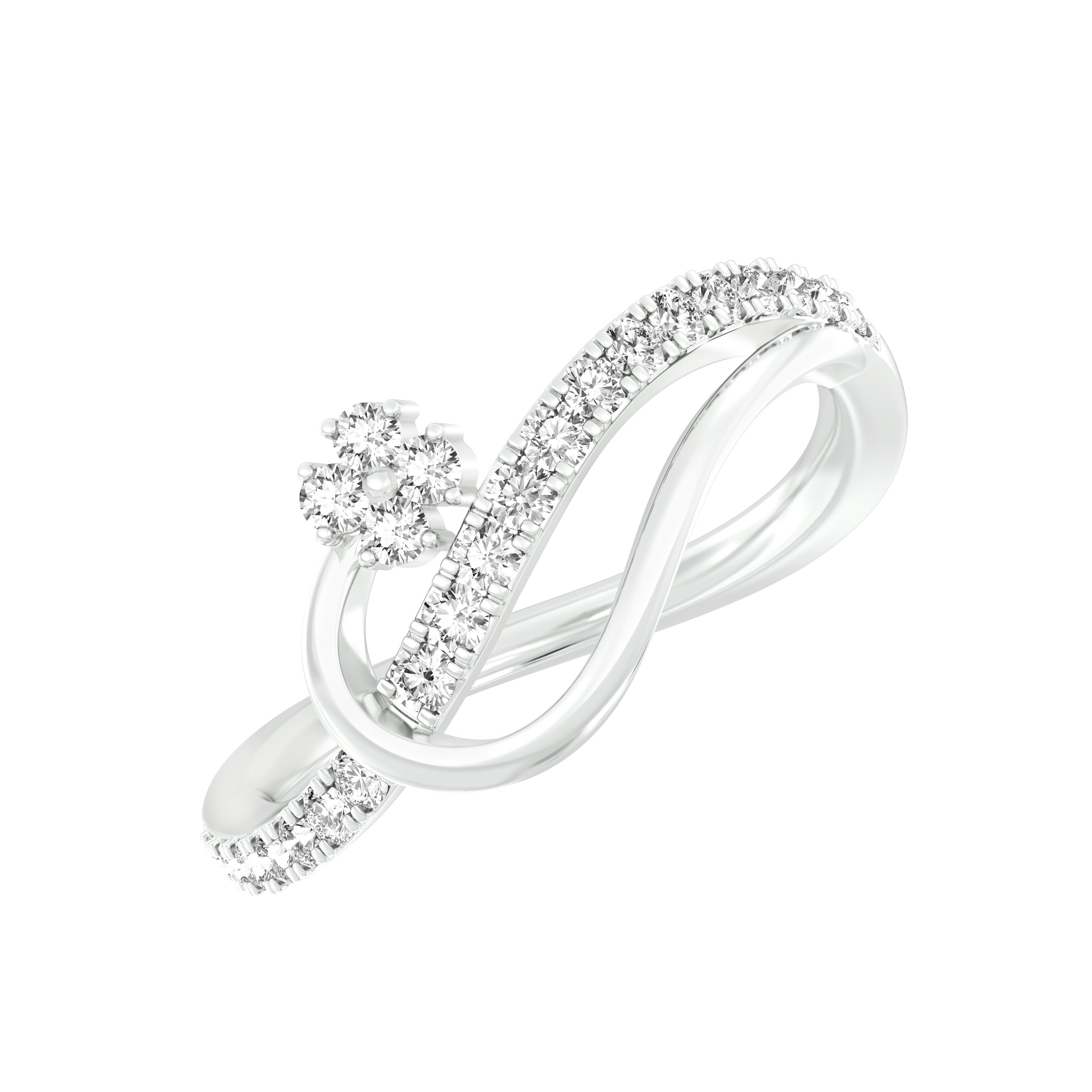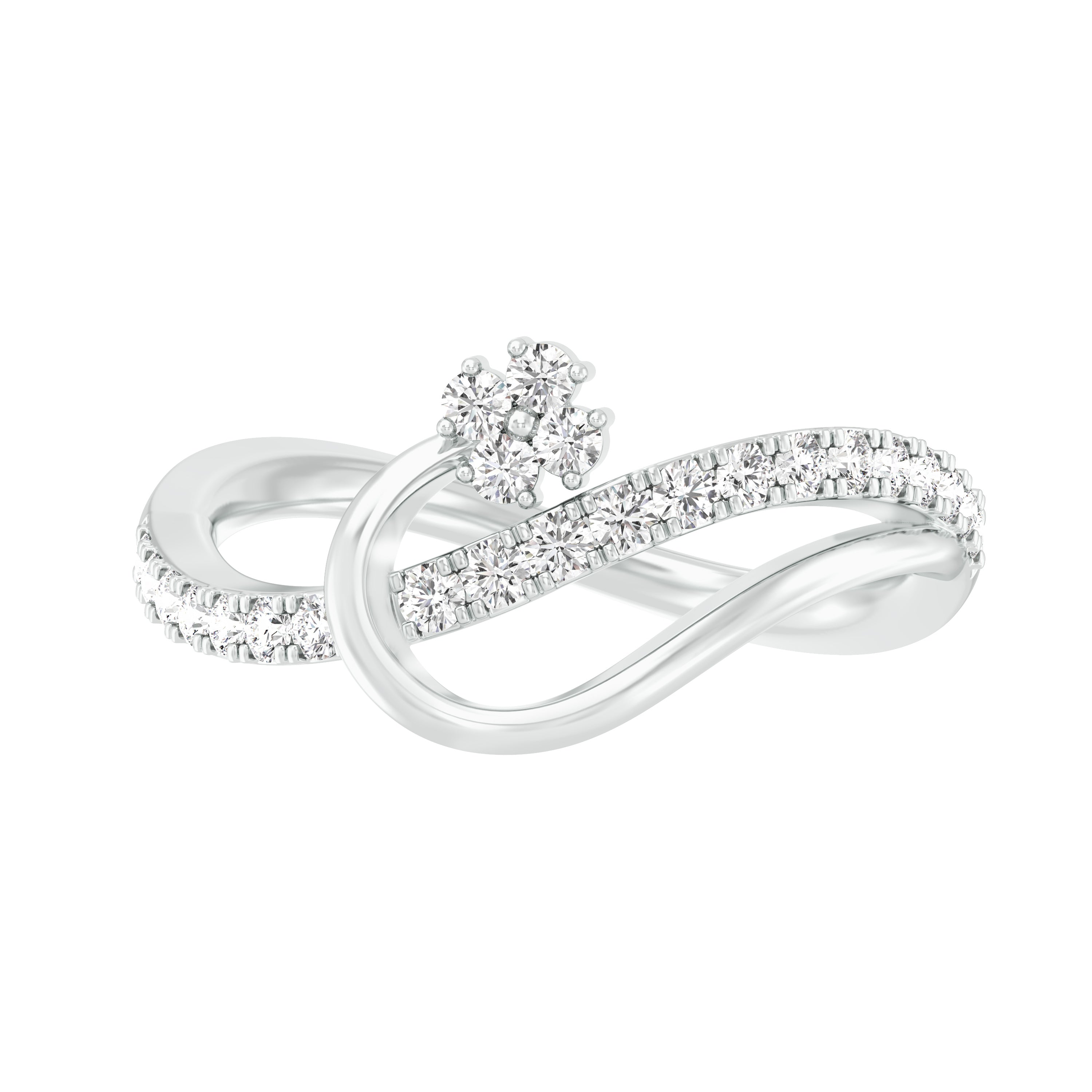 18k White Gold and Diamond Fancy Ring in size 5.5 measuring 20mm length x 16mm width. Total gold weight is approximately 2.27g.