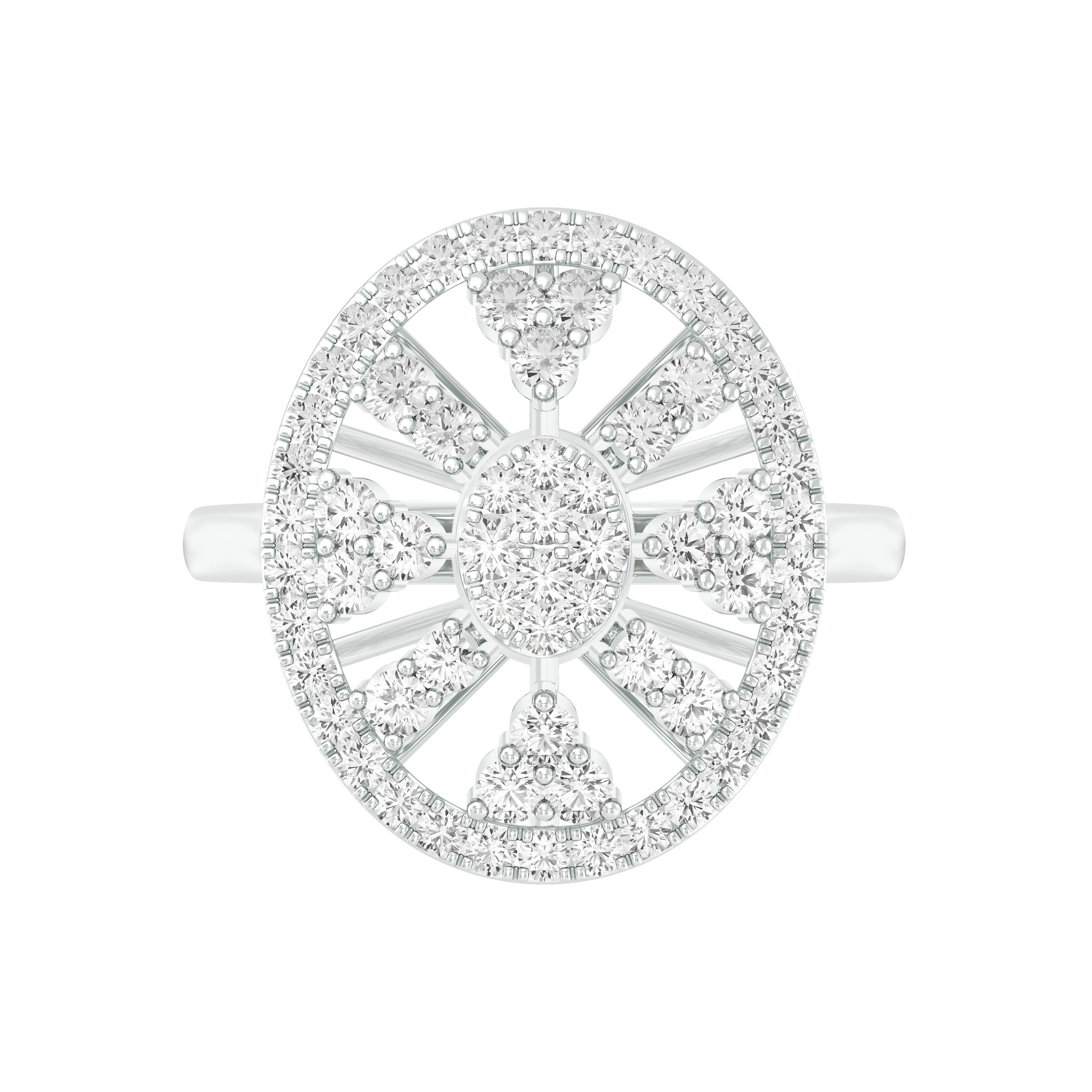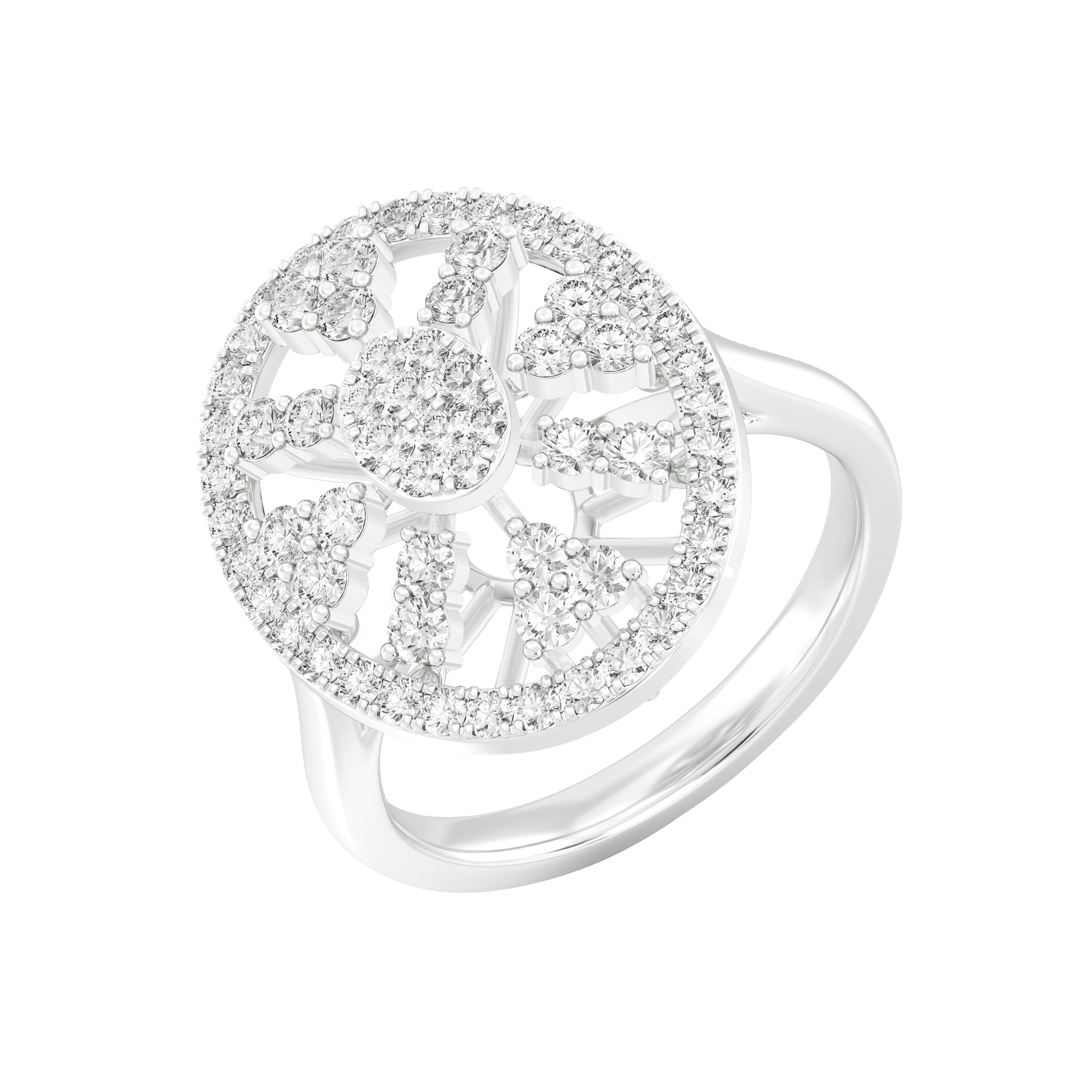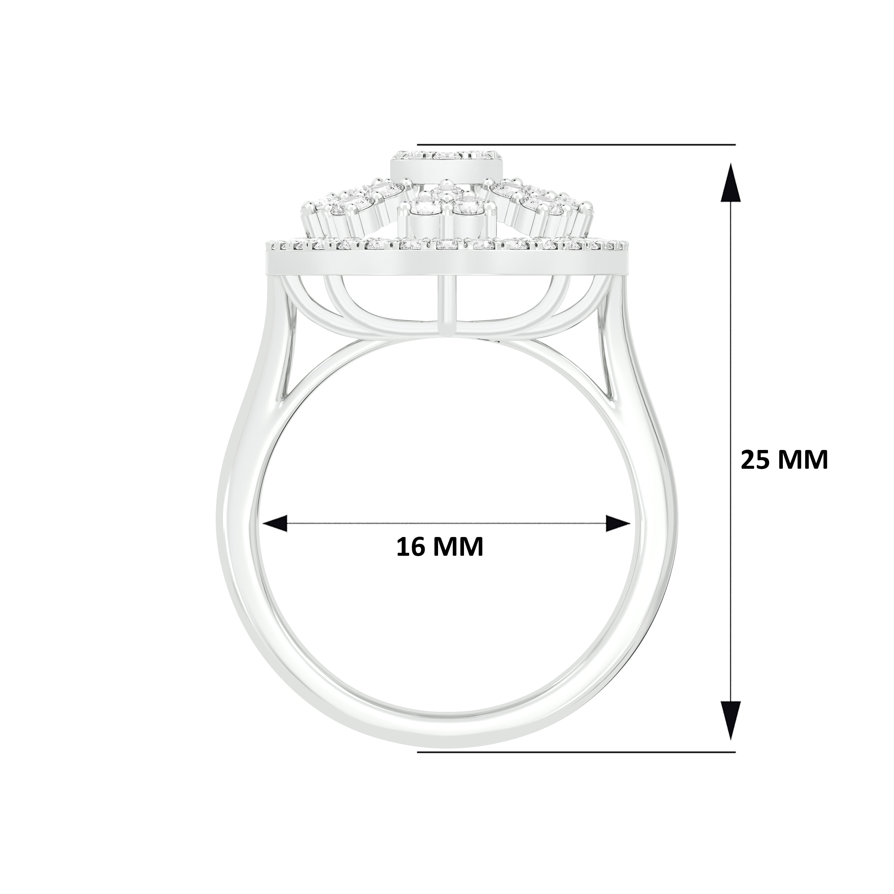 18k White Gold and Diamond Fancy Ring in size 5.5 measuring 25mm length x 16mm width. Total gold weight is approximately 4.591g.