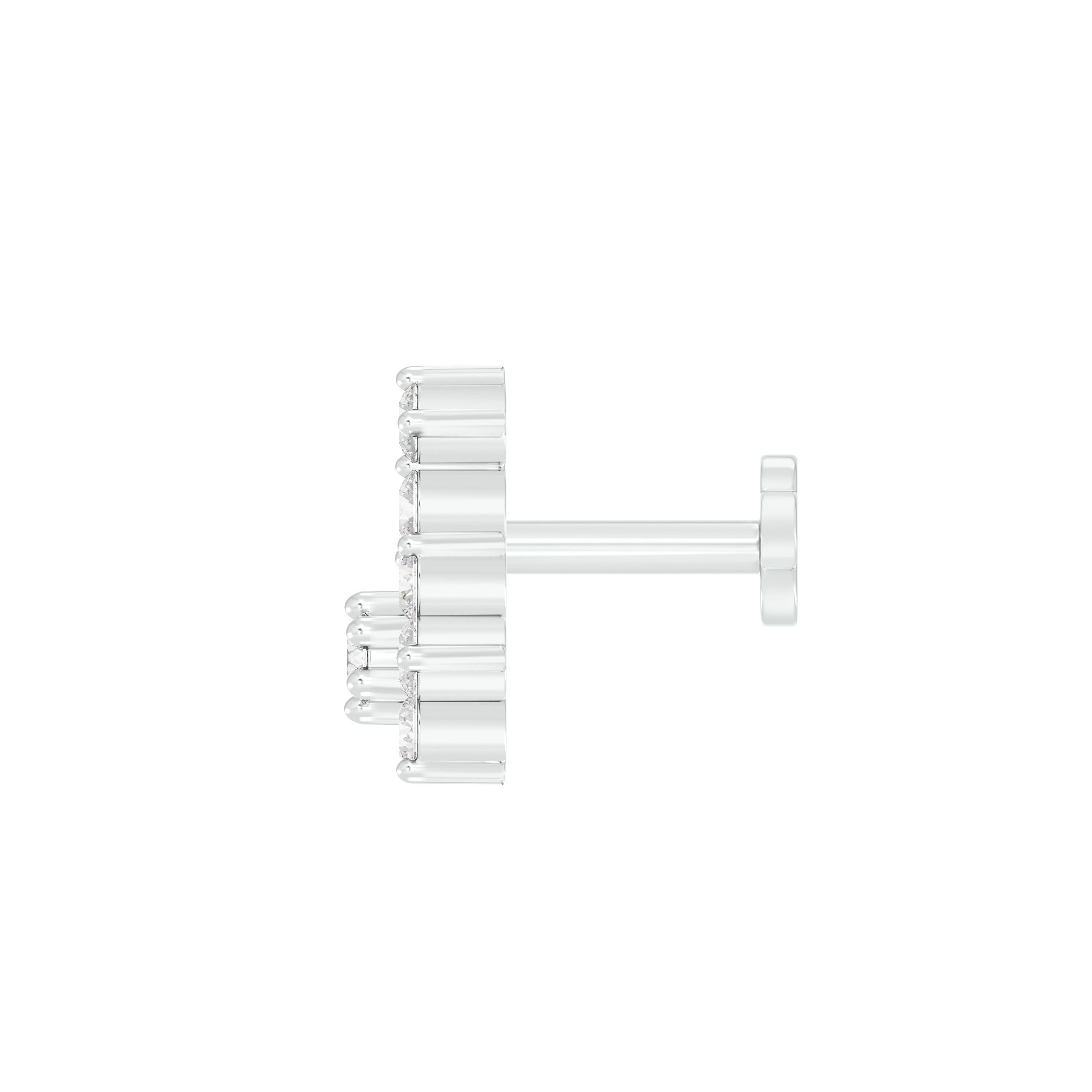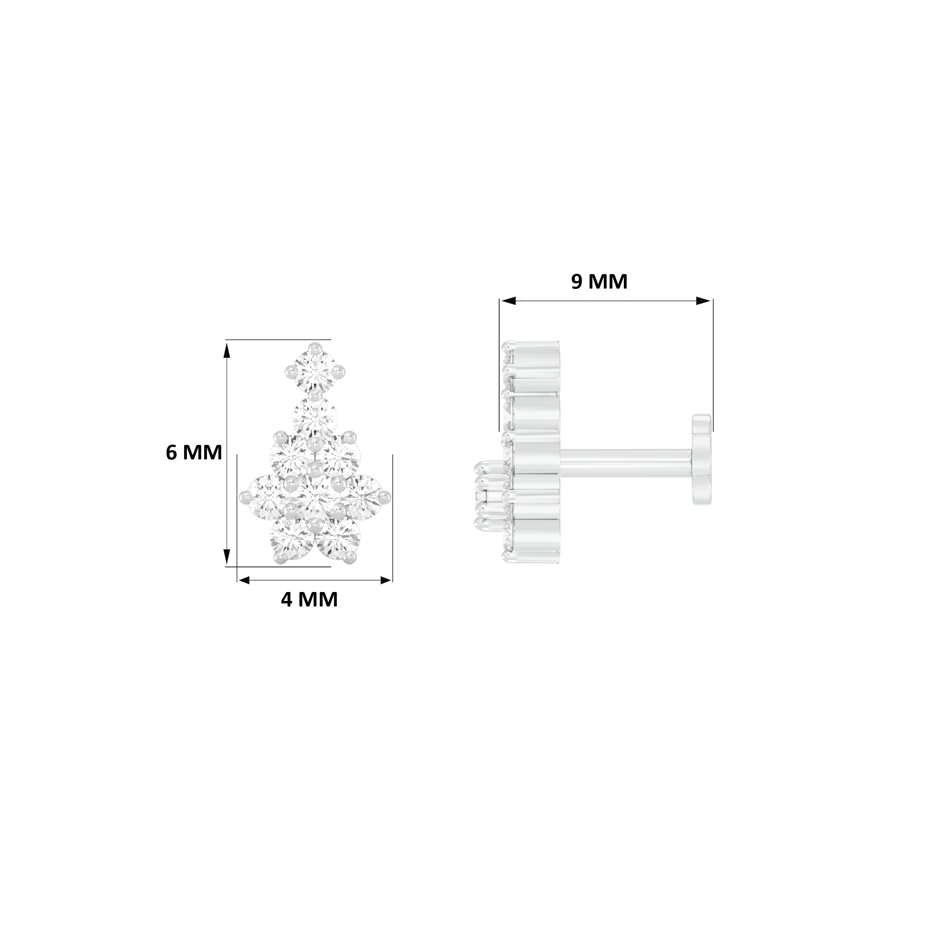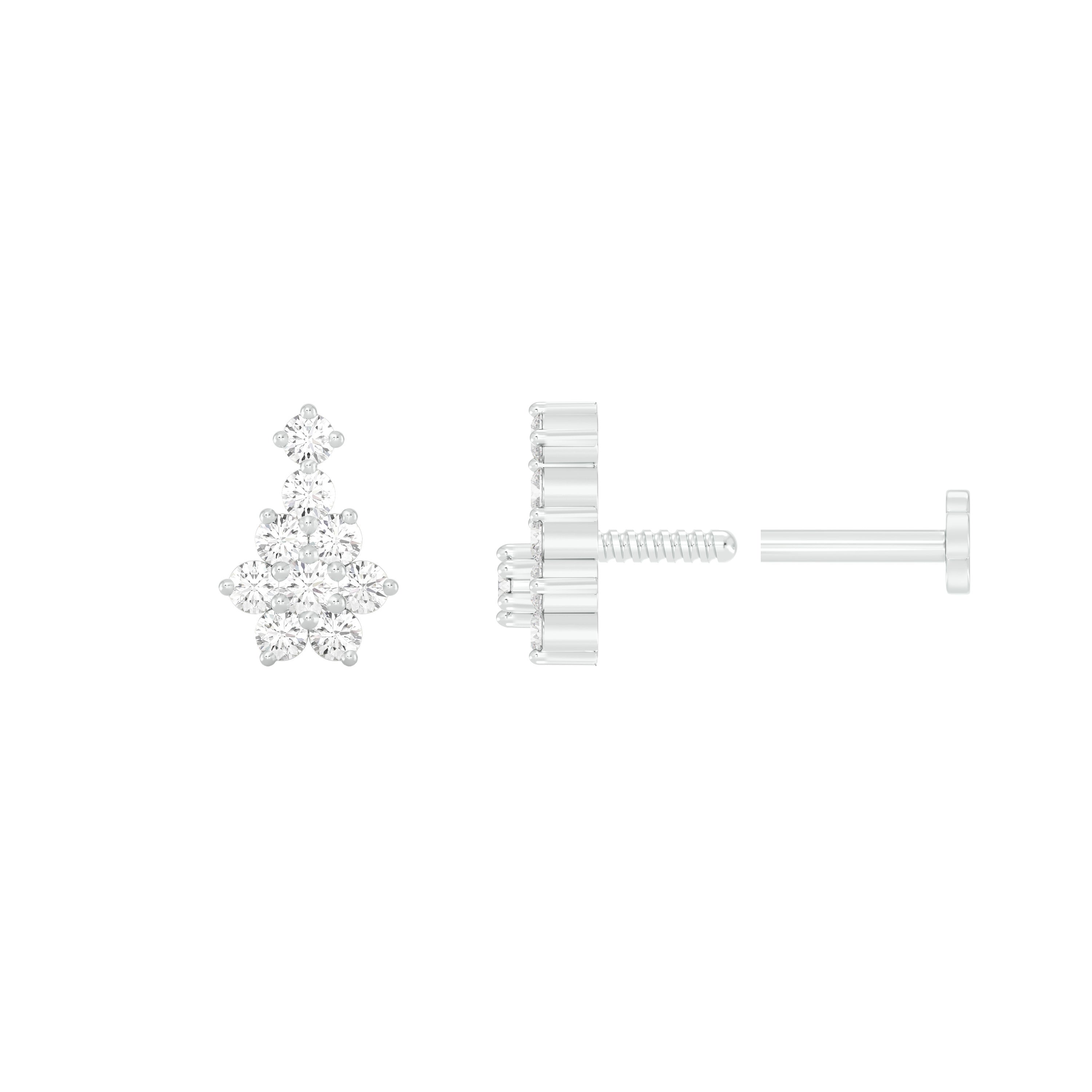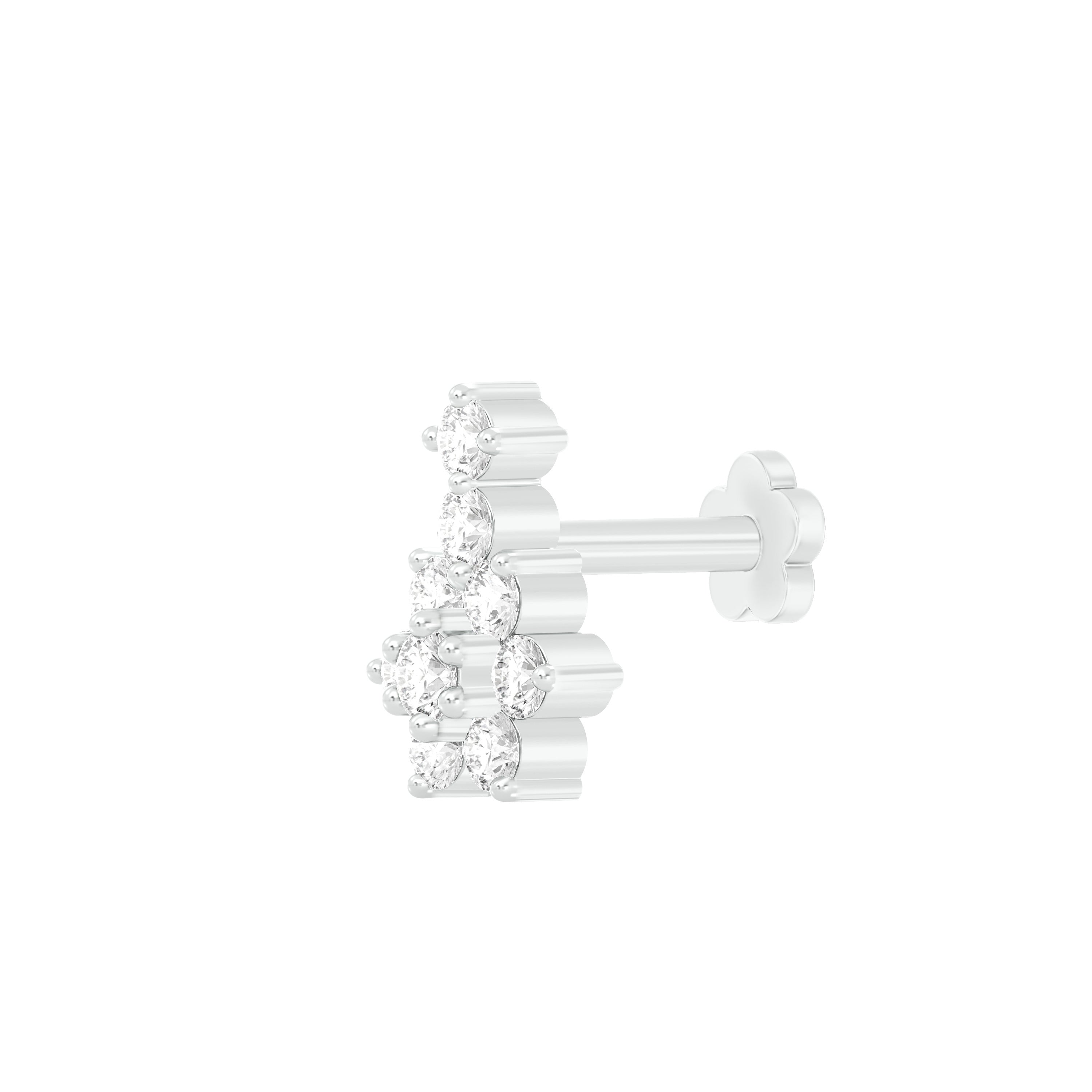 18k White Gold Round Brilliant Cut Elegant Diamond Nose Pin with Screwback measuring 6mm width. For health and safety reasons, nose pins and nose rings CANNOT BE exchanged or returned once purchased.