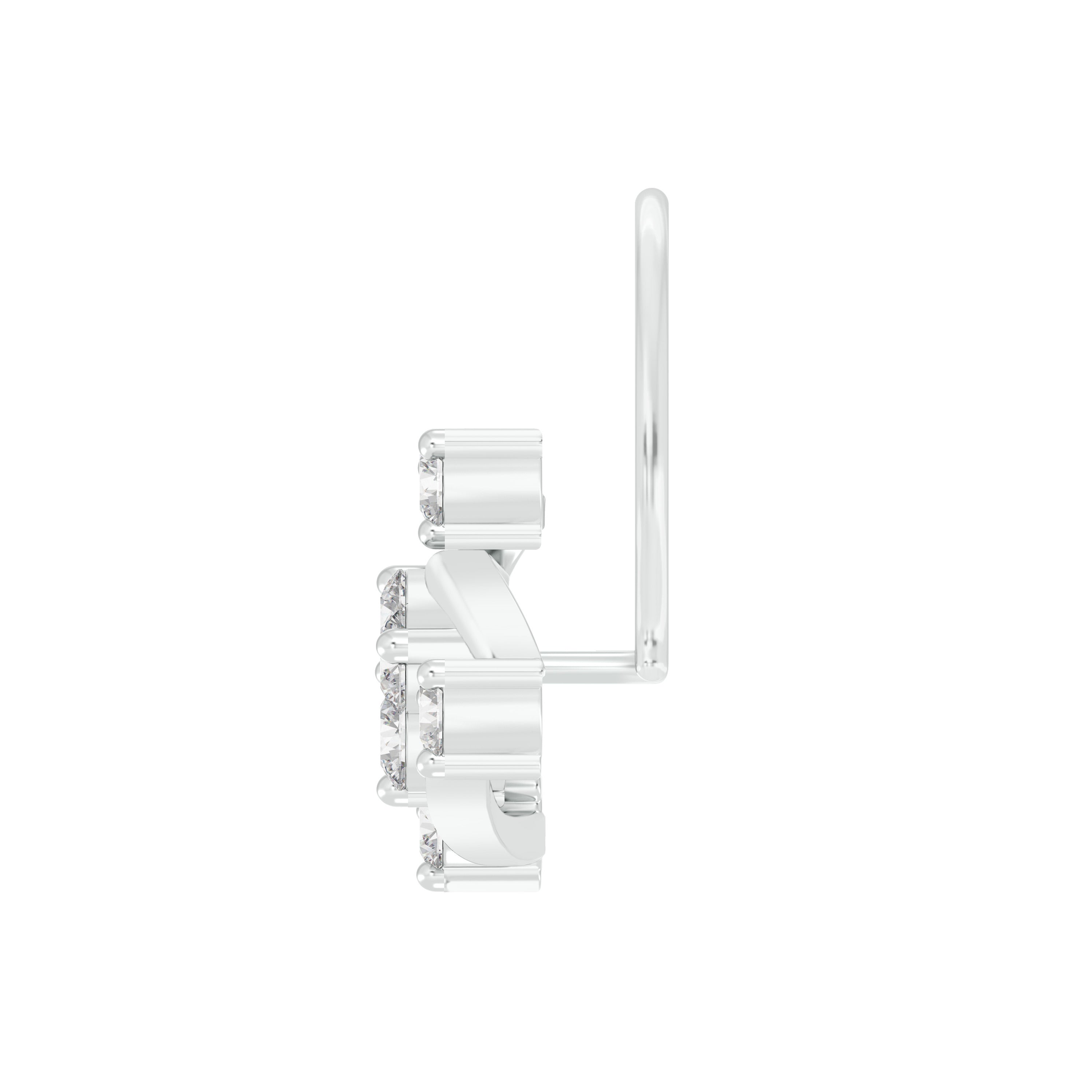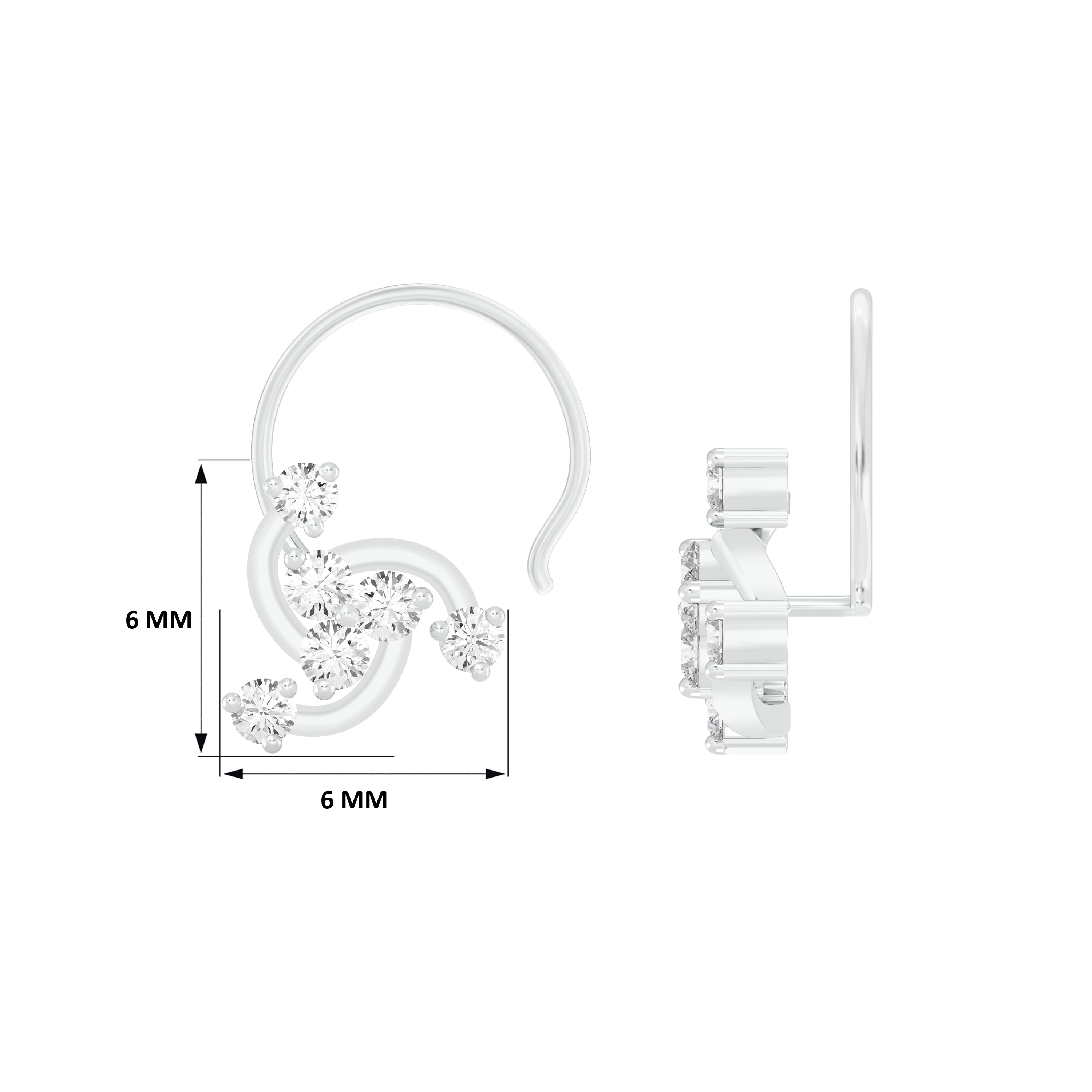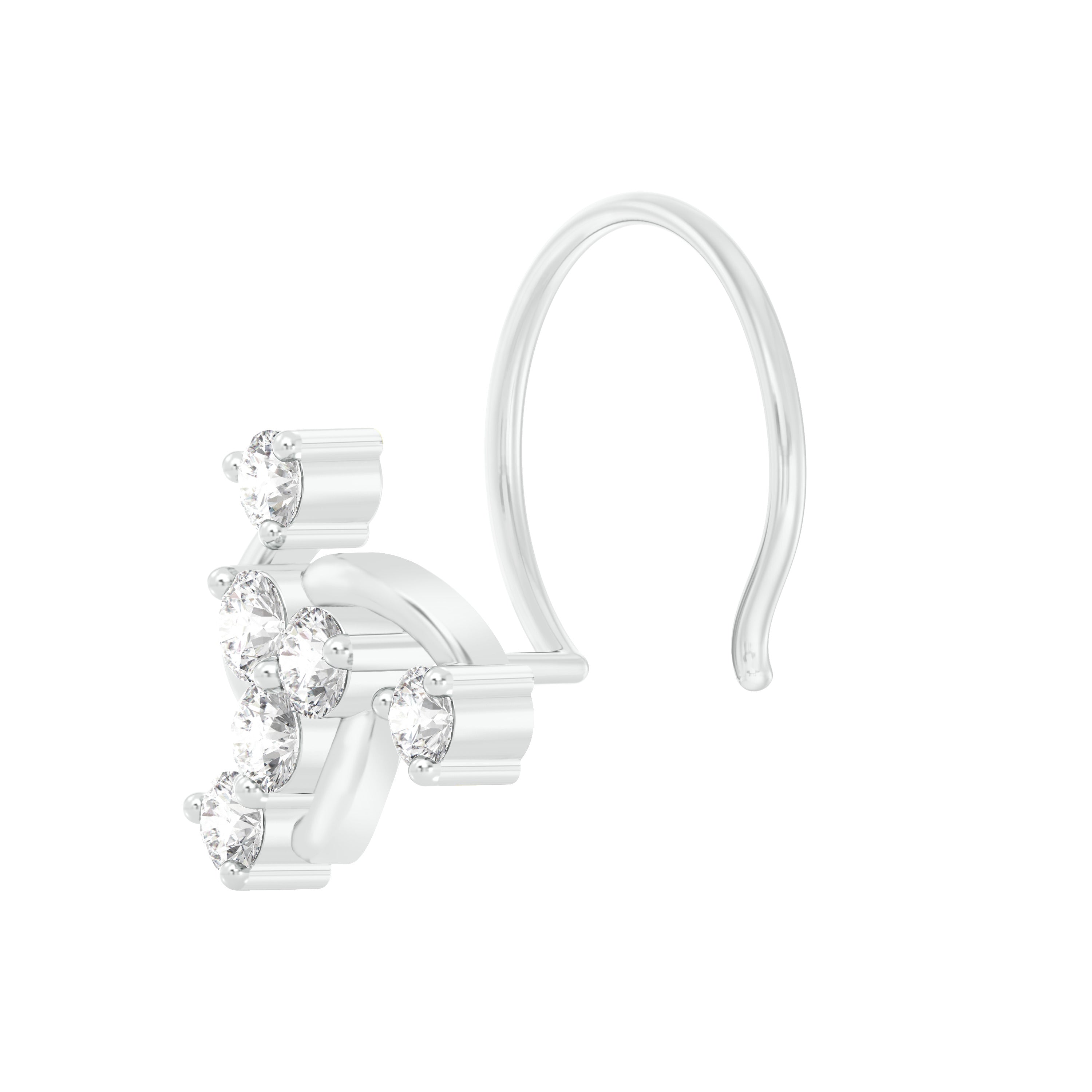 18k White Gold Round Brilliant Cut Elegant Diamond Nose Pin with Wire measuring 6mm width. For health and safety reasons, nose pins and nose rings CANNOT BE exchanged or returned once purchased.
