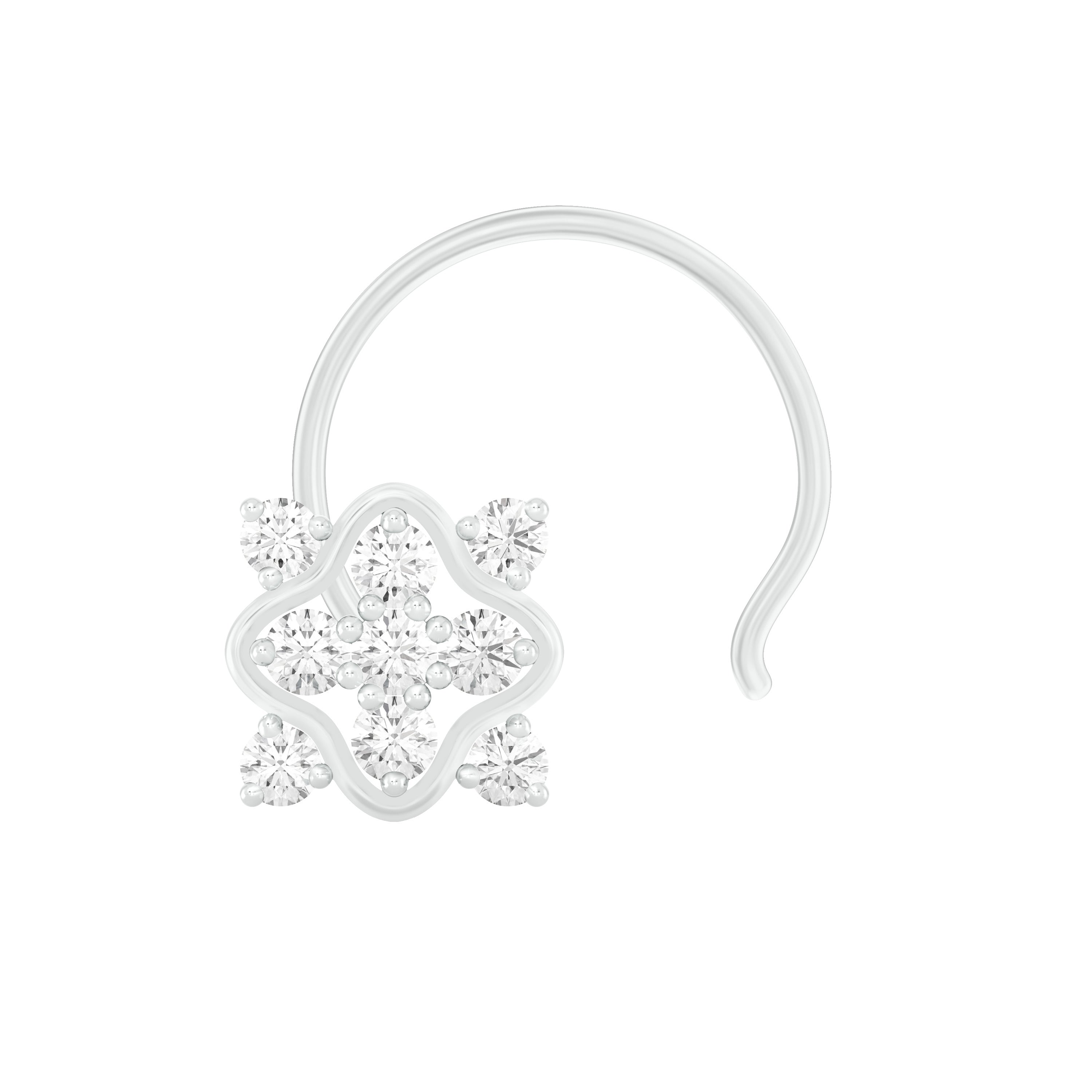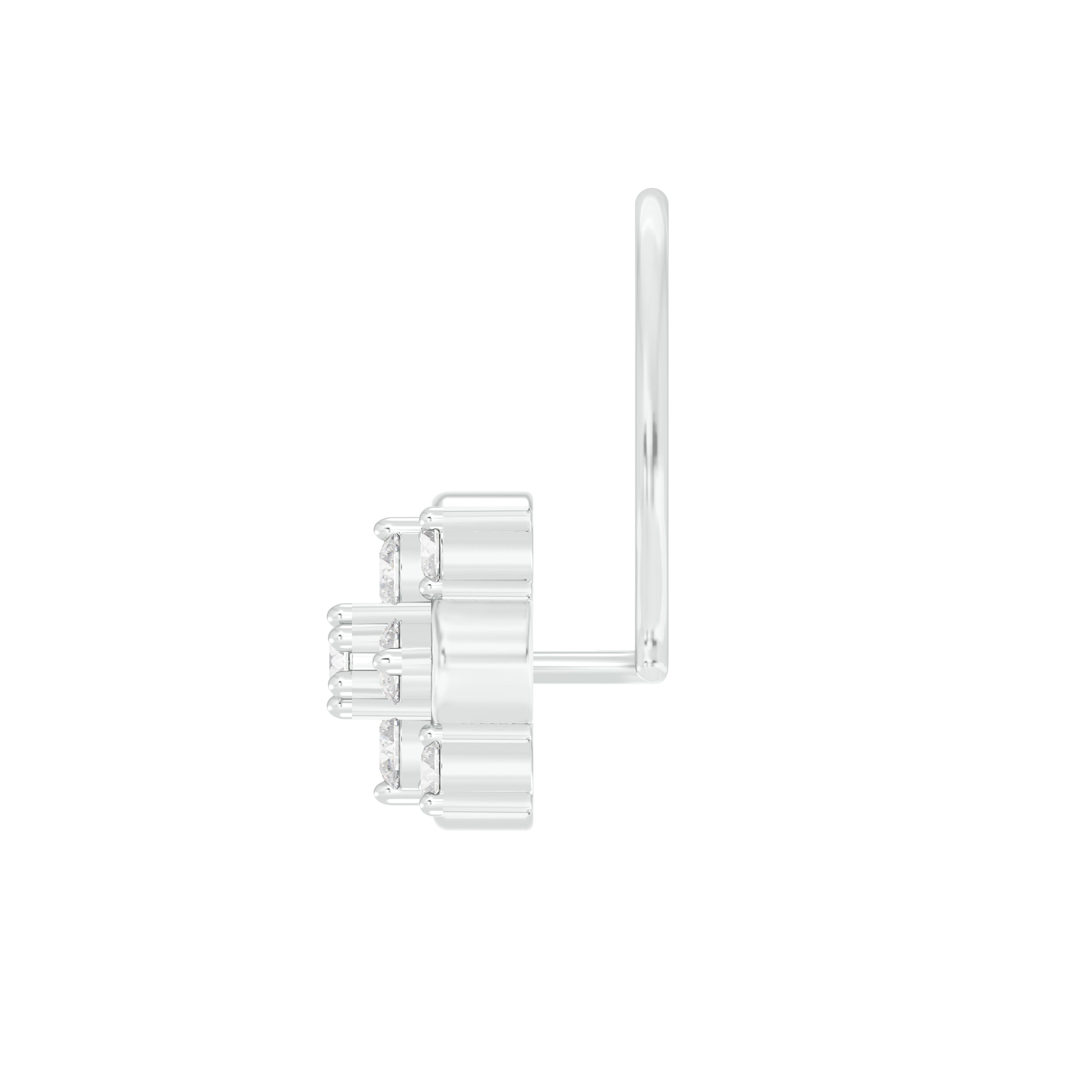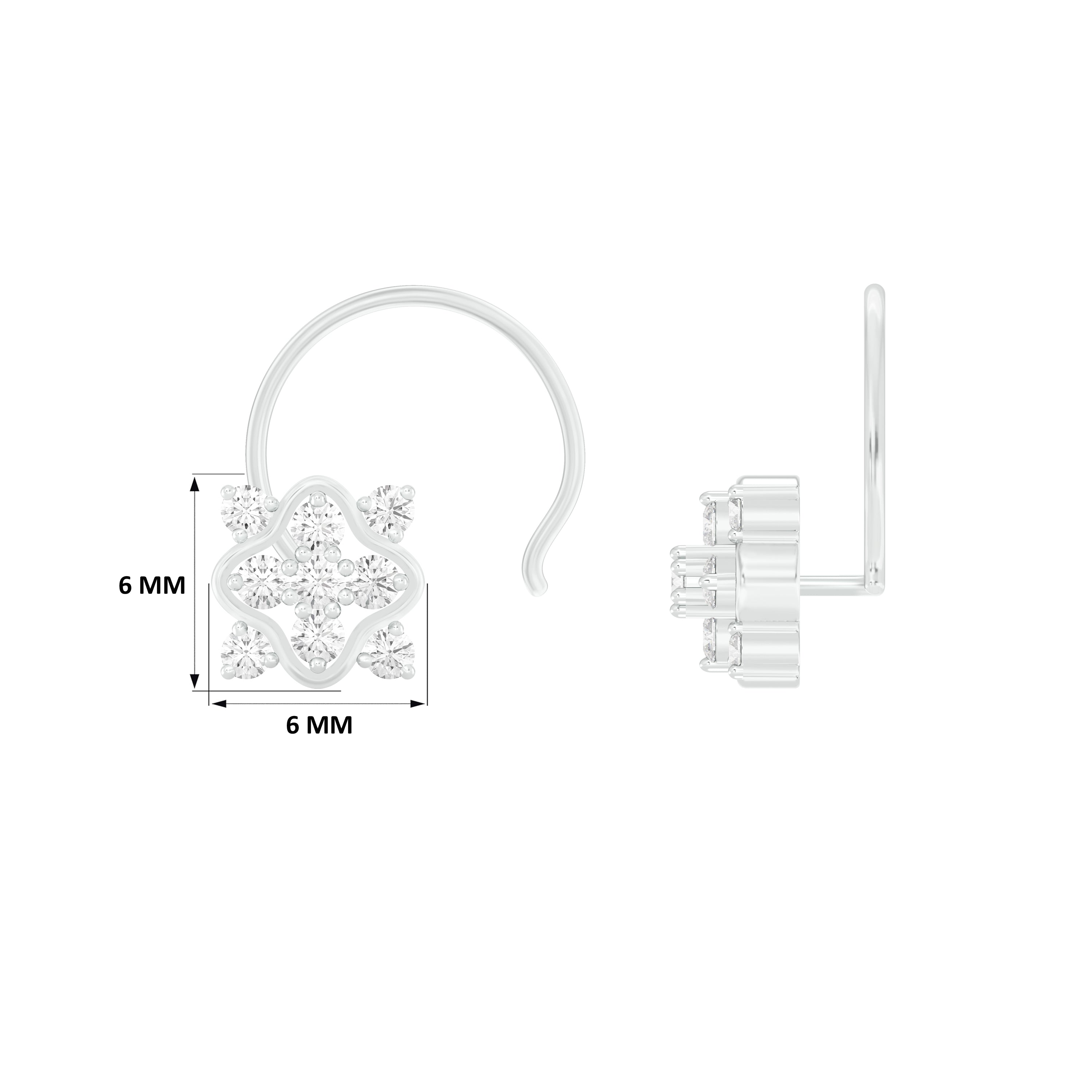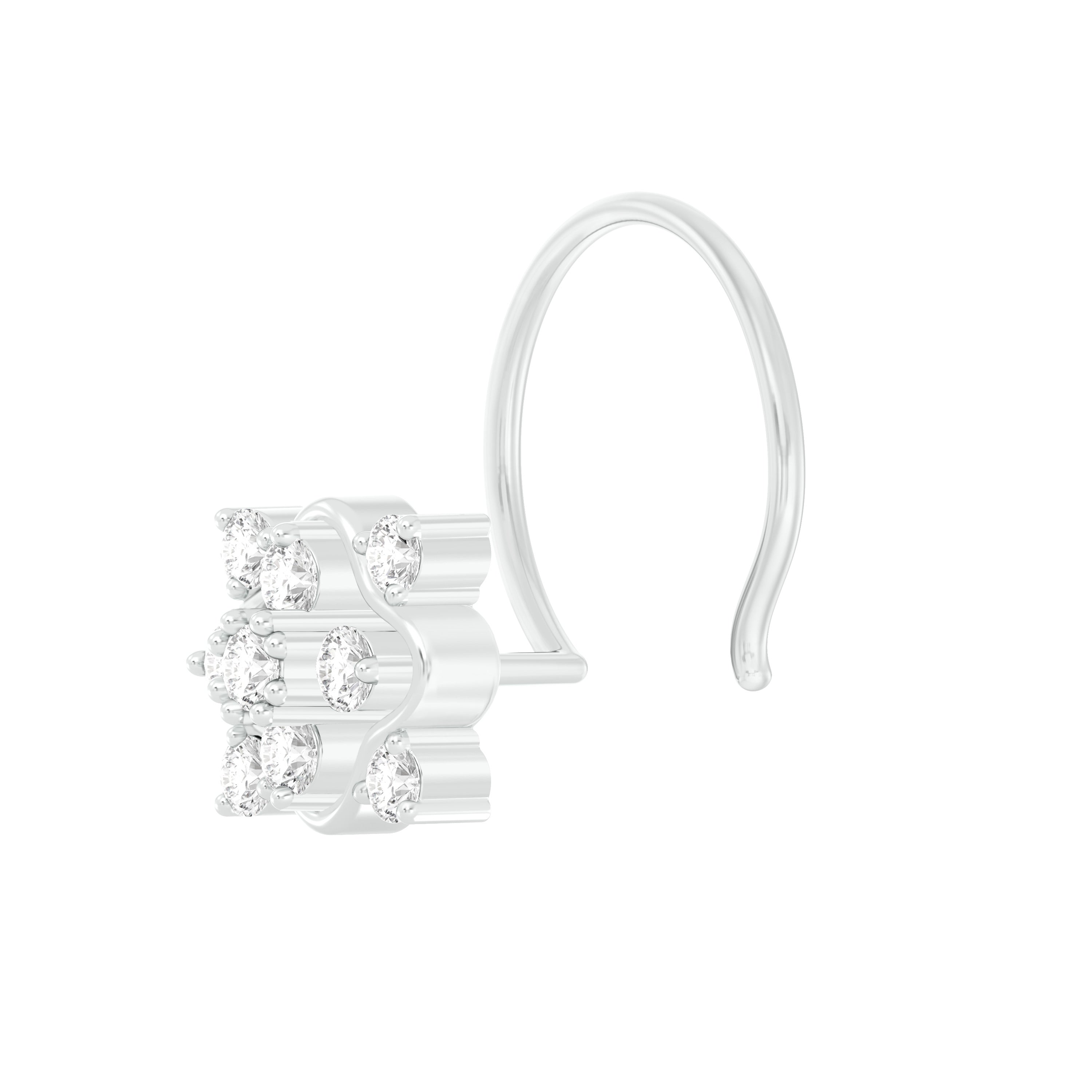 18k White Gold Round Brilliant Cut Geometric Diamond Nose Pin with Wire measuring 6mm width. For health and safety reasons, nose pins and nose rings CANNOT BE exchanged or returned once purchased.