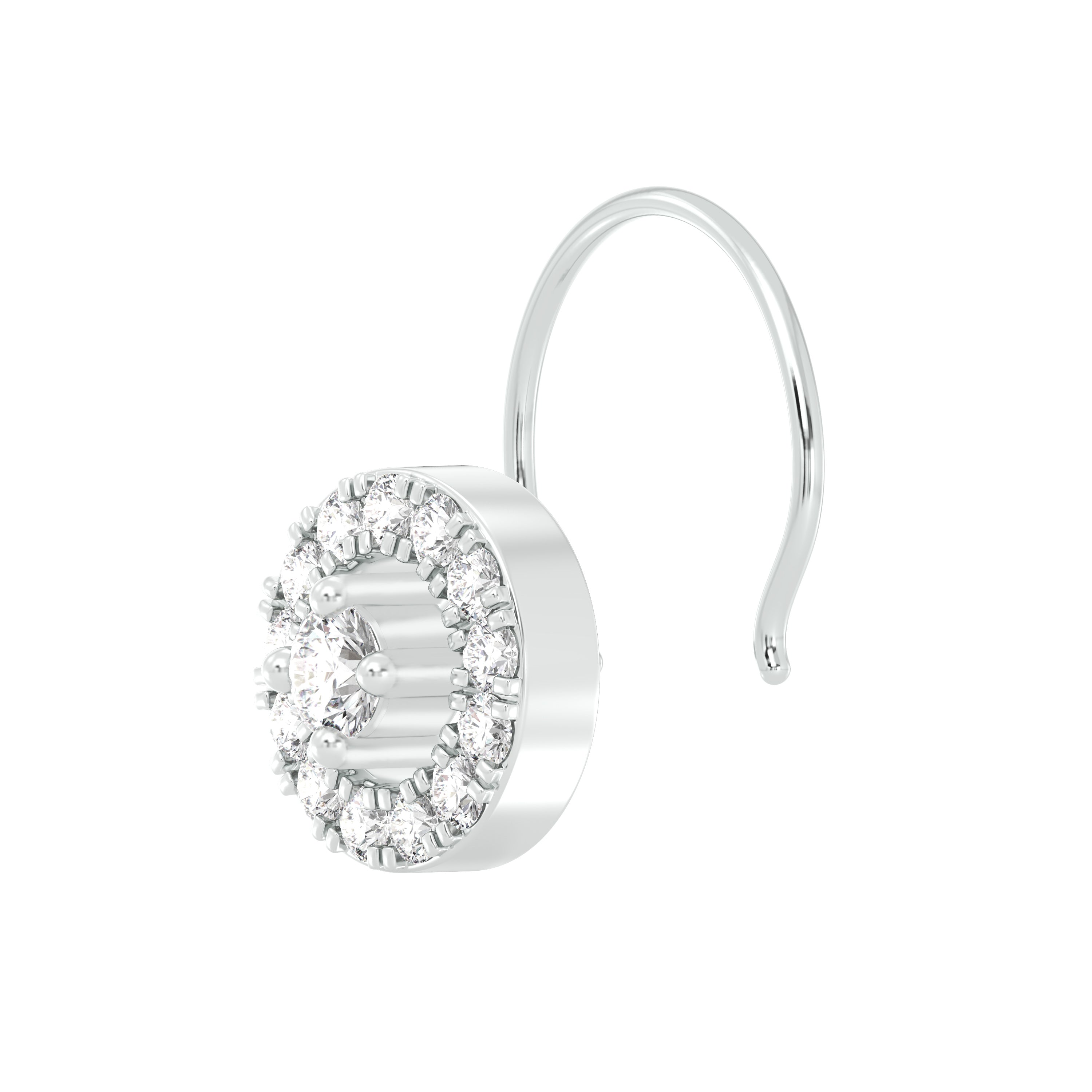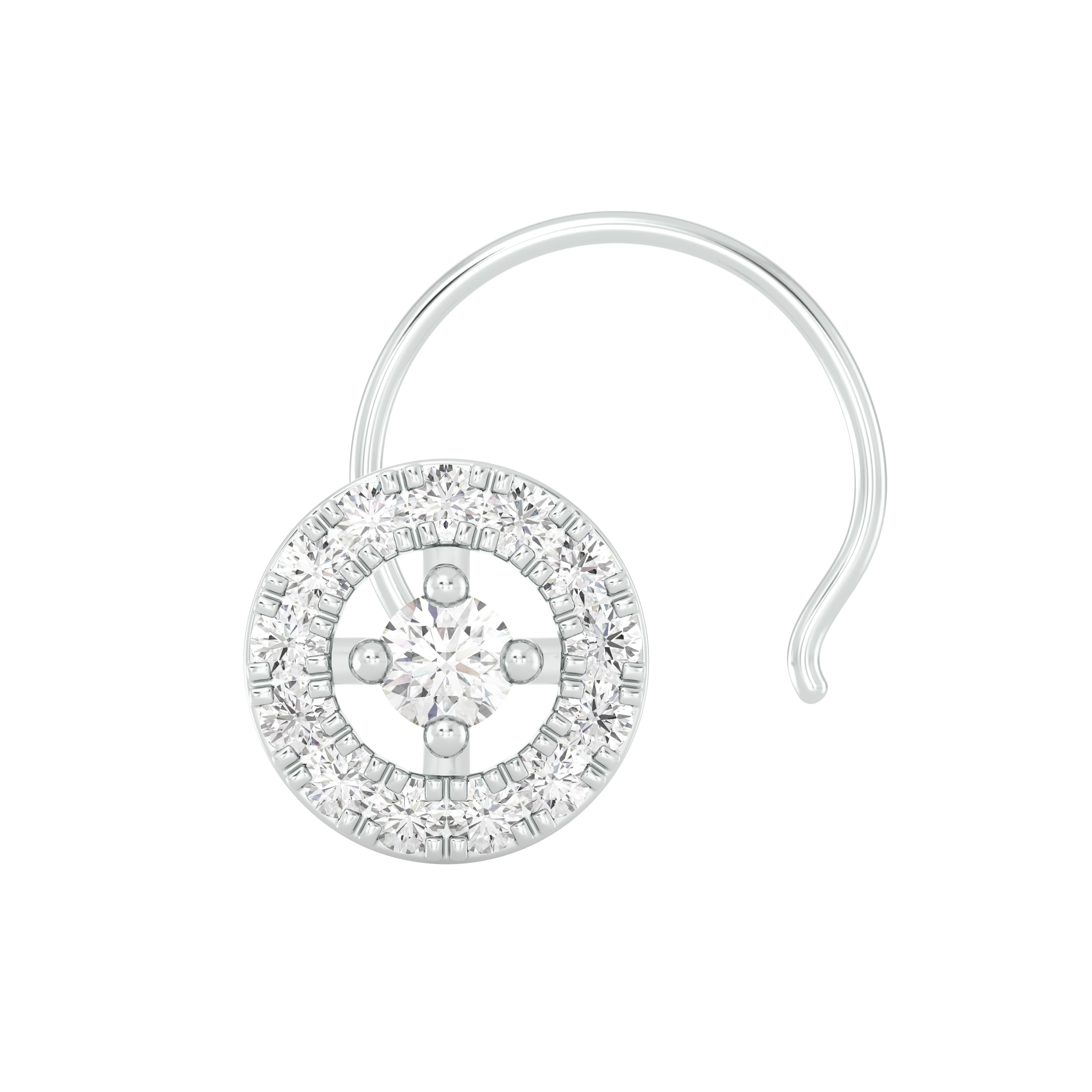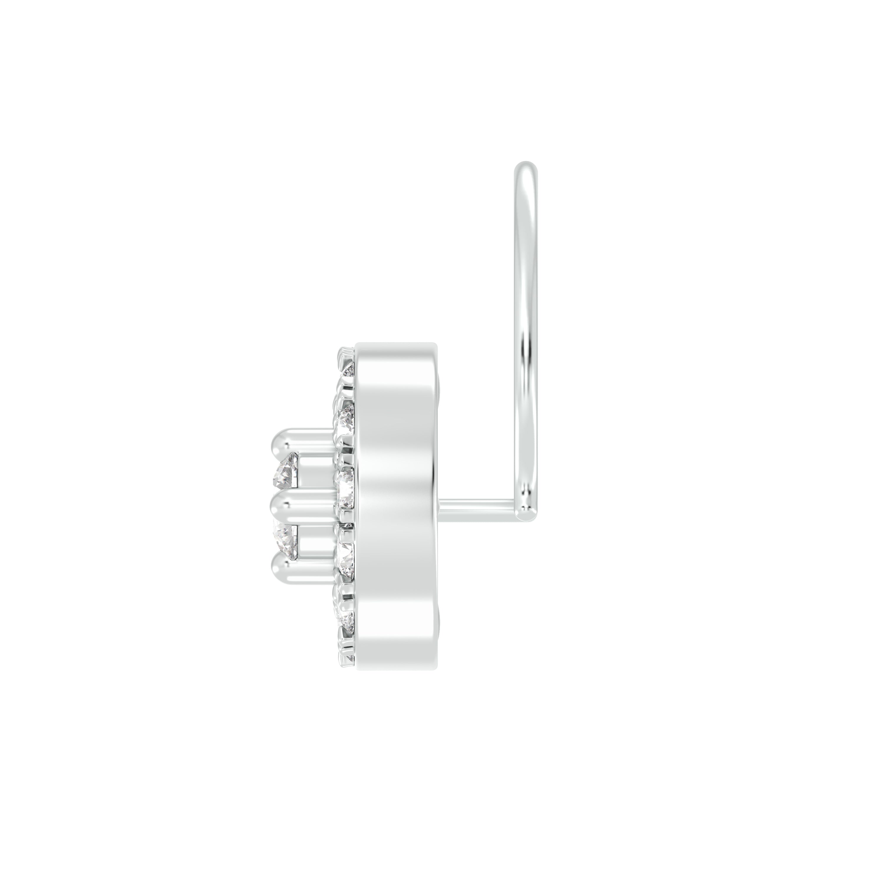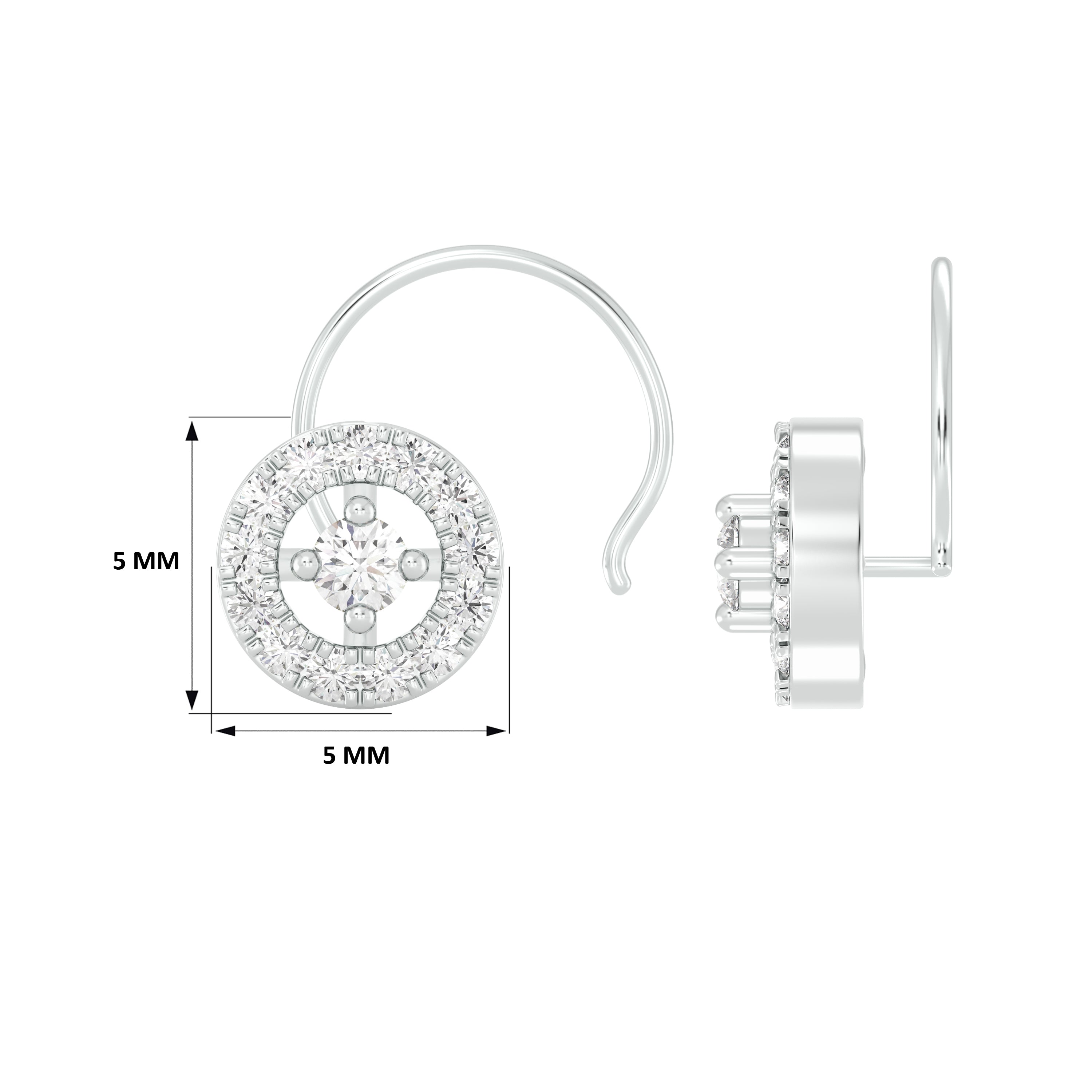 18k White Gold Round Brilliant Cut Minimalist Diamond Nose Pin with Wire measuring 5mm width. For health and safety reasons, nose pins and nose rings CANNOT BE exchanged or returned once purchased.