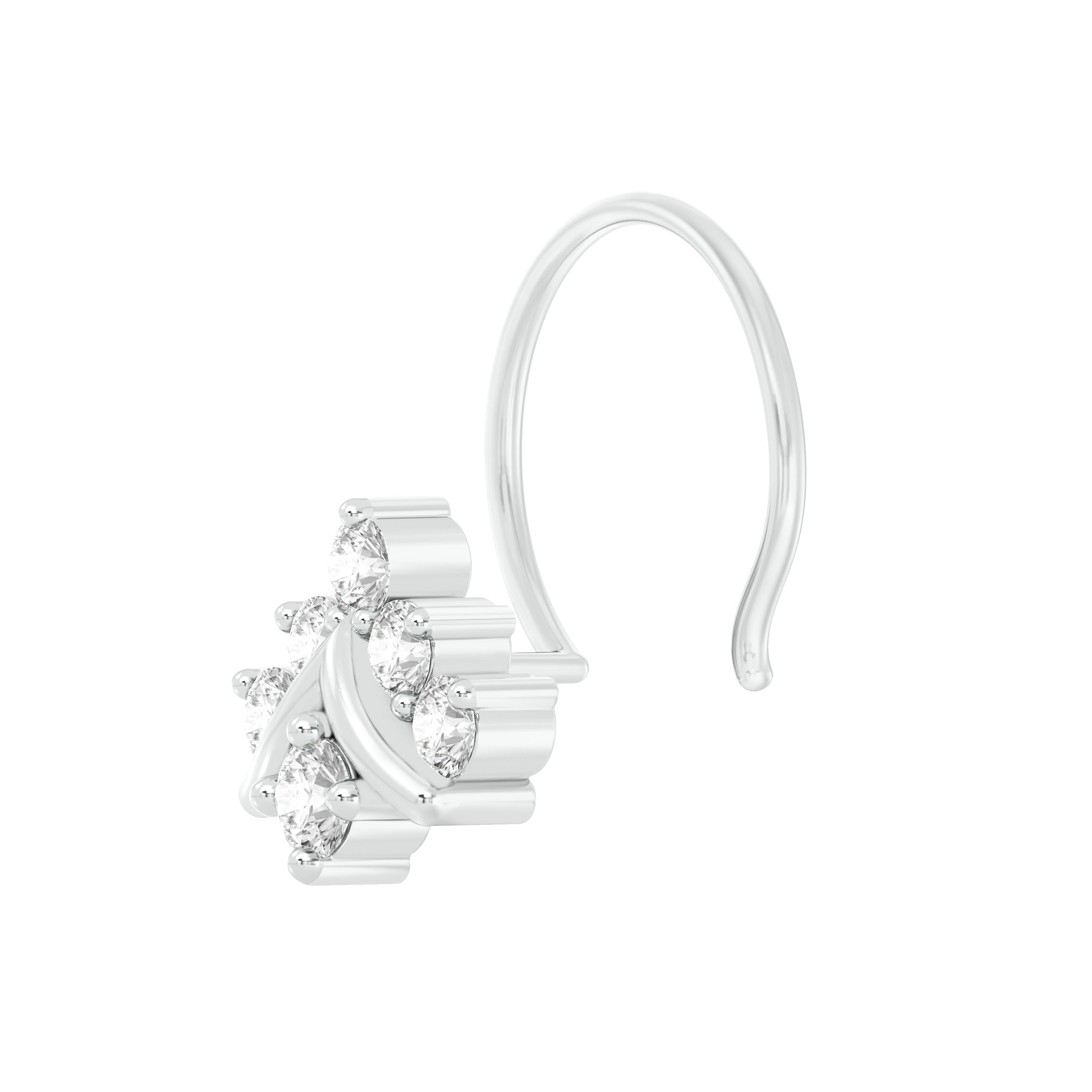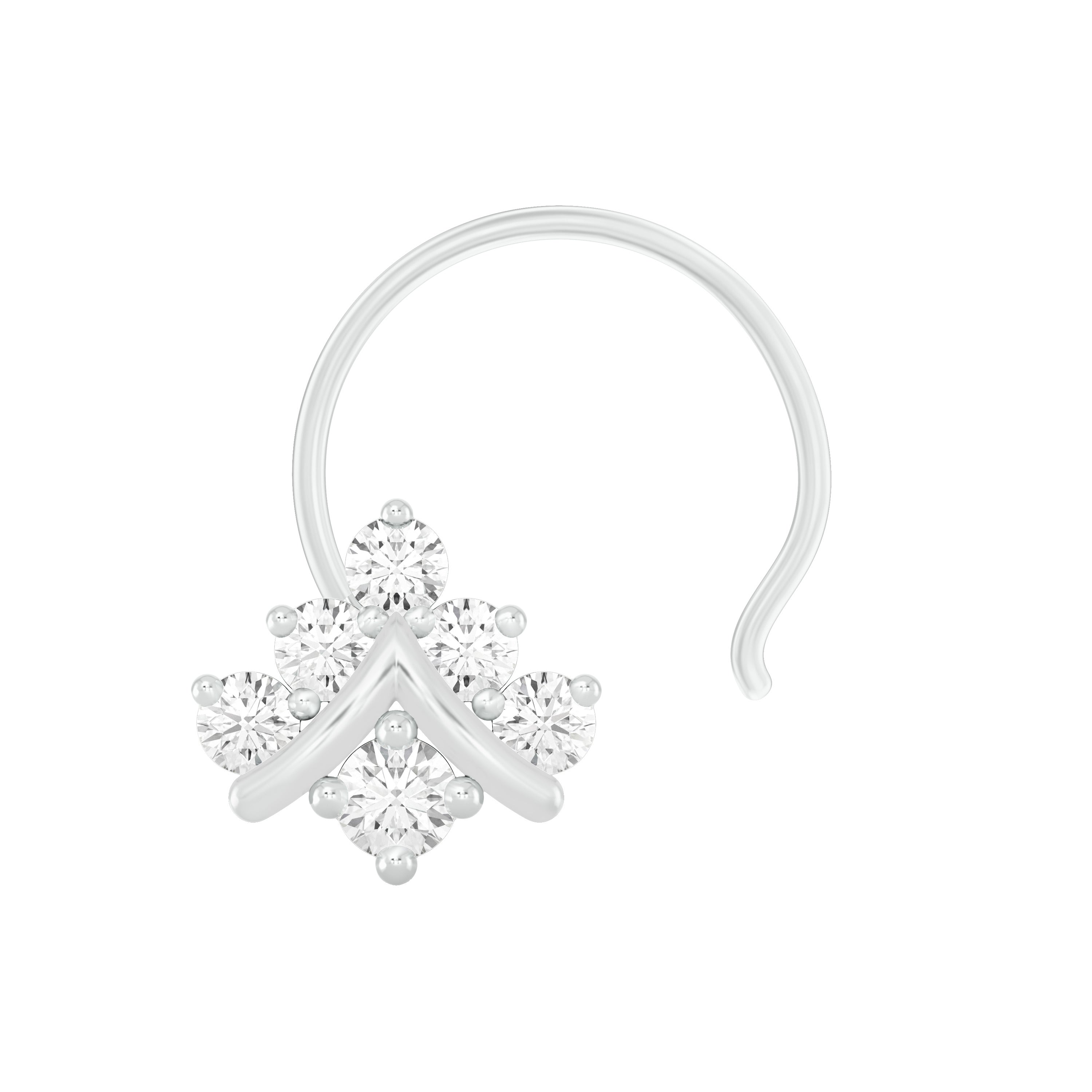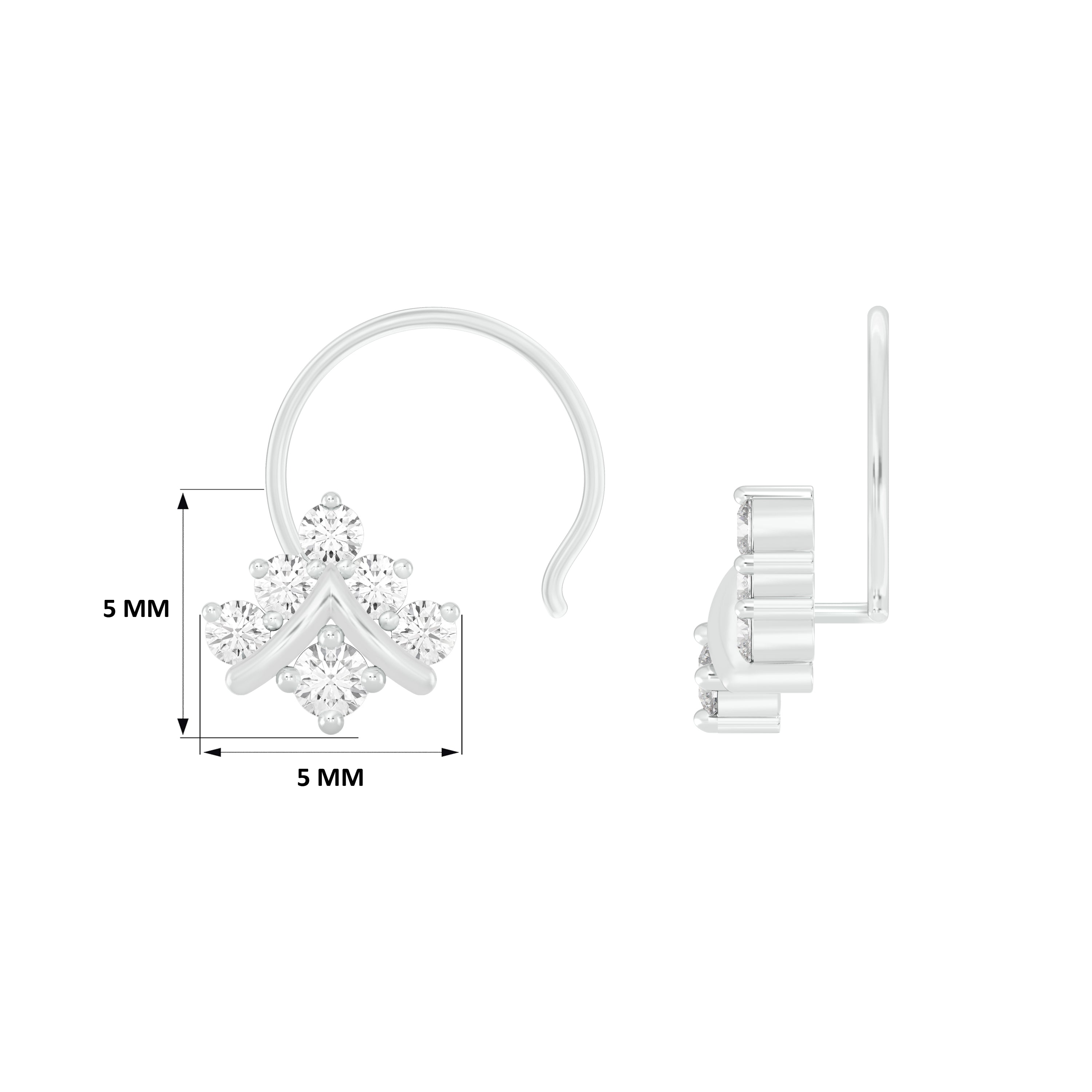 18k White Gold Round Brilliant Cut Luminous Diamond Nose Pin with Wire measuring 5mm width. For health and safety reasons, nose pins and nose rings CANNOT BE exchanged or returned once purchased.