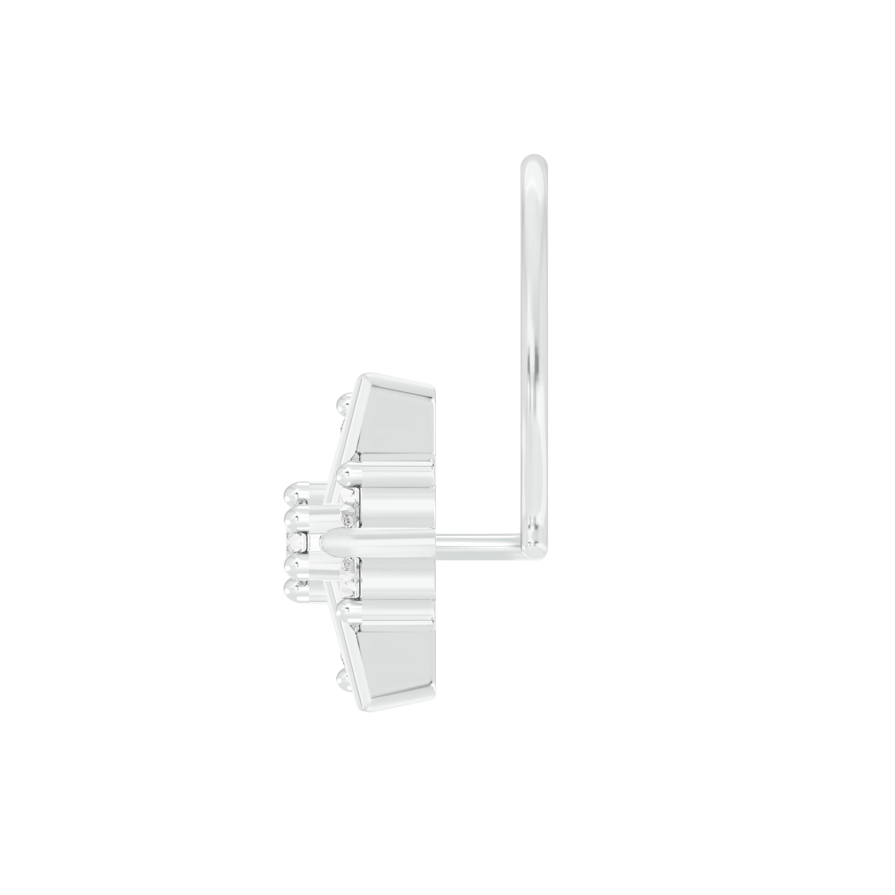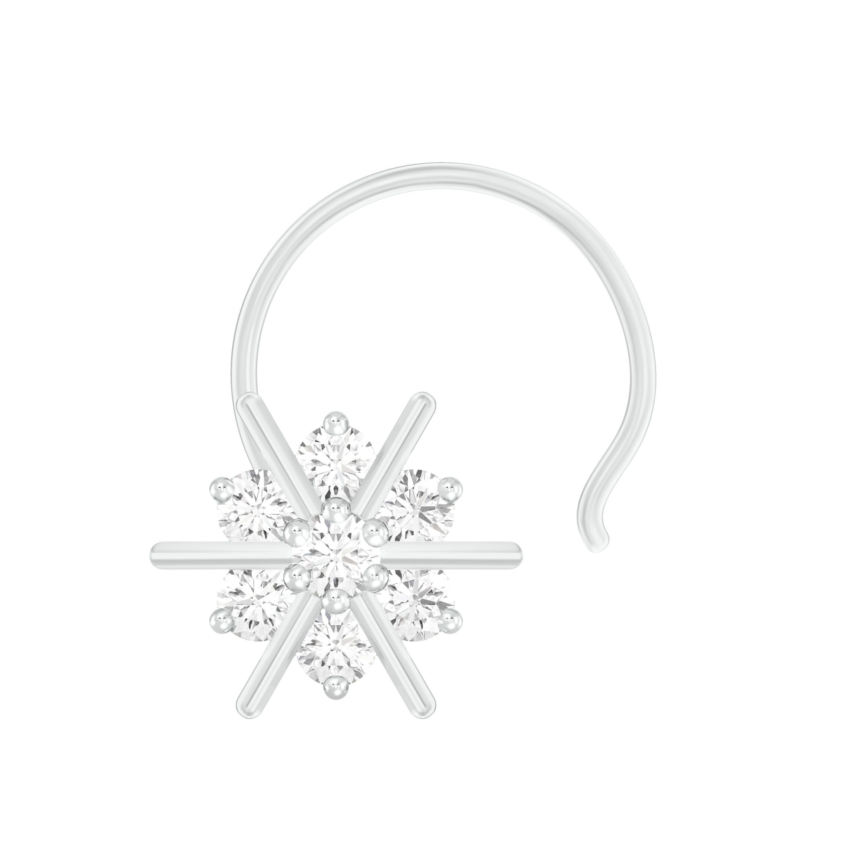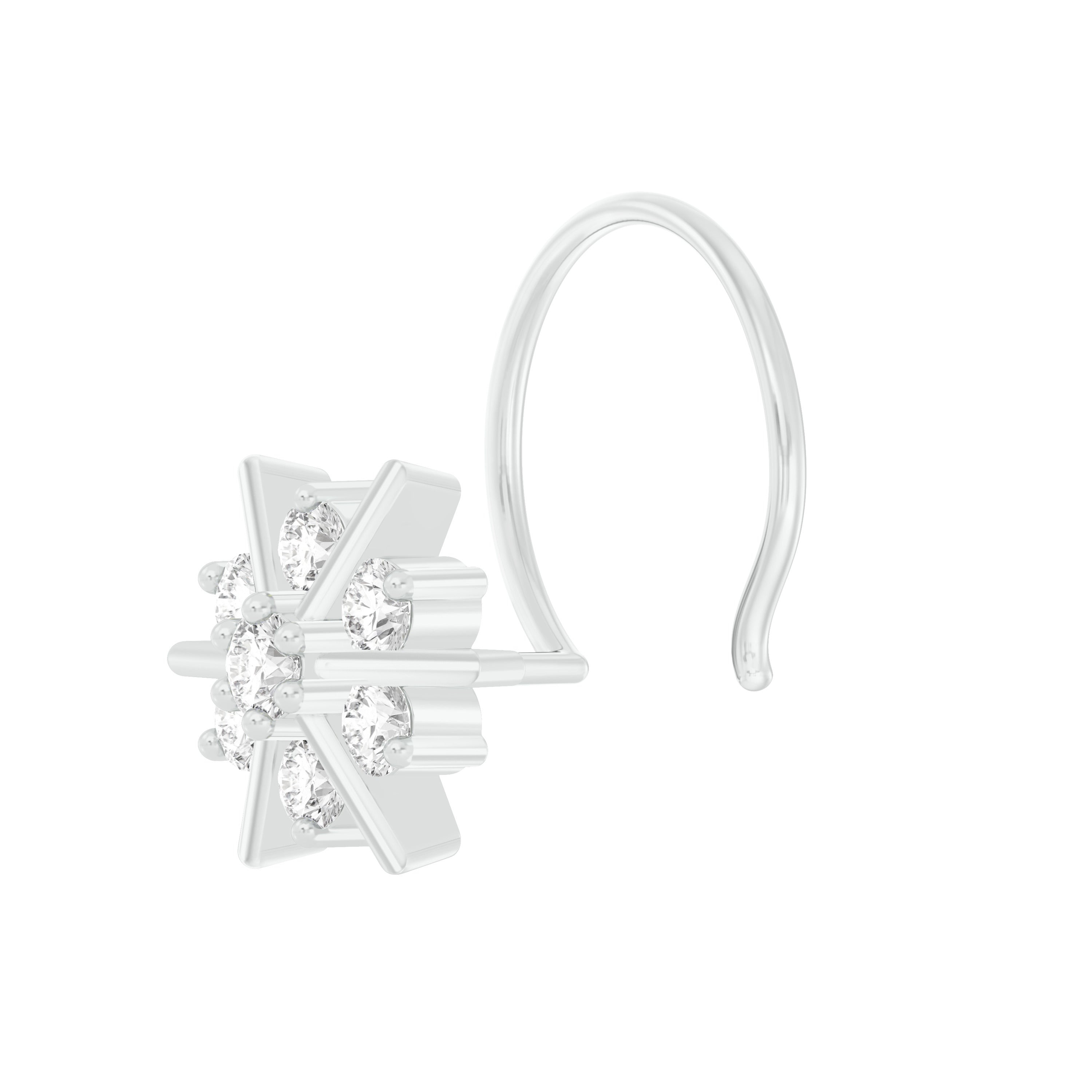 18k White Gold Round Brilliant Cut Shimmering Diamond Nose Pin with Wire measuring 6mm width. For health and safety reasons, nose pins and nose rings CANNOT BE exchanged or returned once purchased.