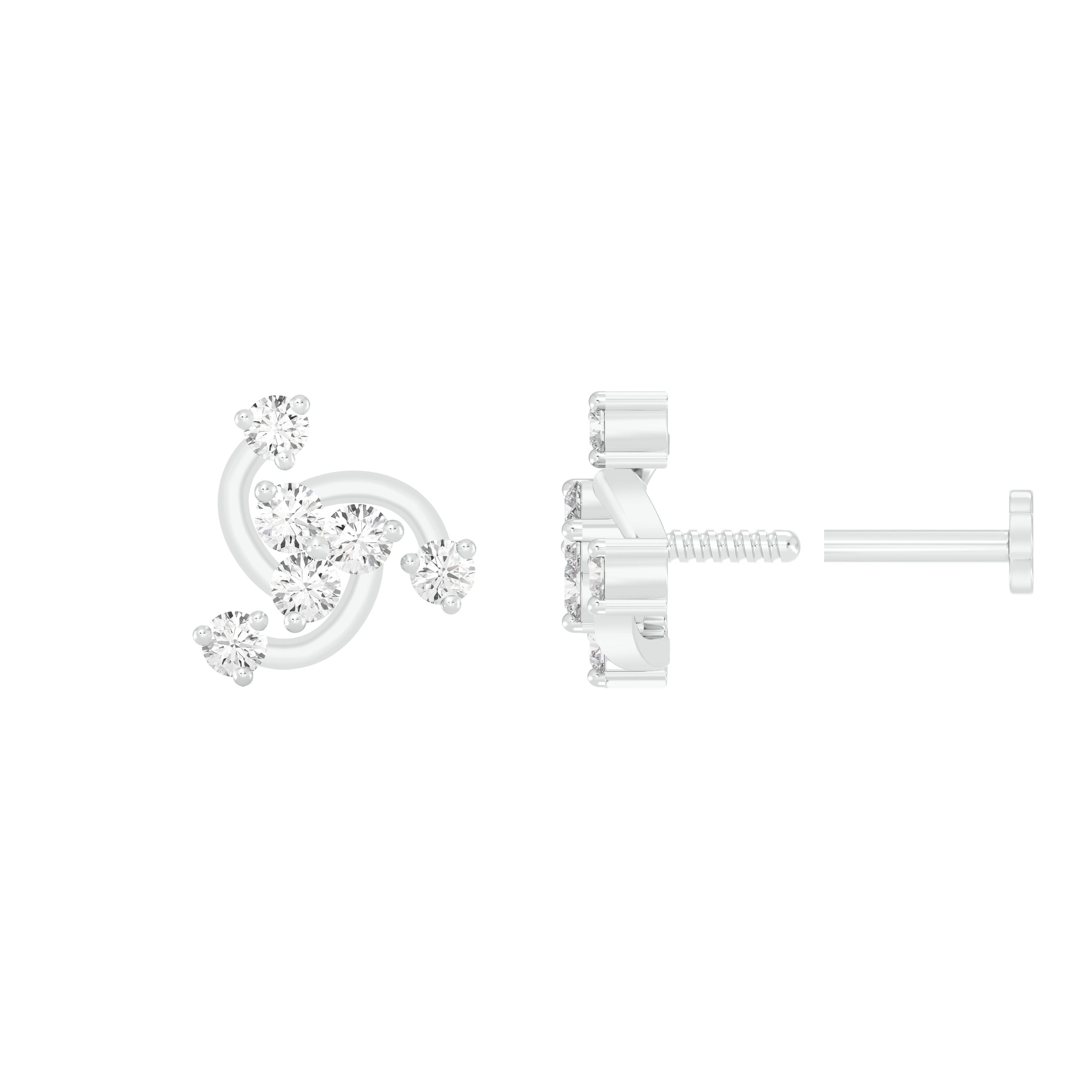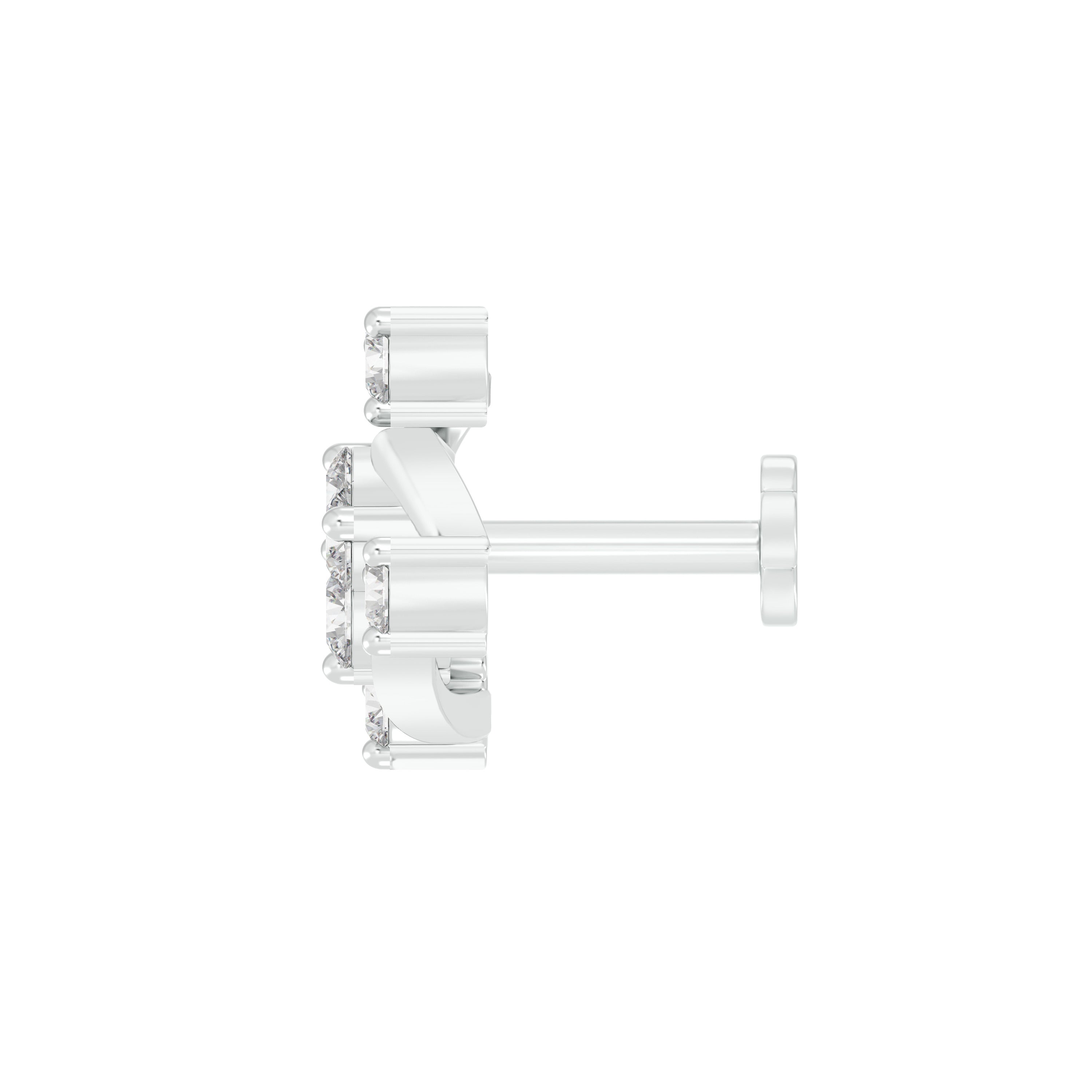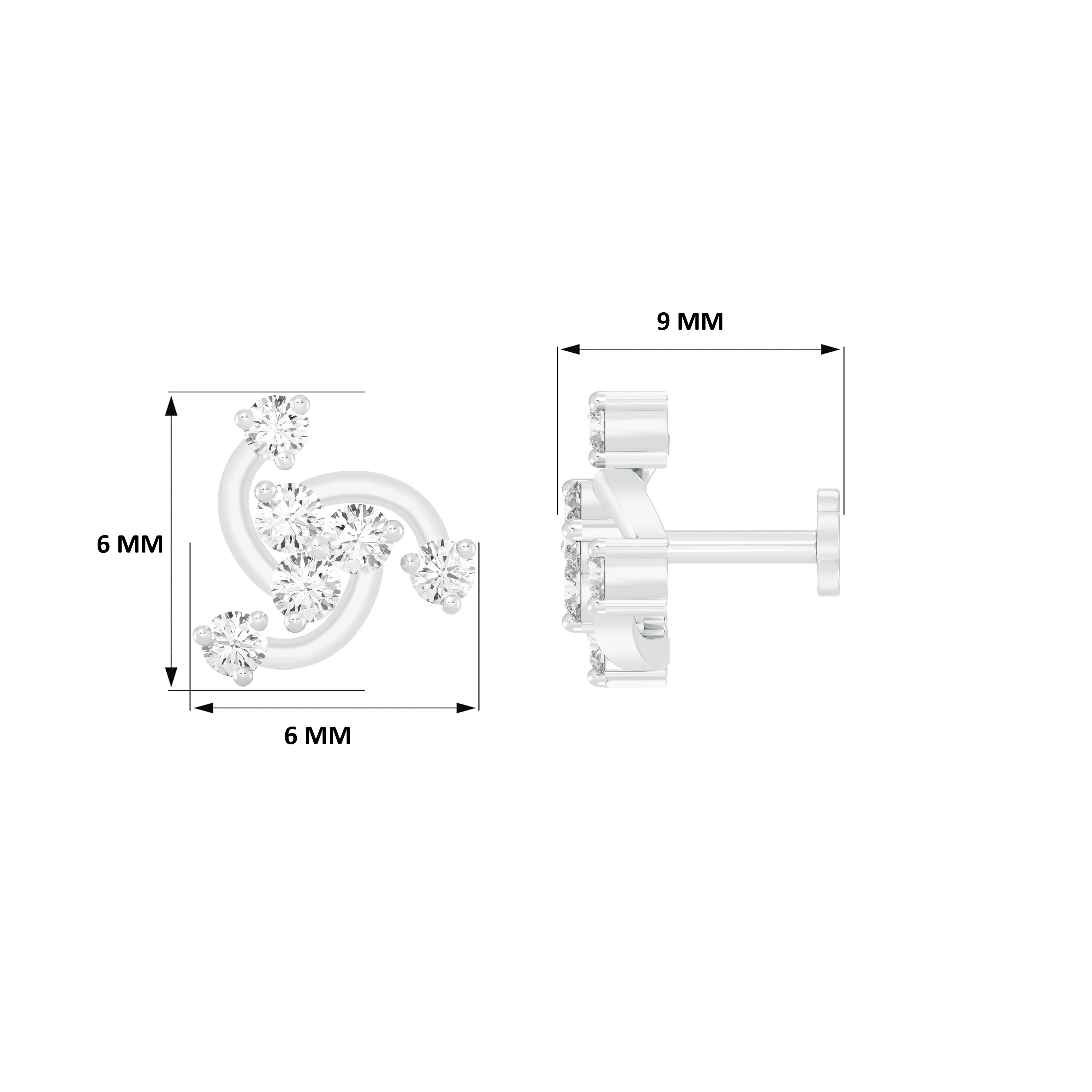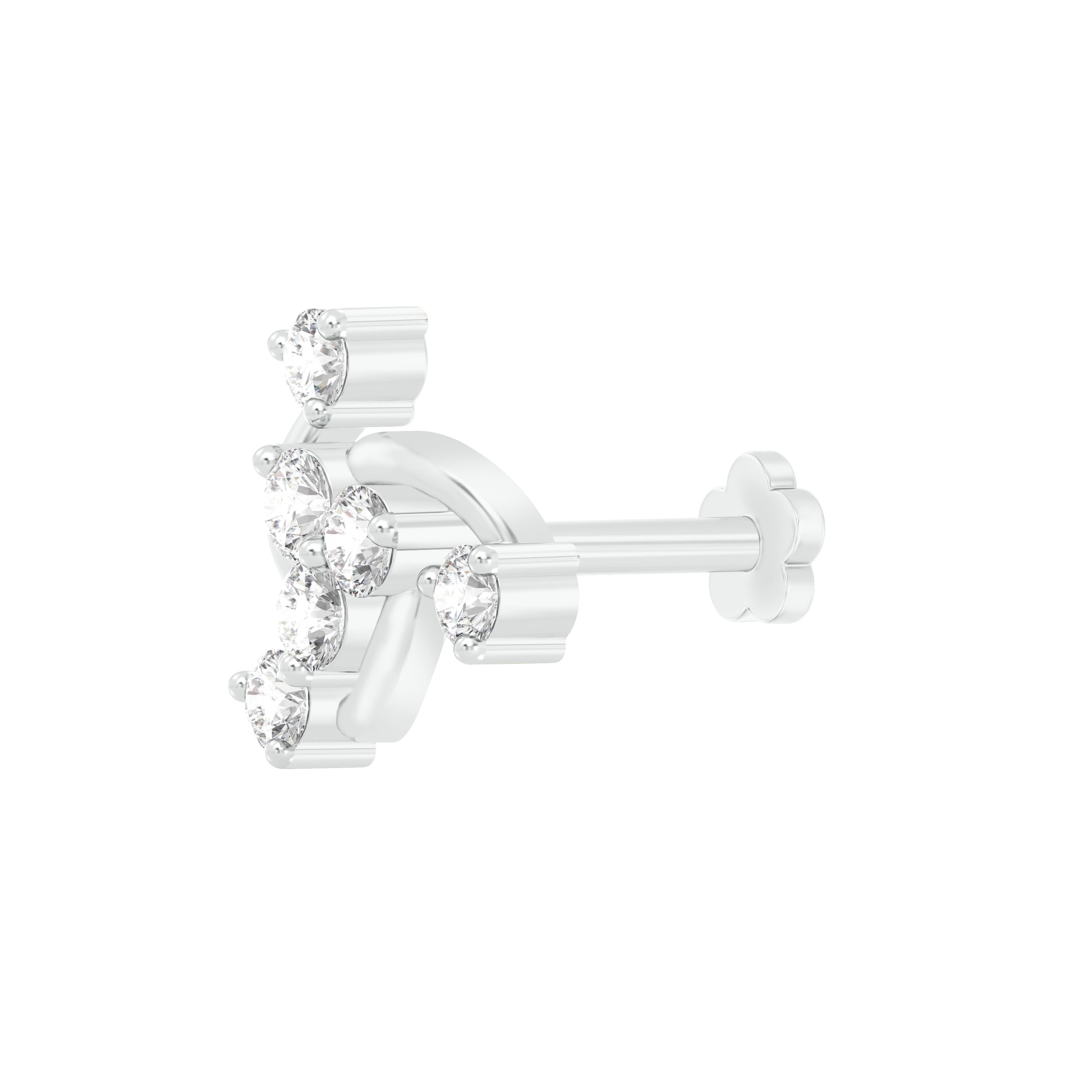 18k White Gold Round Brilliant Cut Sparkling Diamond Nose Pin with Screwback measuring 6mm width. For health and safety reasons, nose pins and nose rings CANNOT BE exchanged or returned once purchased.