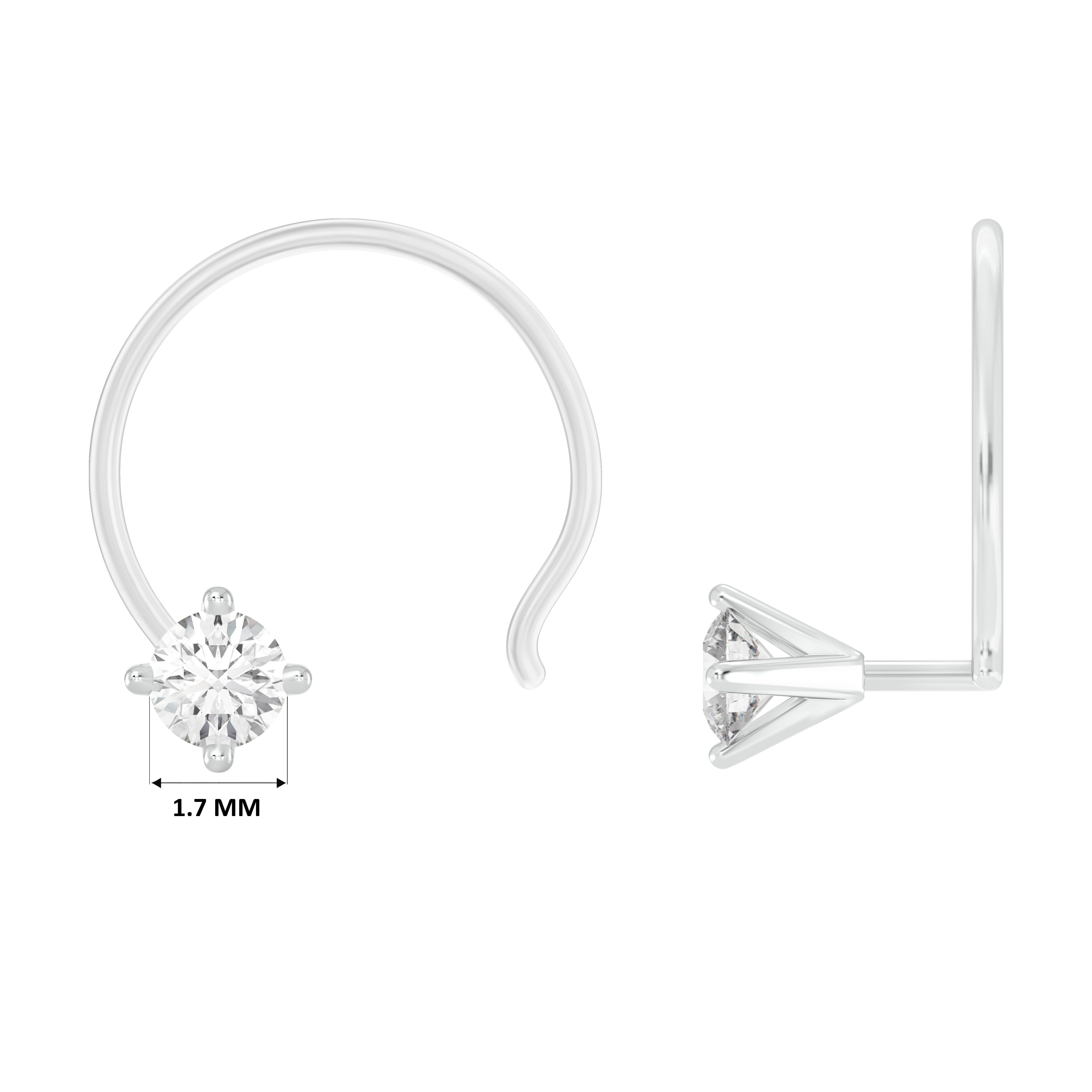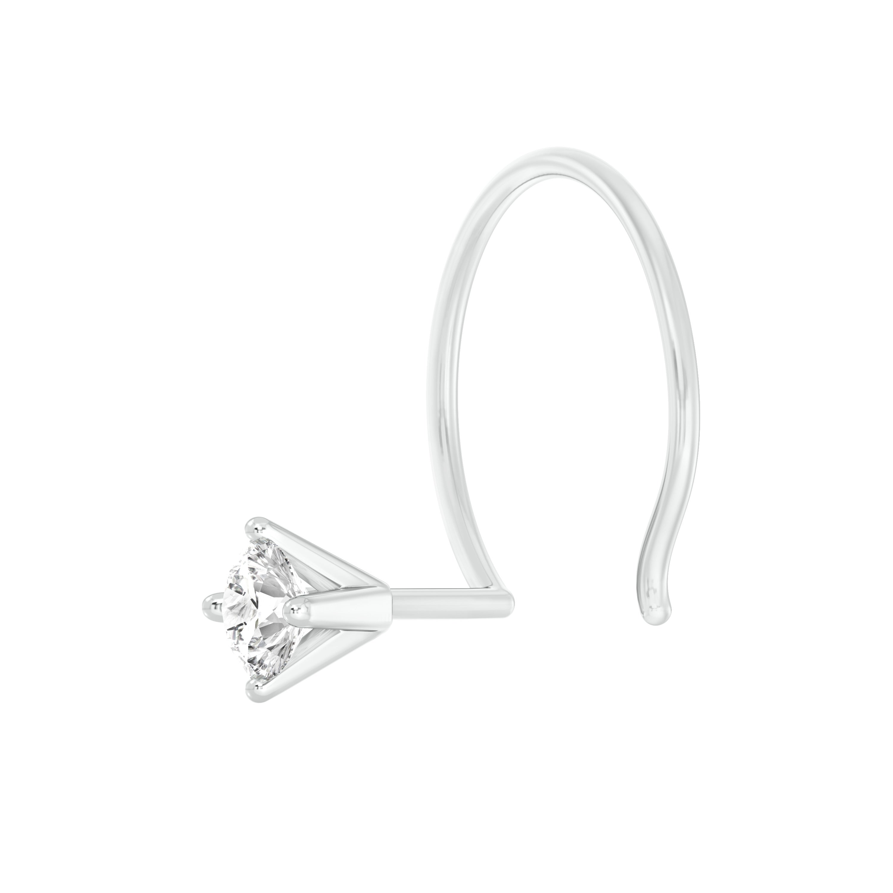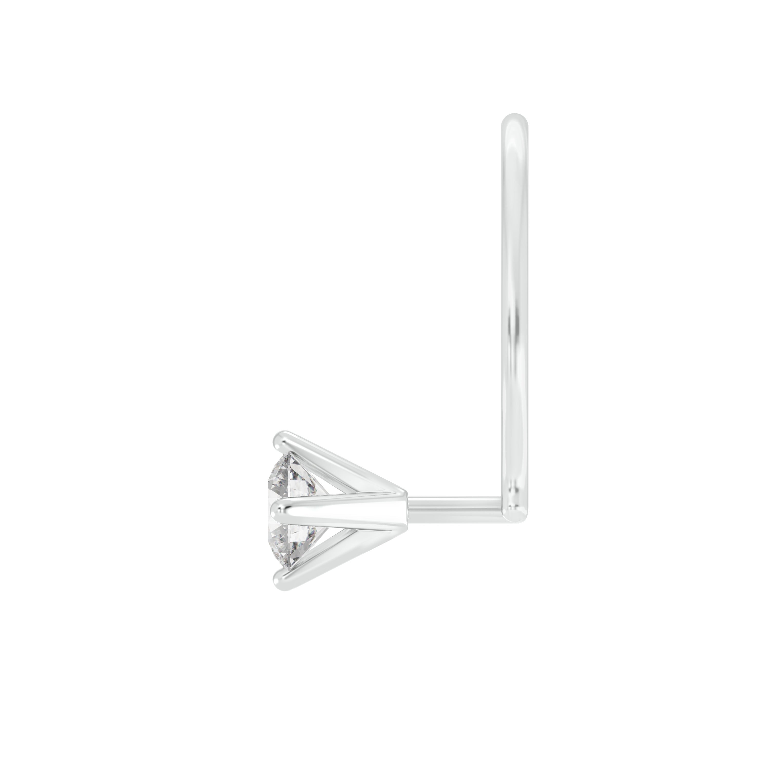 18k White Gold Round Shape Diamond Nose Pin with Wire
