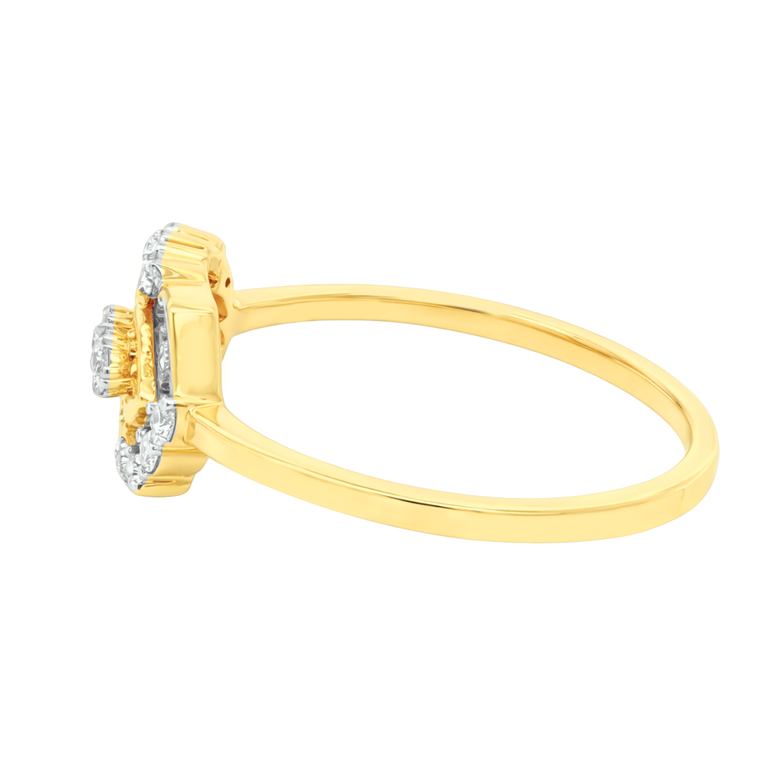 18k Yellow Gold and Diamond Fancy Ring in size 5.5 measuring 21mm length x 16mm width. Total gold weight is approximately 1.9g.