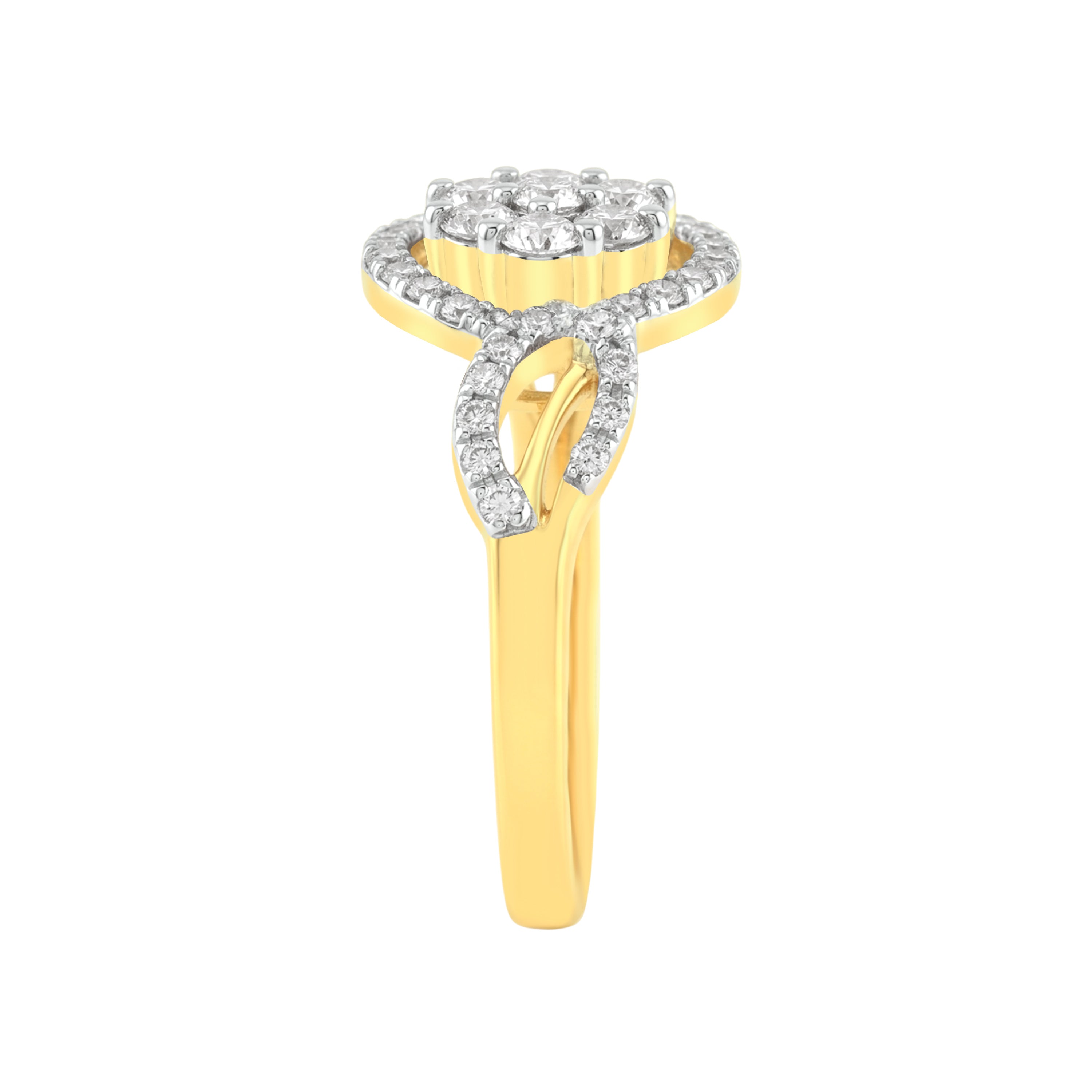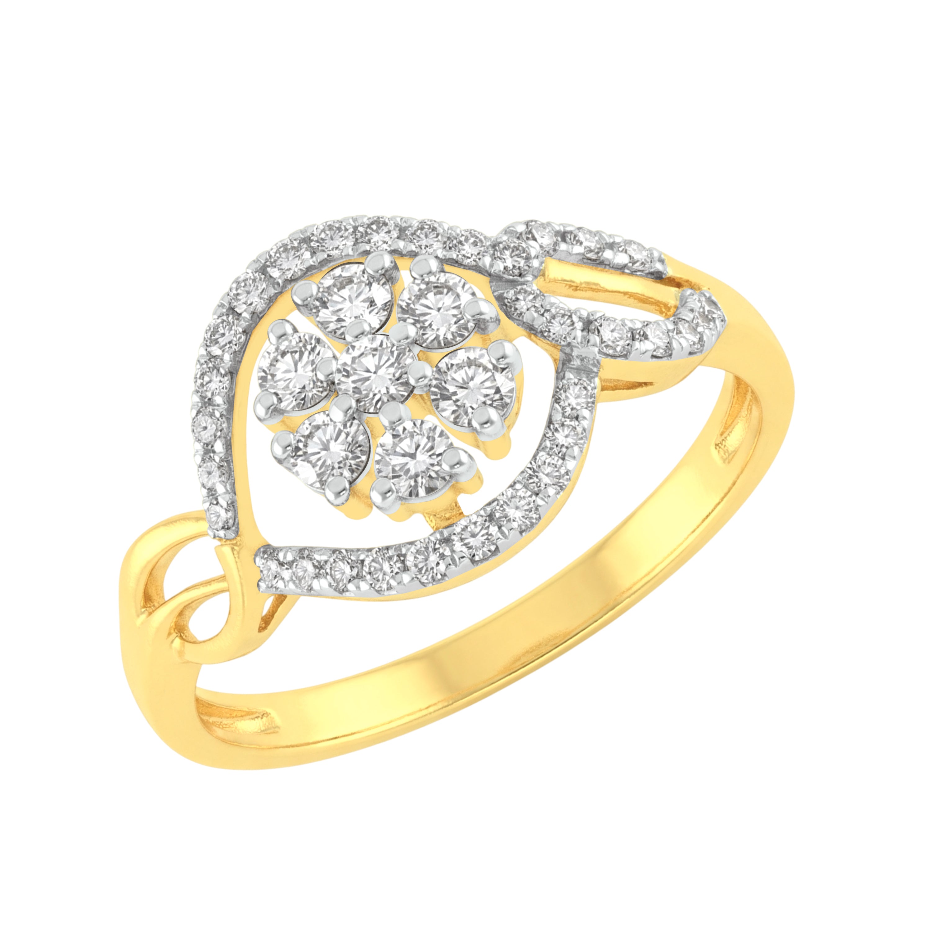 18k Yellow Gold and Diamond Fancy Ring in size 5.5 measuring 23mm length x 16mm width. Total gold weight is approximately 3.58g.