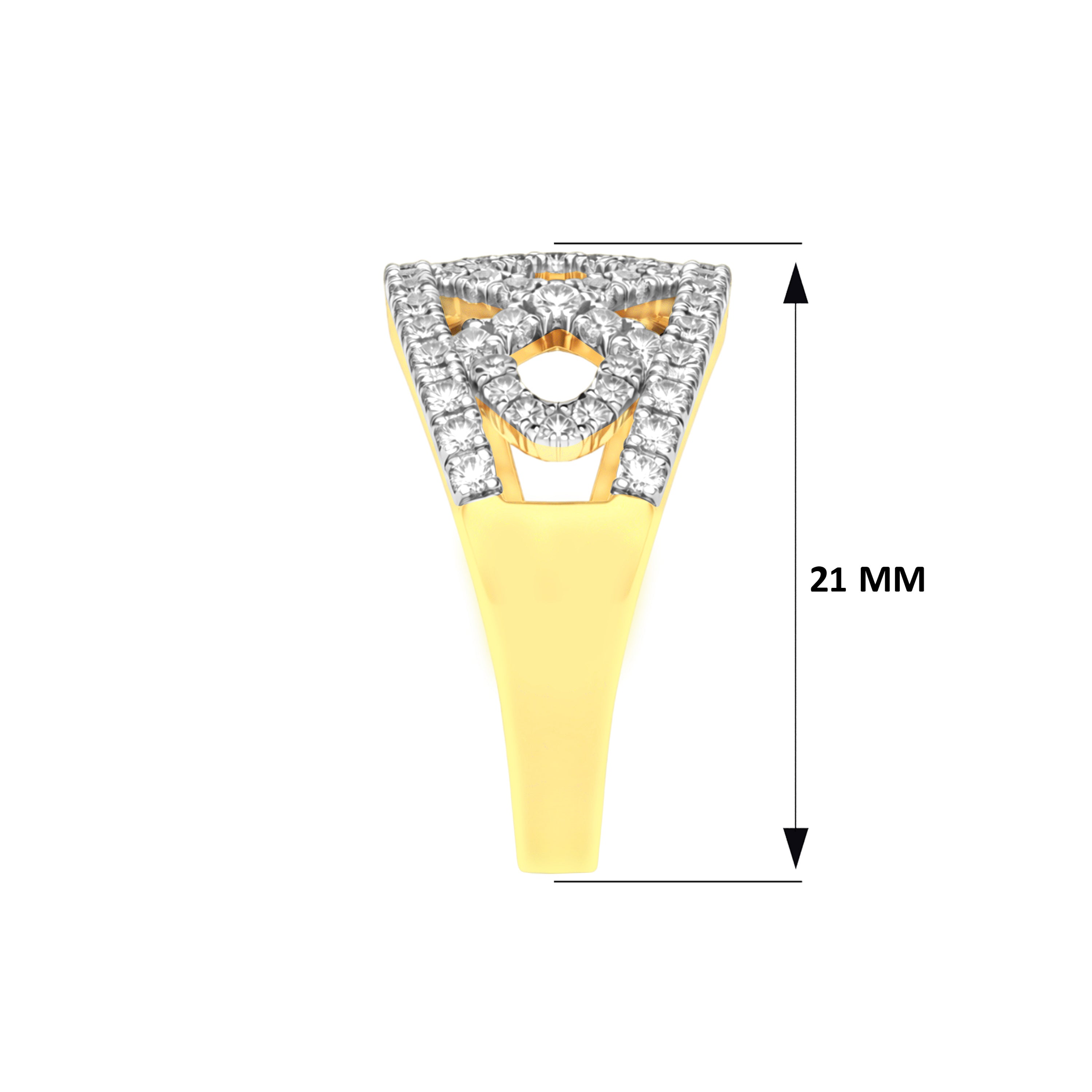 18k Yellow Gold and Diamond Fancy Ring in size 6.5 measuring 21mm length x 18mm width. Total gold weight is approximately 4.9g.