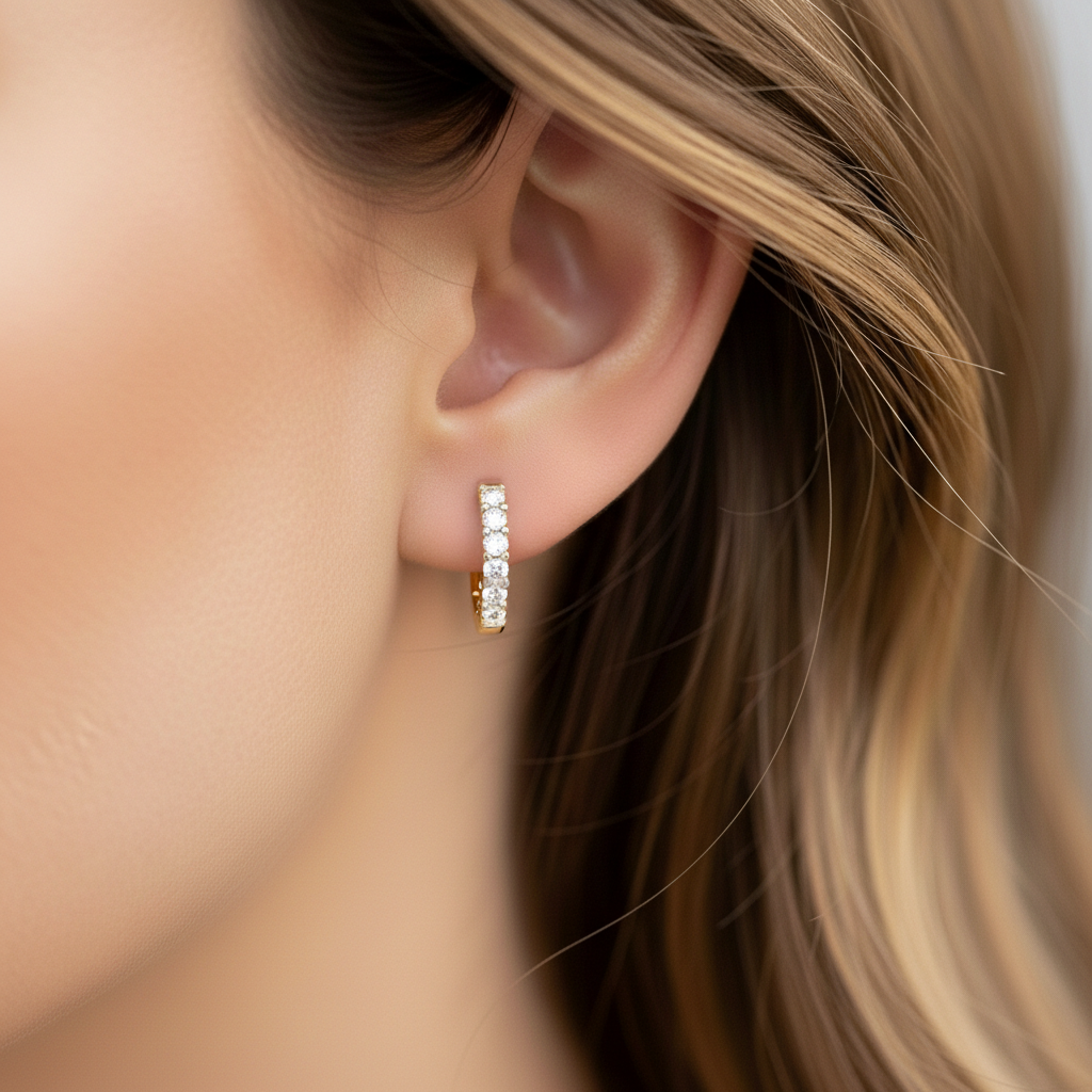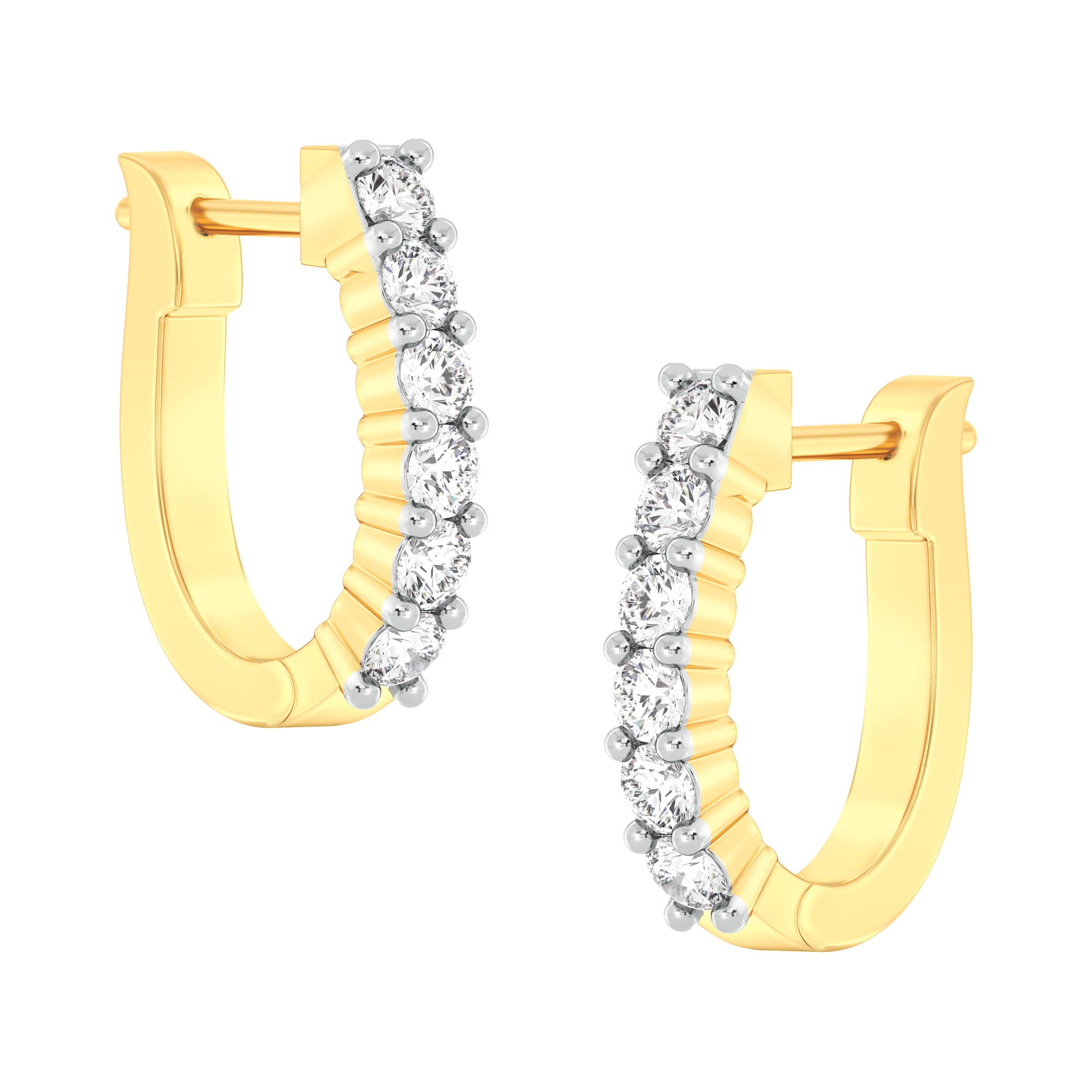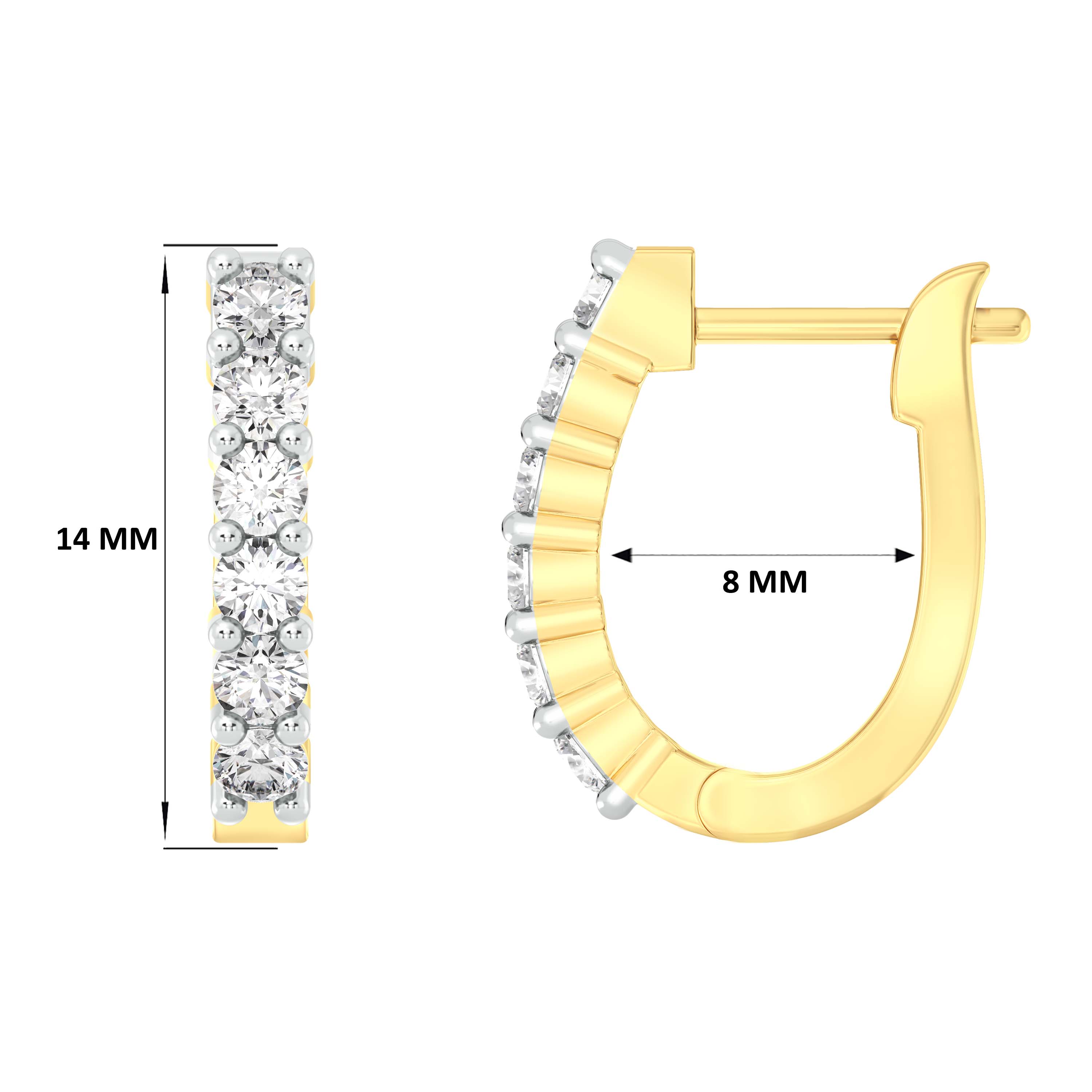 18k Yellow Gold and Diamond Huggies measuring 8mm thickness x 14mm width. Total gold weight is approximately 3.13g.
