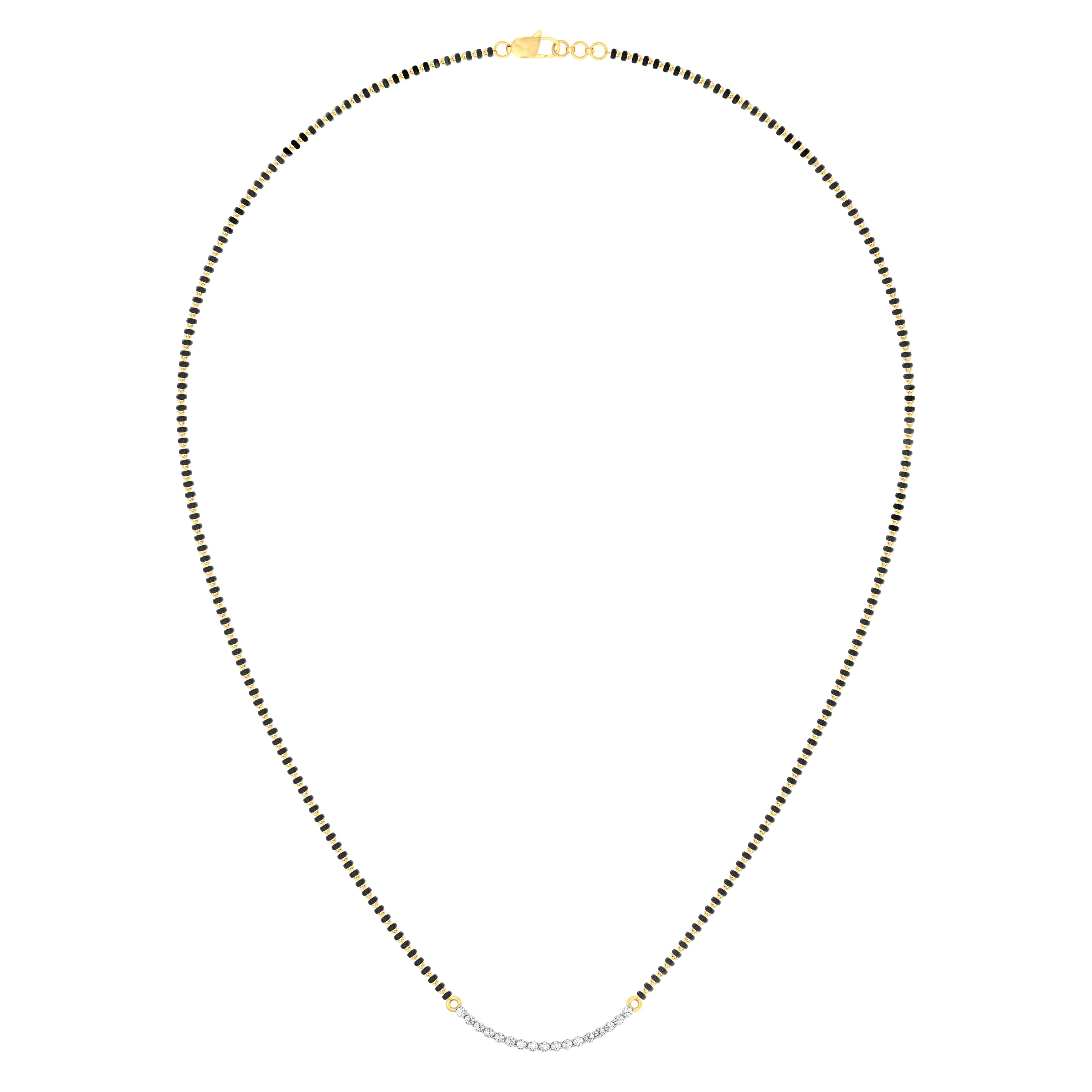 18k Yellow Gold and Diamond Mangalsutra Necklace measuring 18mm thickness x 2mm width. Total gold weight is approximately 5.35g.