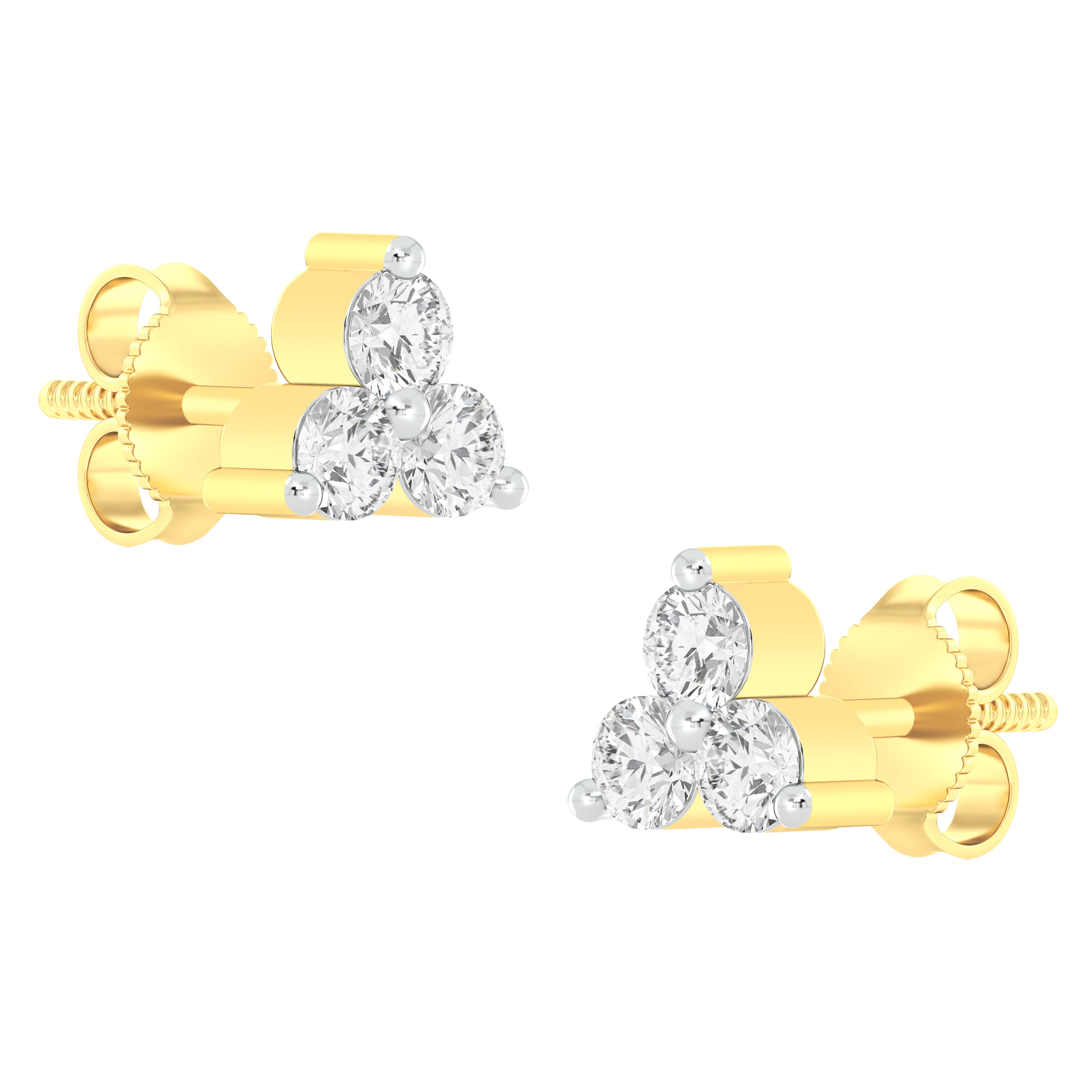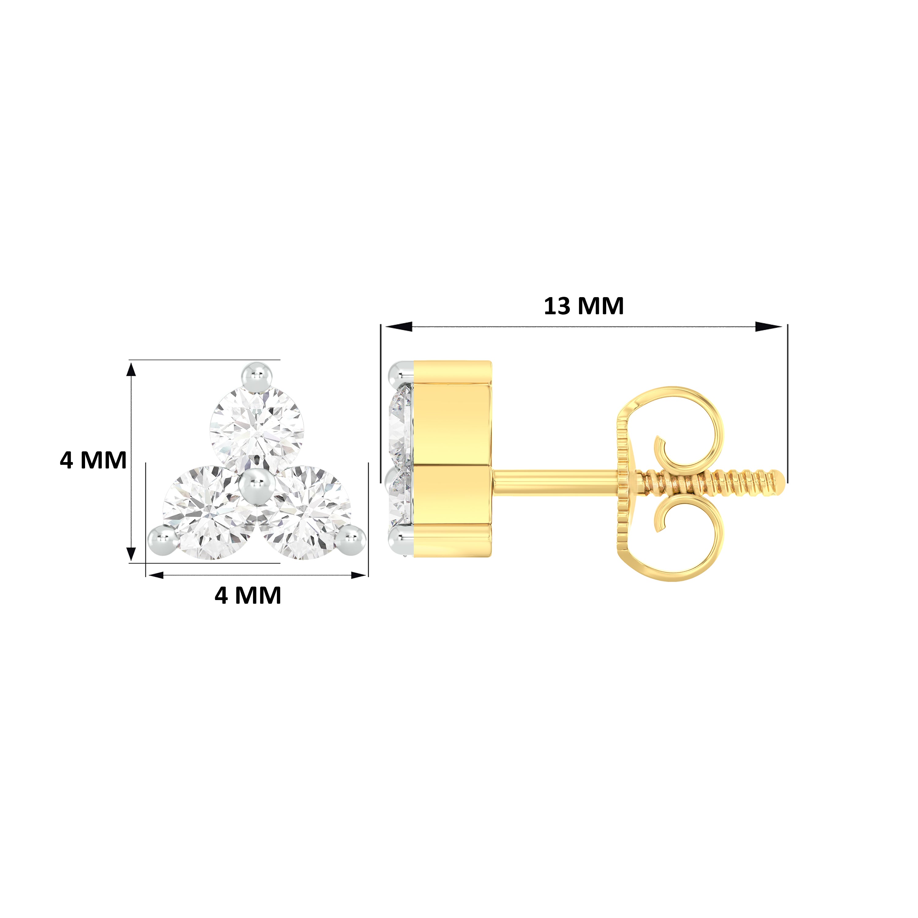 18k Yellow Gold and Diamond Stud measuring 4mm thickness x 4mm width. Total gold weight is approximately 1.44g.