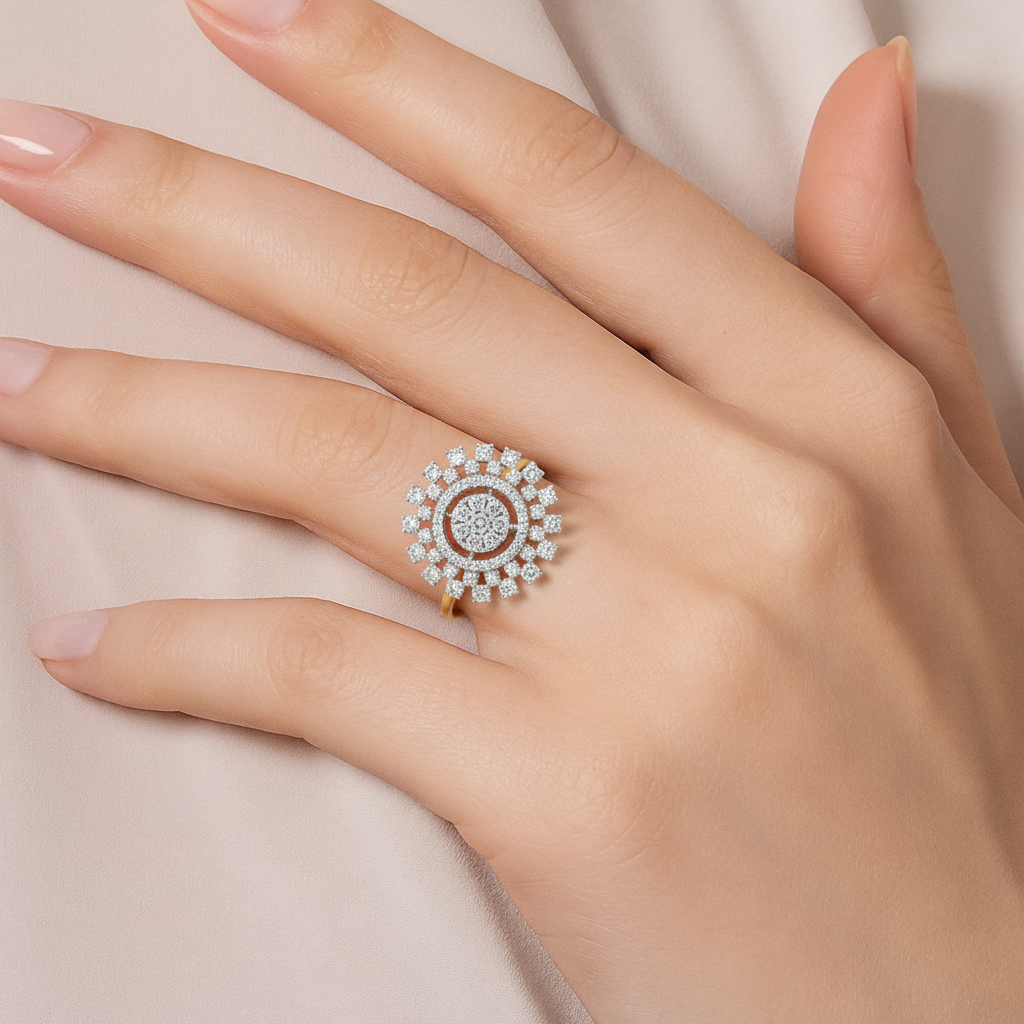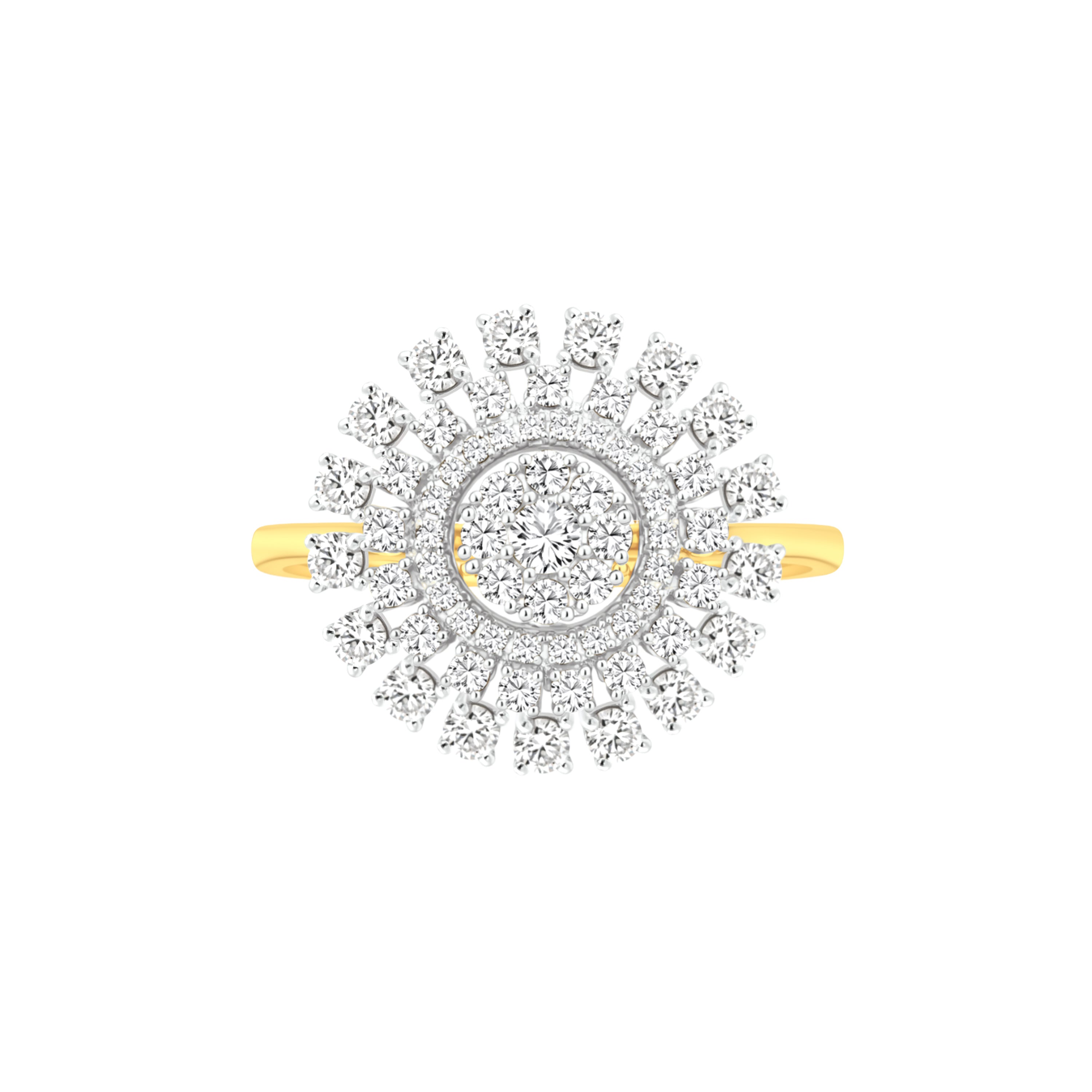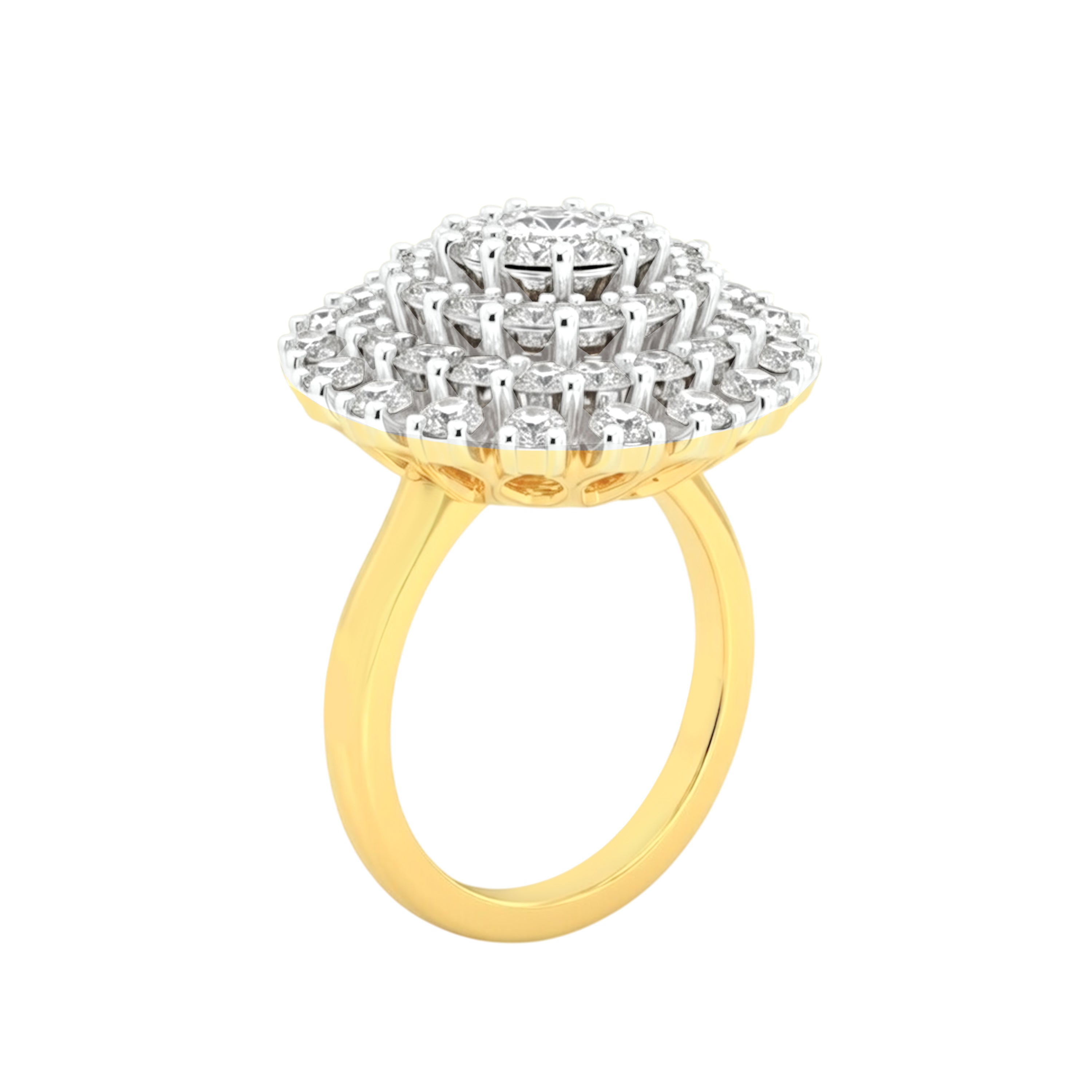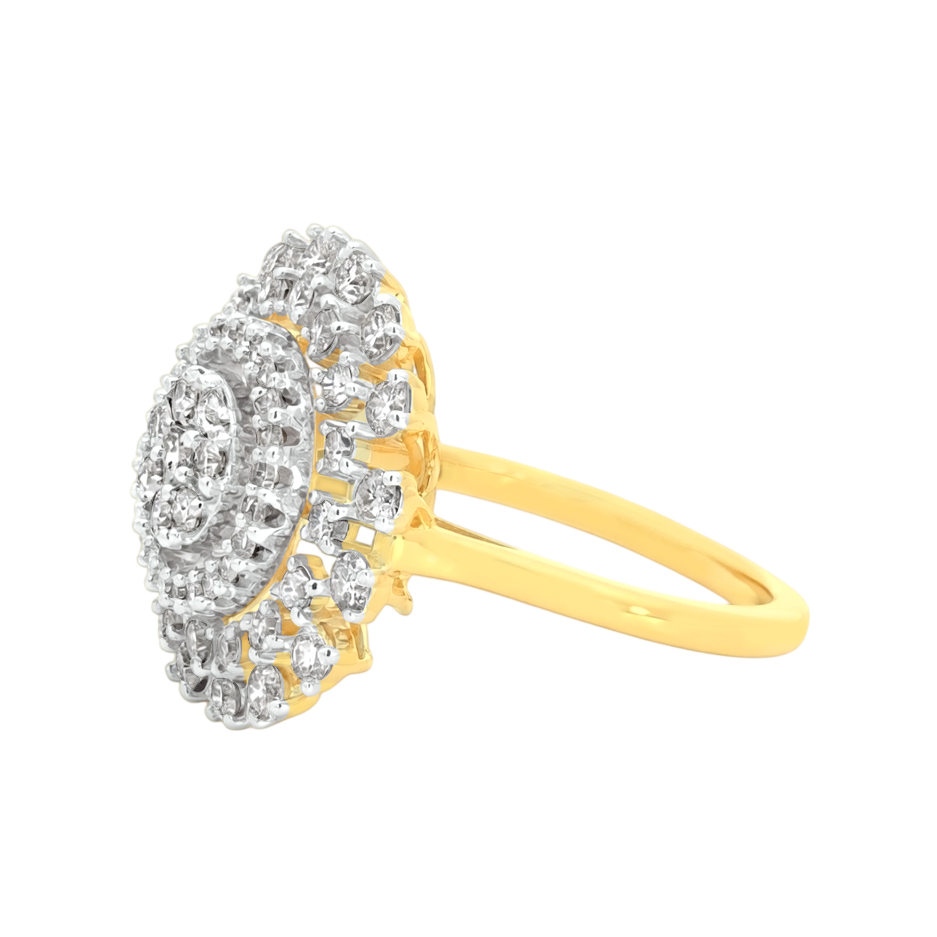 18k Yellow Gold and Diamond Sunflower Fancy Ring in size 5.5 measuring 25mm length x 16mm width. Total gold weight is approximately 4.52g.