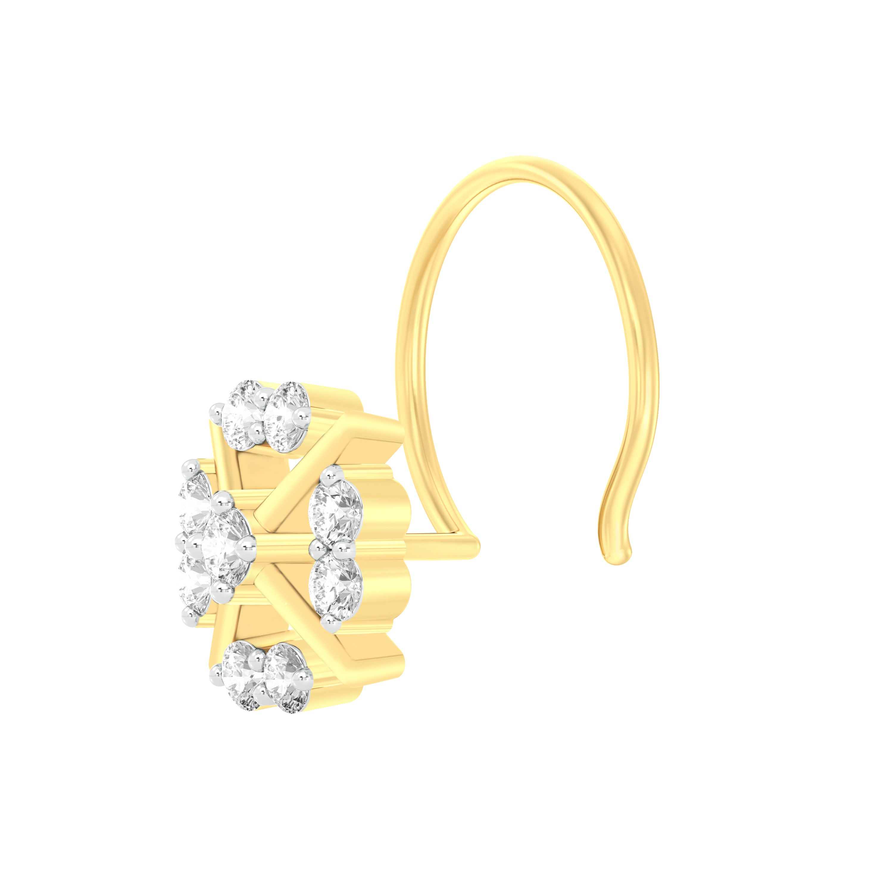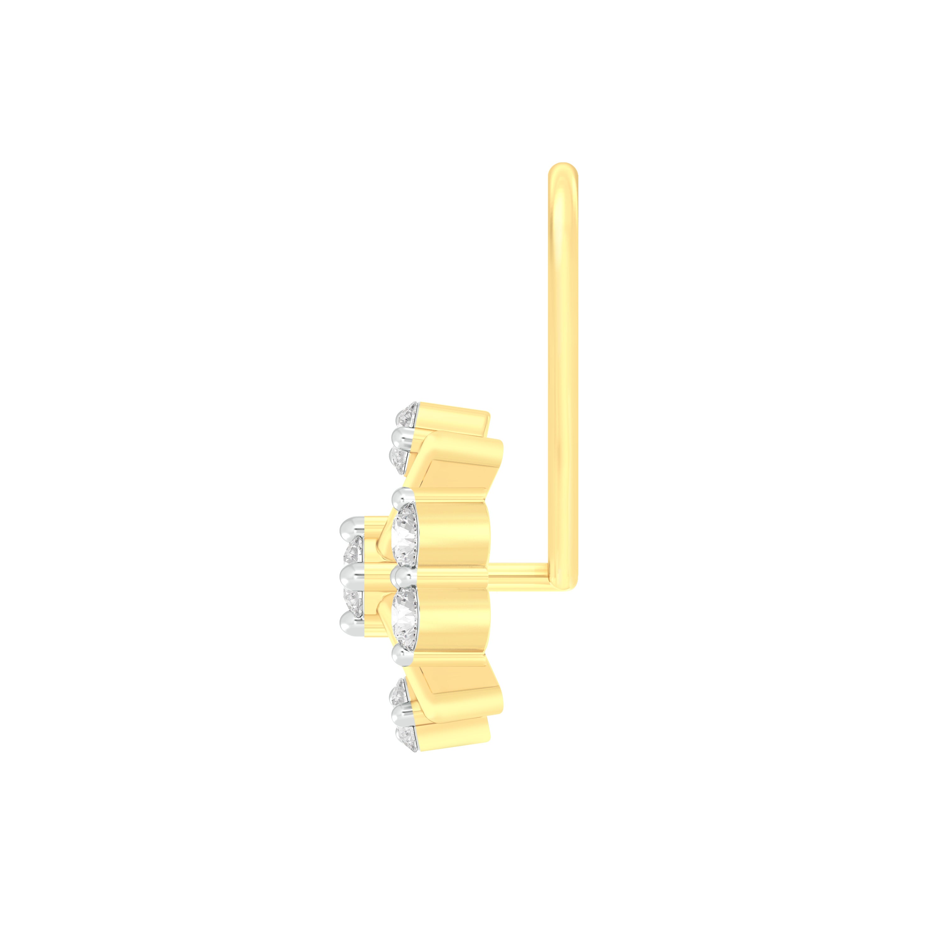 18k Yellow Gold Round Brilliant Cut Alluring Diamond Nose Pin with Wire measuring 5mm width. For health and safety reasons, nose pins and nose rings CANNOT BE exchanged or returned once purchased.
