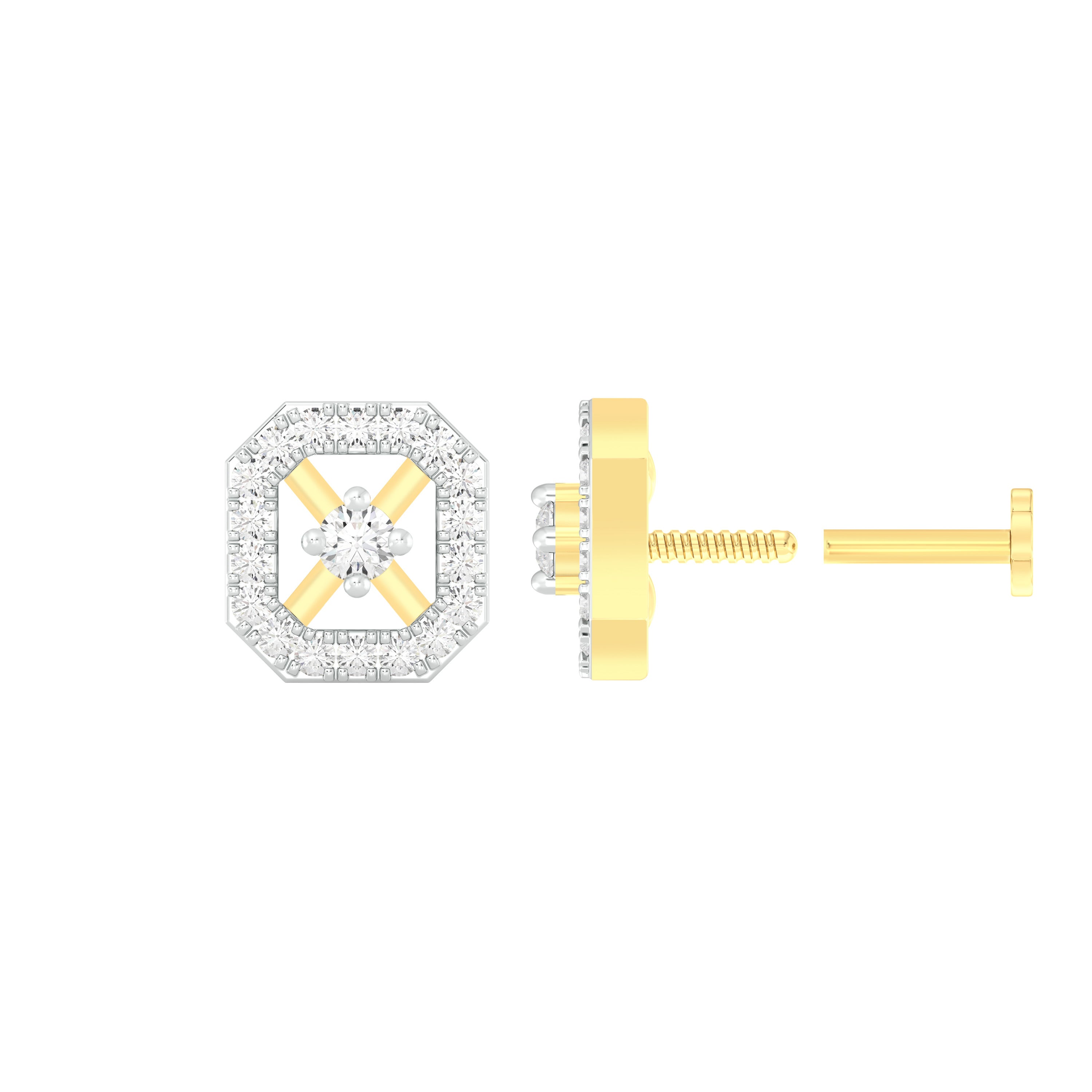 18k Yellow Gold Round Brilliant Cut Artistic Diamond Nose Pin with Screwback measuring 6mm width. For health and safety reasons, nose pins and nose rings CANNOT BE exchanged or returned once purchased.
