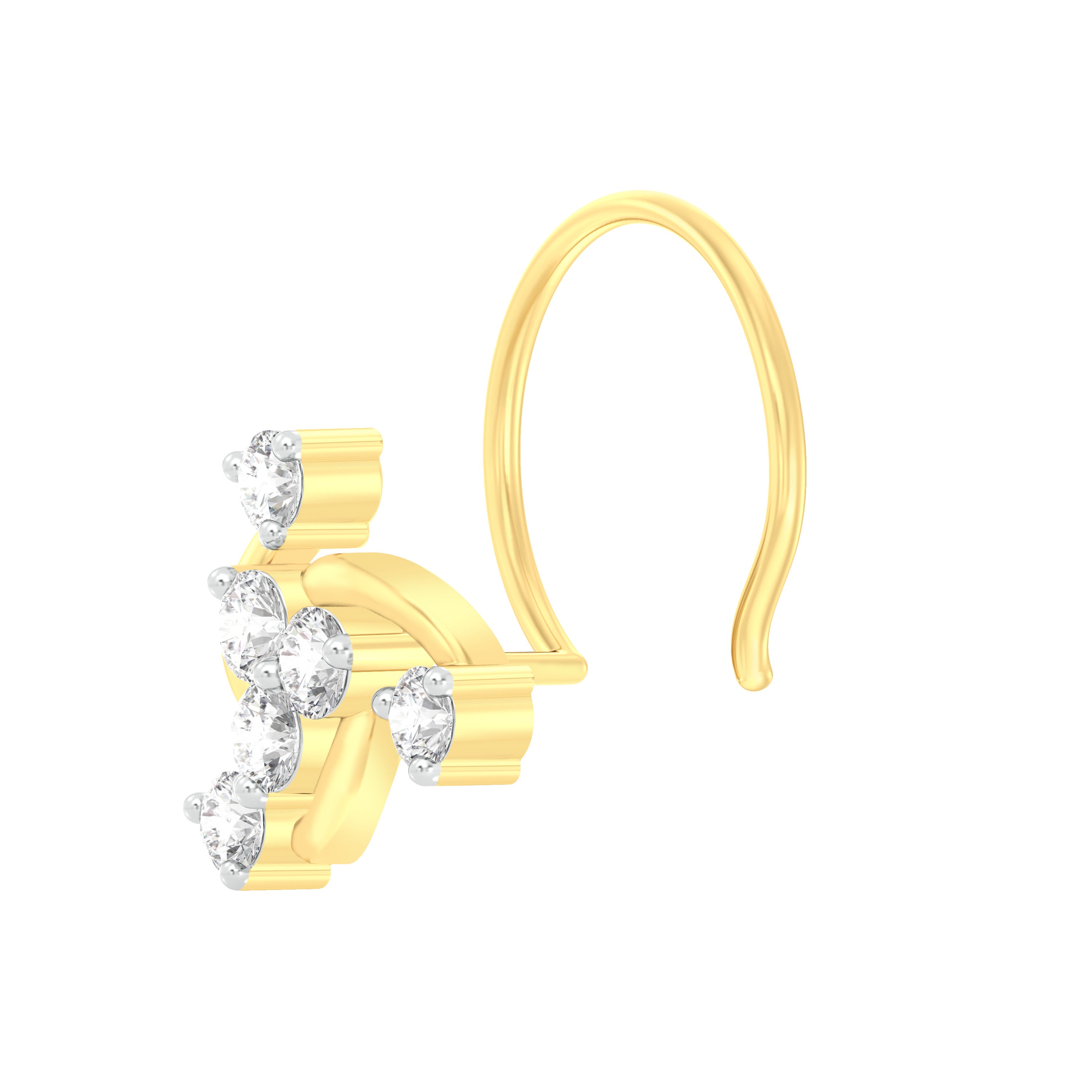 18k Yellow Gold Round Brilliant Cut Chic Diamond Nose Pin with Wire measuring 6mm width. For health and safety reasons, nose pins and nose rings CANNOT BE exchanged or returned once purchased.