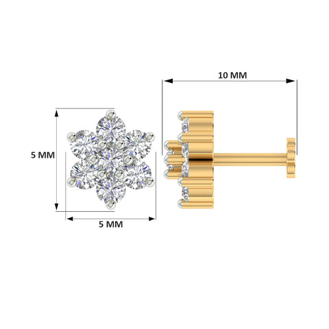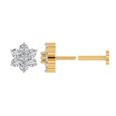18k Yellow Gold Round Brilliant Cut Contemporary Diamond Nose Pin with Screwback For health and safety reasons, nose pins and nose rings CANNOT BE exchanged or returned once purchased.