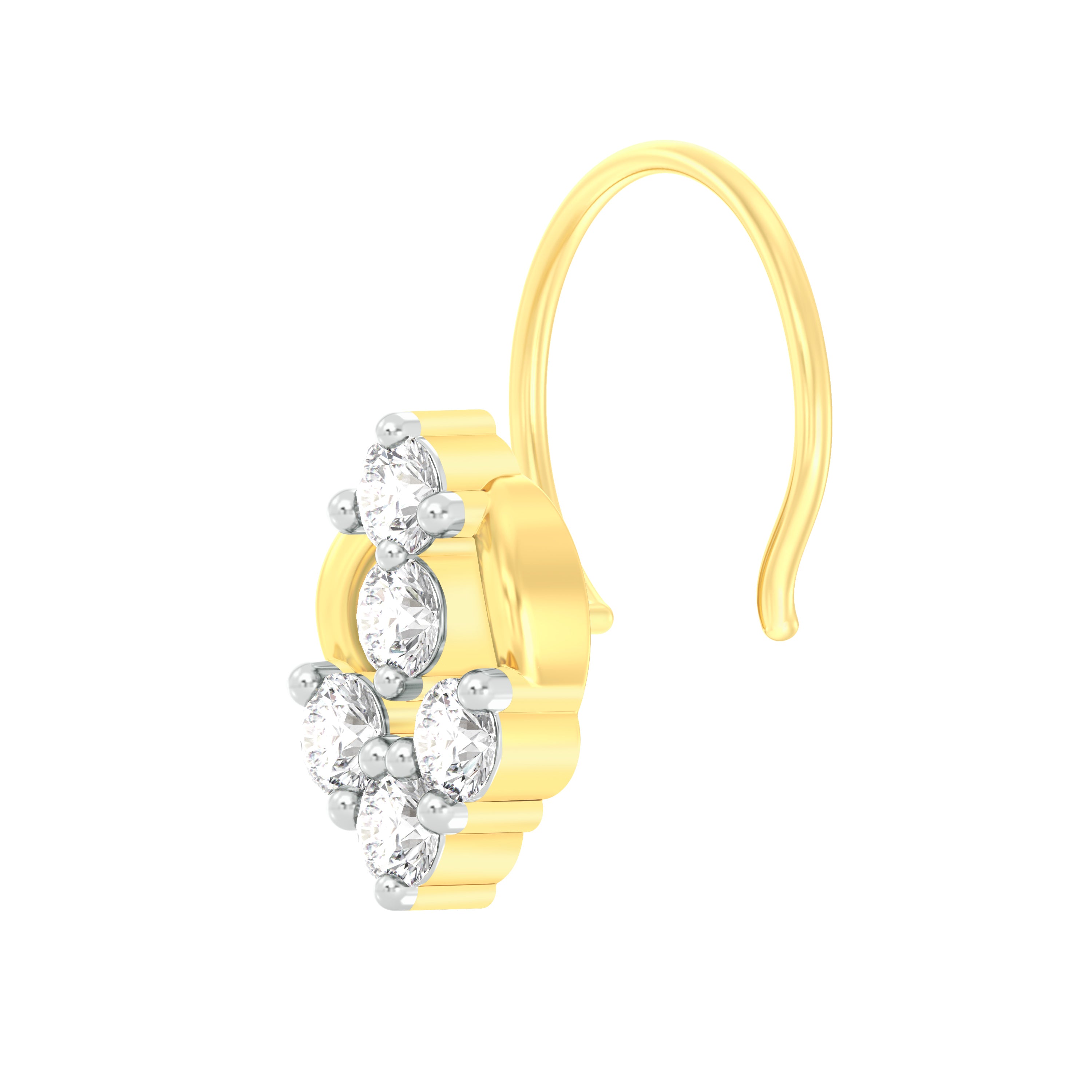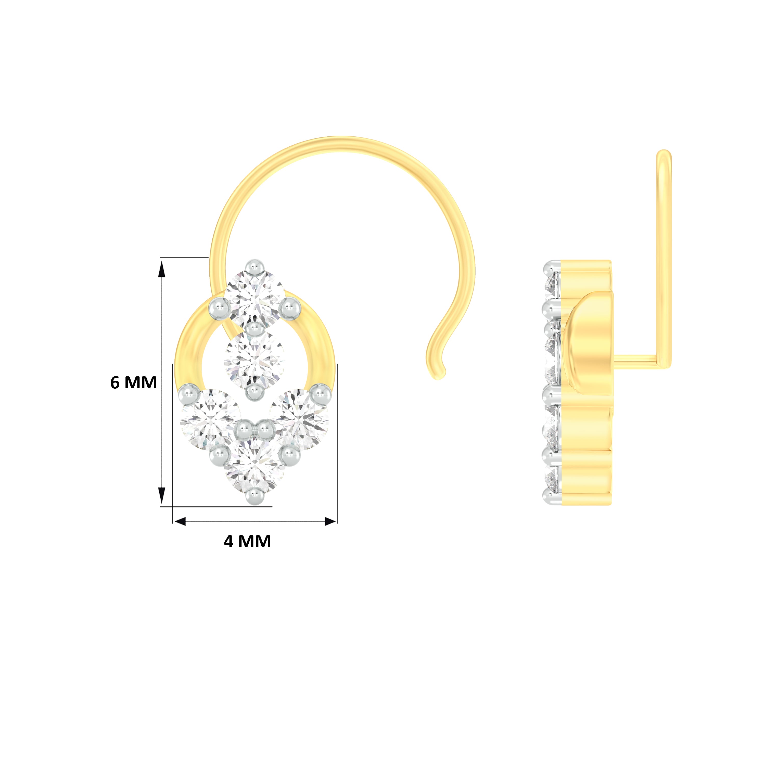 18k Yellow Gold Round Brilliant Cut Delicate Diamond Nose Pin with Wire measuring 6mm width. For health and safety reasons, nose pins and nose rings CANNOT BE exchanged or returned once purchased.