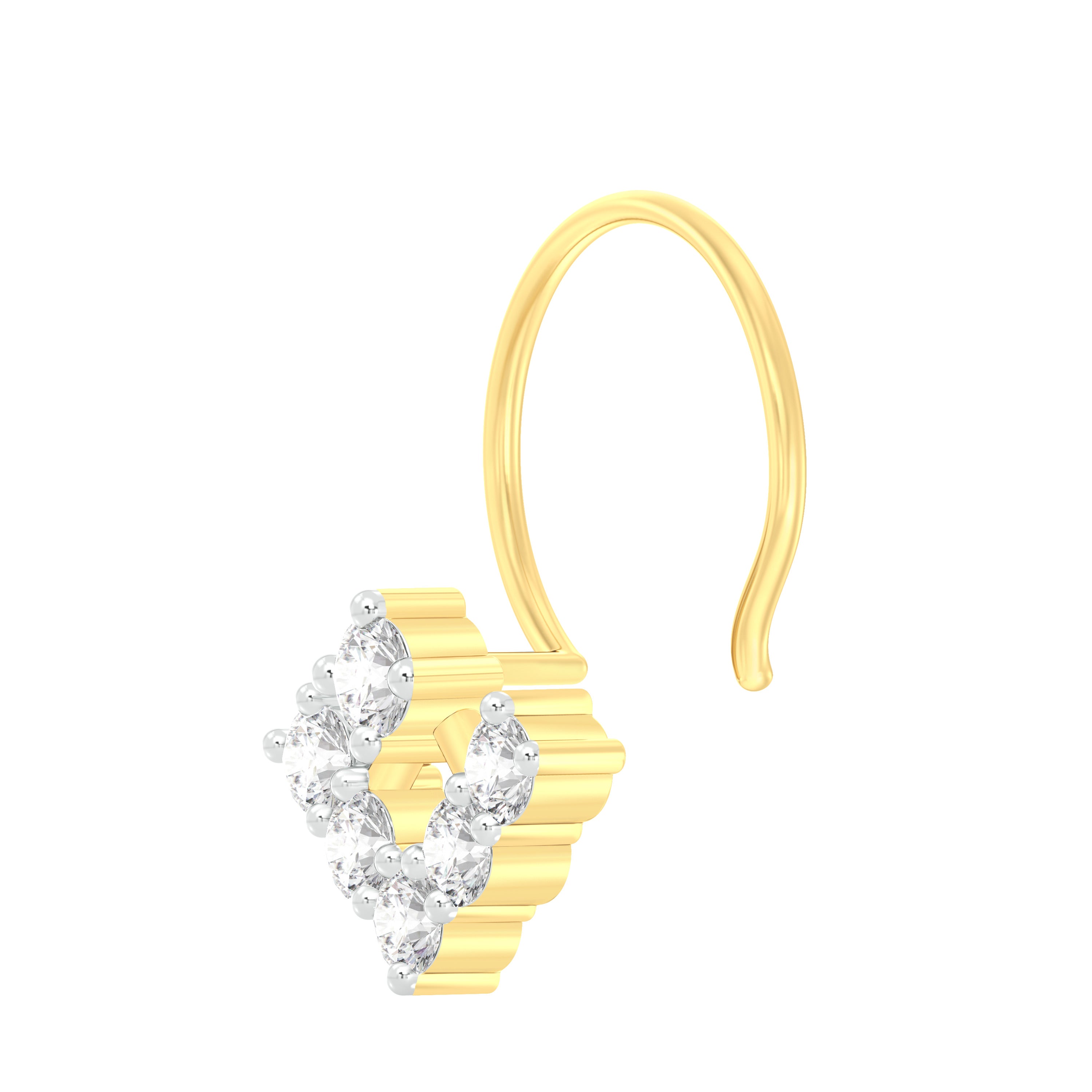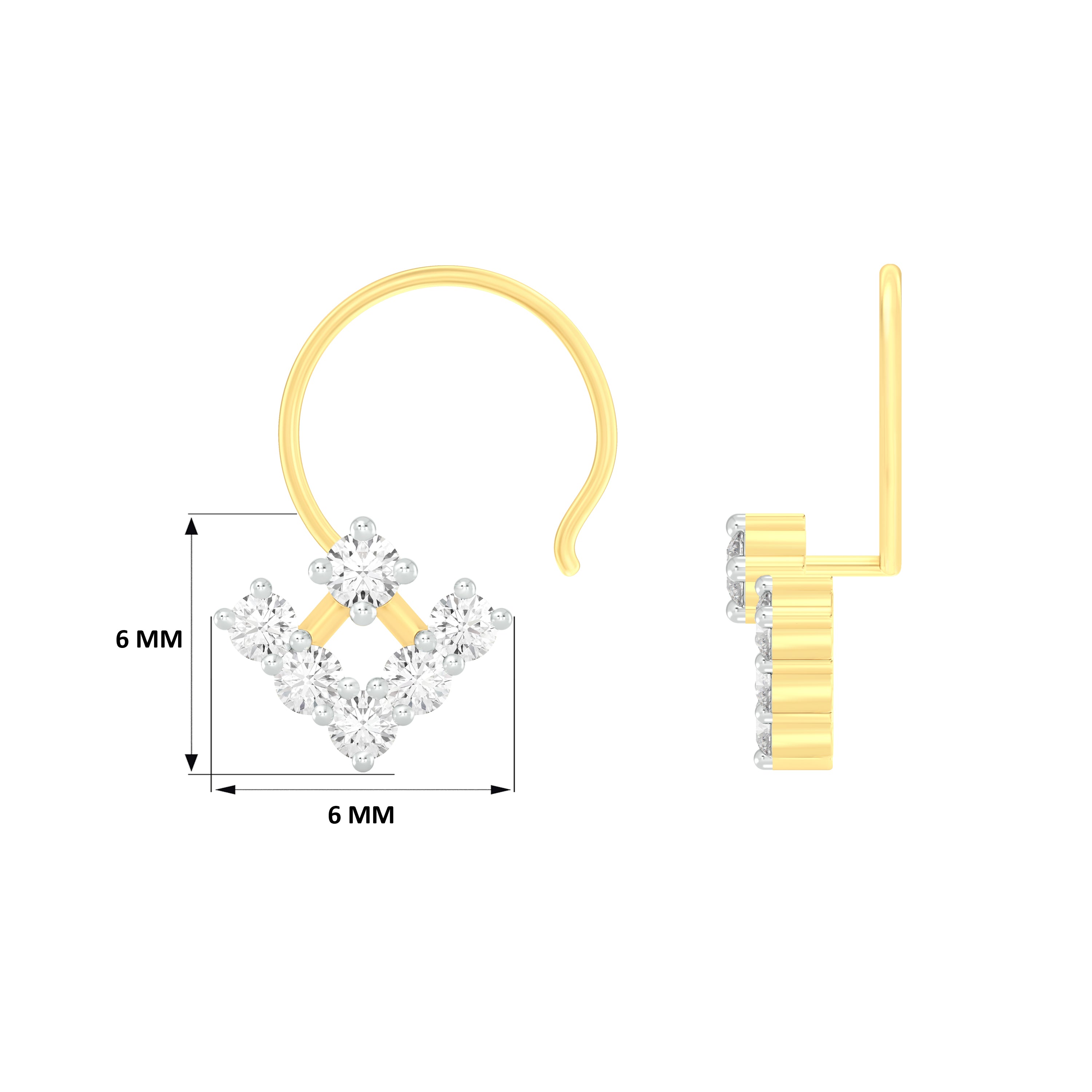 18k Yellow Gold Round Brilliant Cut Eye-catching Diamond Nose Pin with Wire measuring 6mm width. For health and safety reasons, nose pins and nose rings CANNOT BE exchanged or returned once purchased.