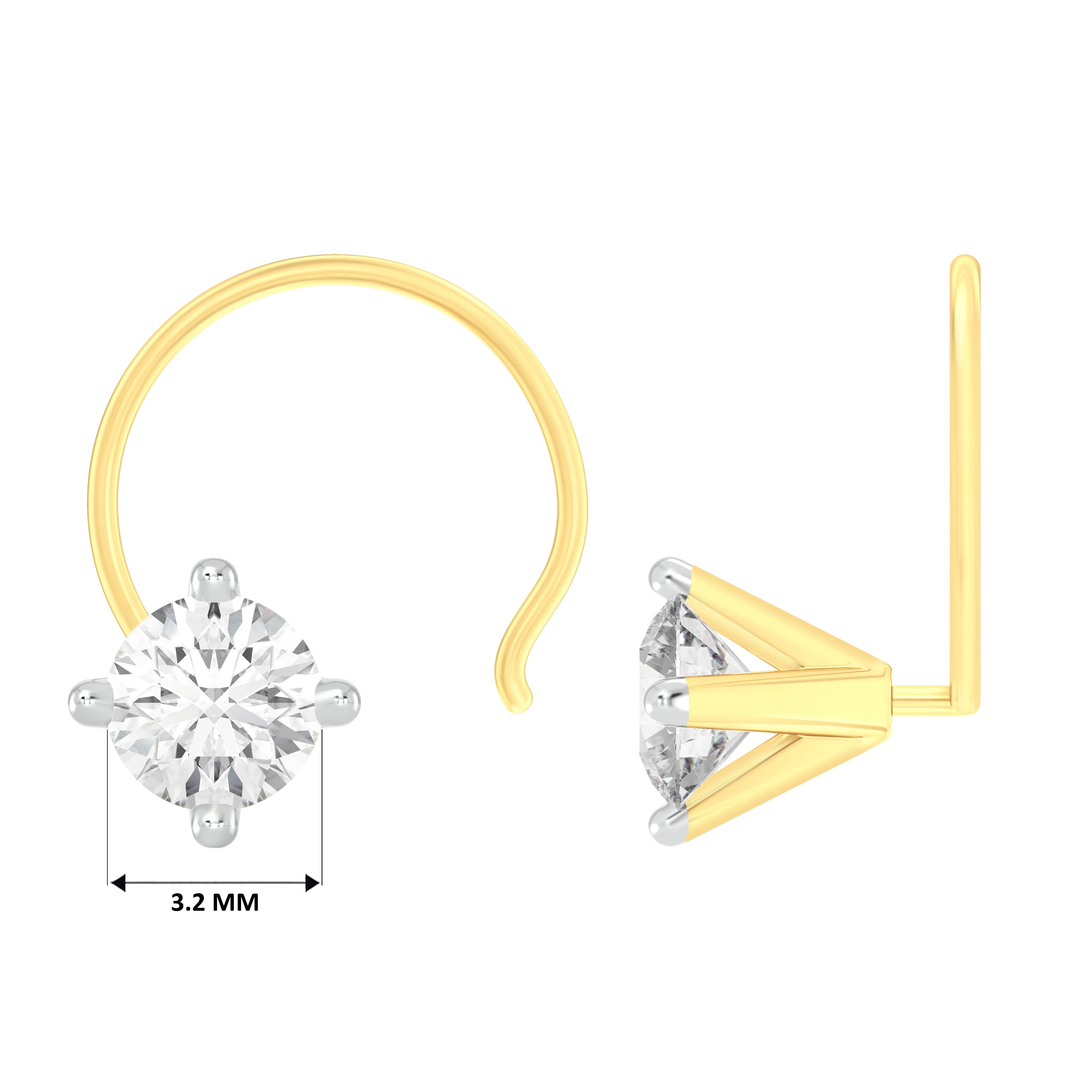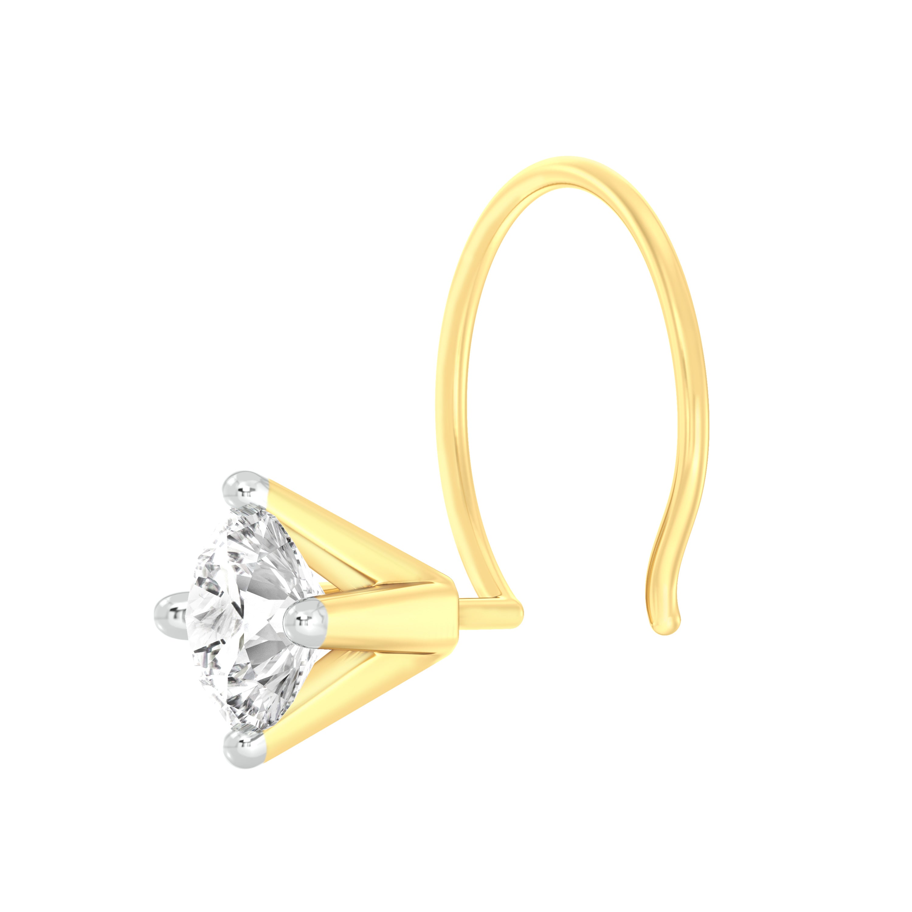 18k Yellow Gold Round Shape Diamond Nose Pin with Wire For health and safety reasons, nose pins and nose rings CANNOT BE exchanged or returned once purchased.