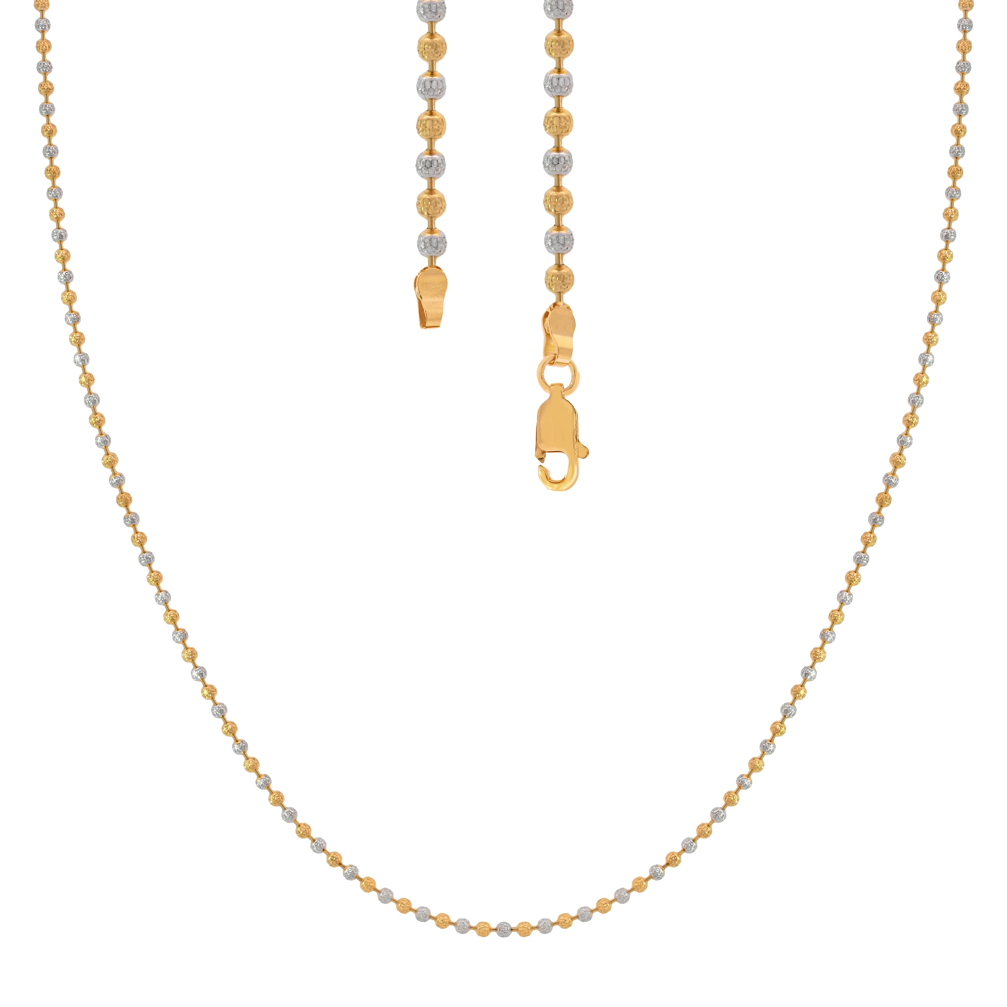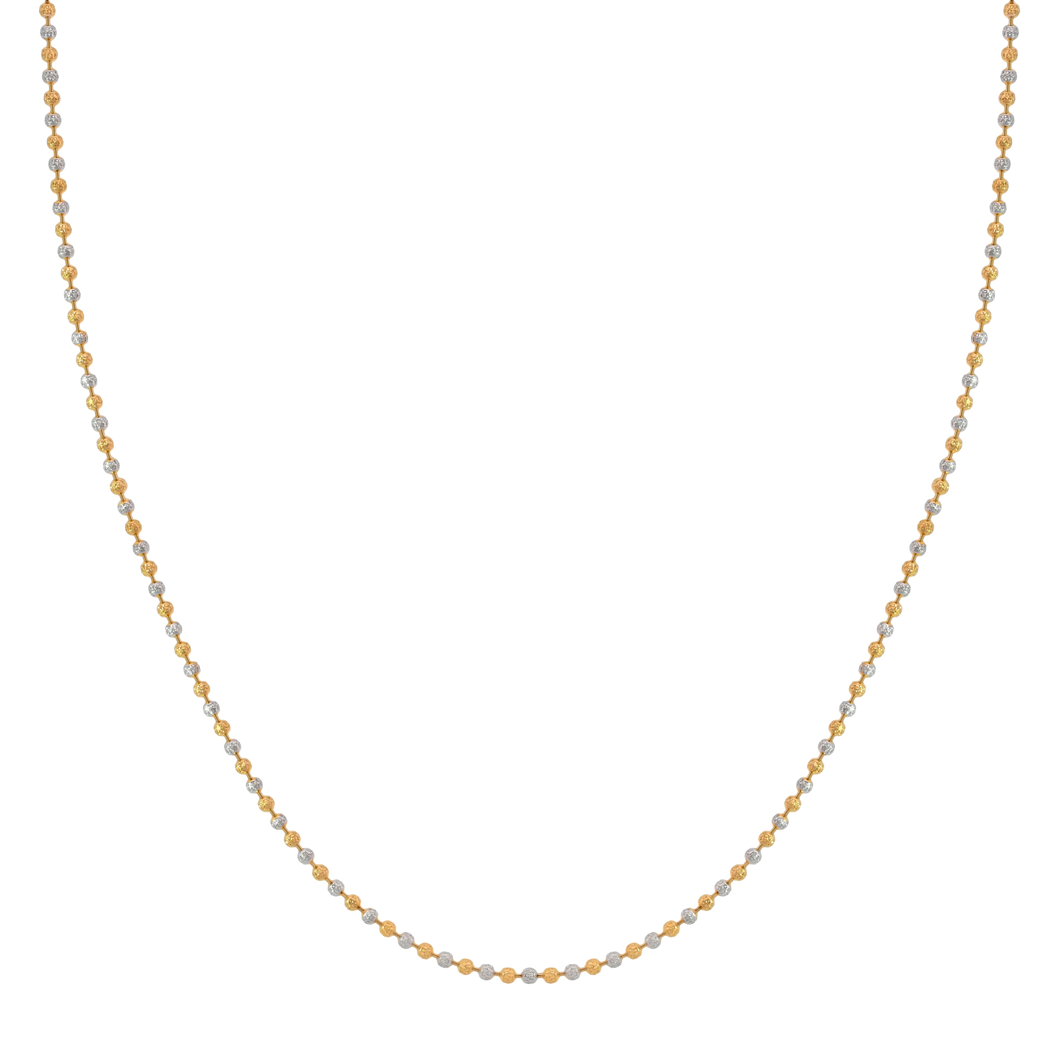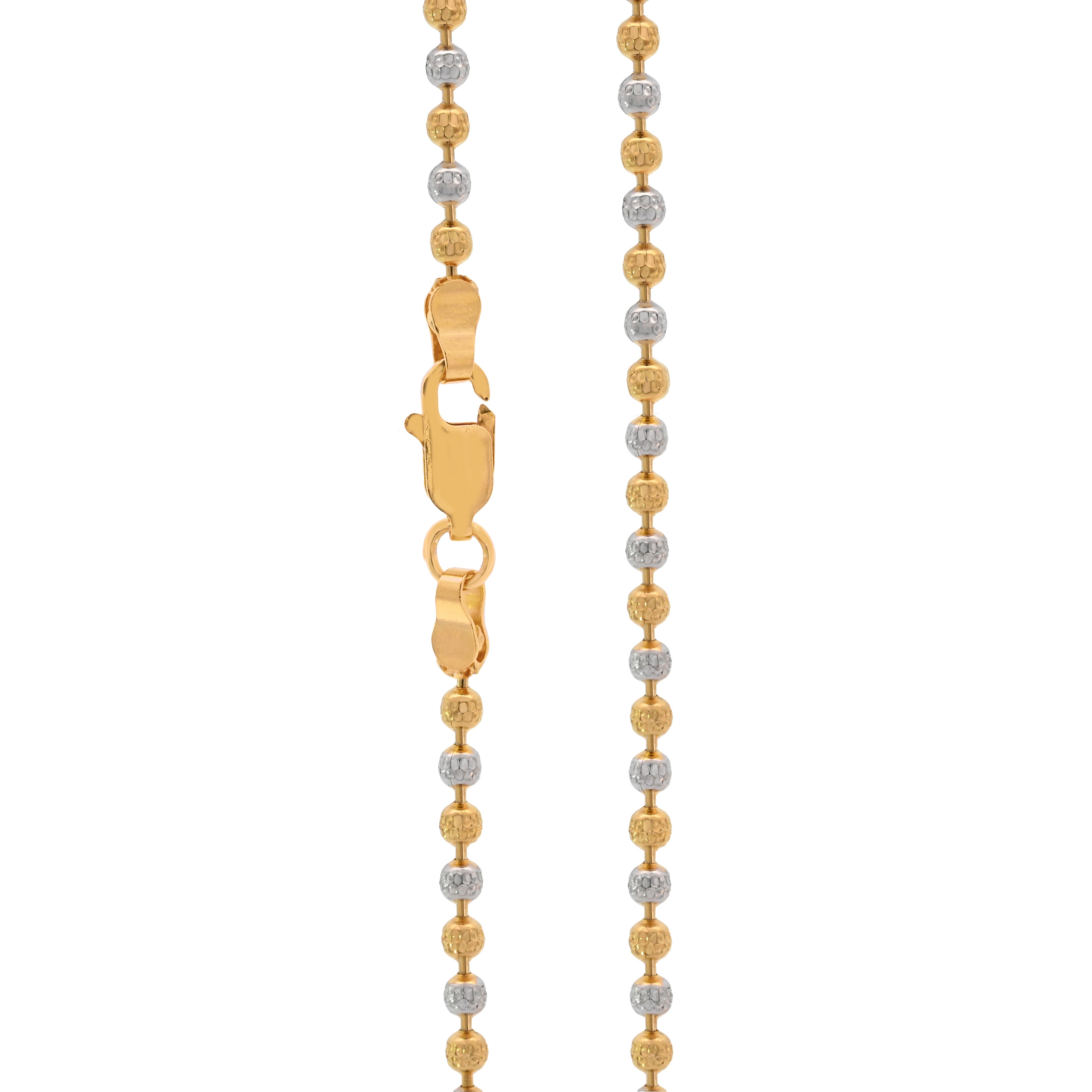 22k Two Tone Gold bead chain with lobster clasp measuring 16 inches long and 2mm thick.