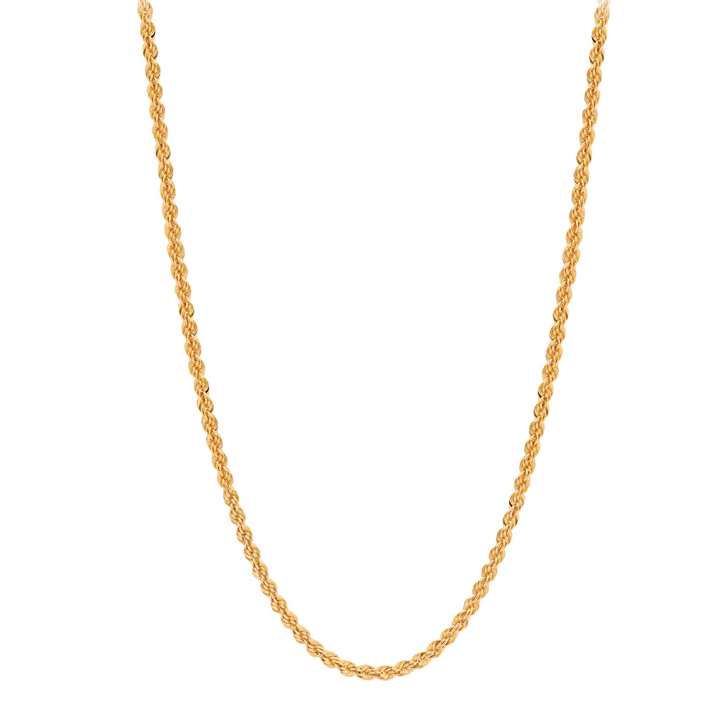 22k gold chain in a beautiful rope chain design. Chain measures 4mm in thickness and features secure lobster clasp.