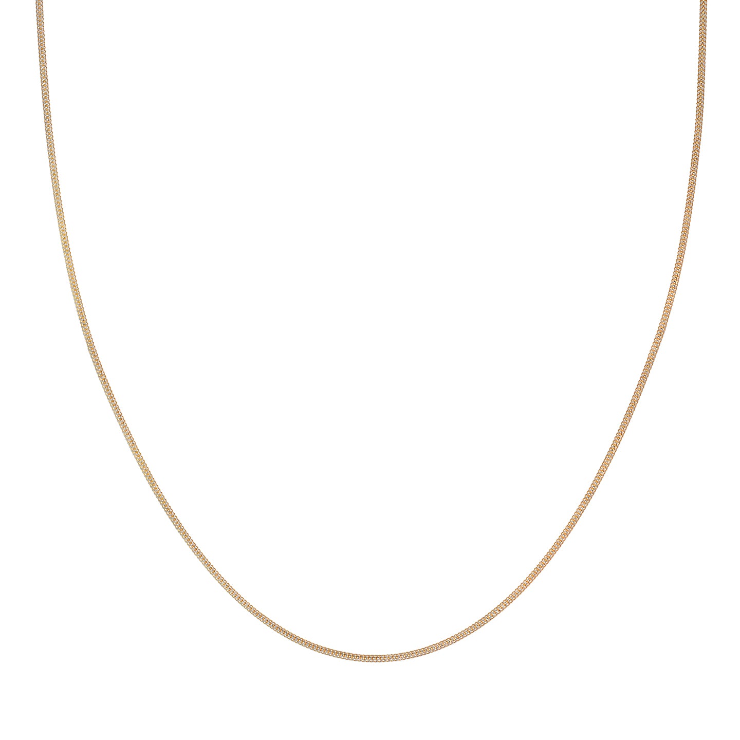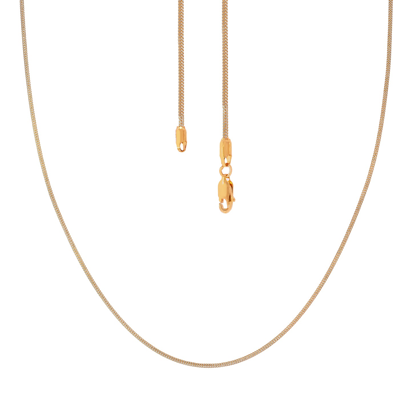 22k Gold Brushed Finish Round Fox Chain measuring 1.5mm width x 16 inch length. Total gold weight is approximately 5.01g.