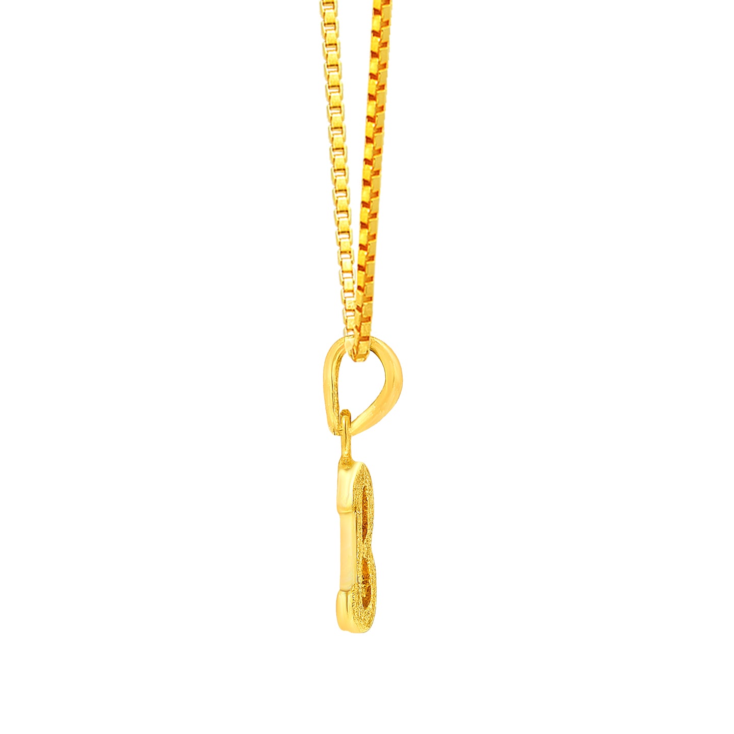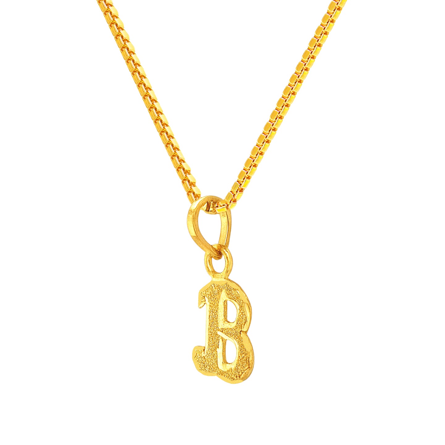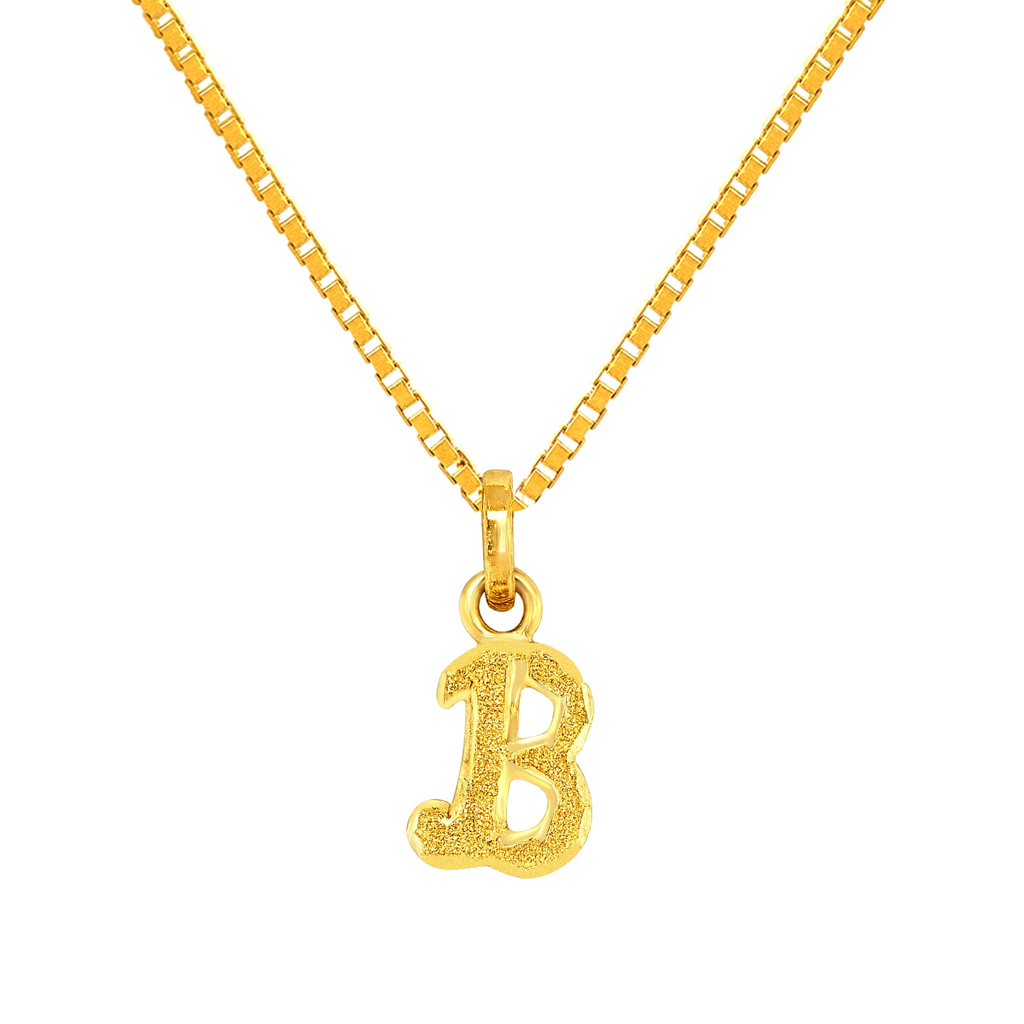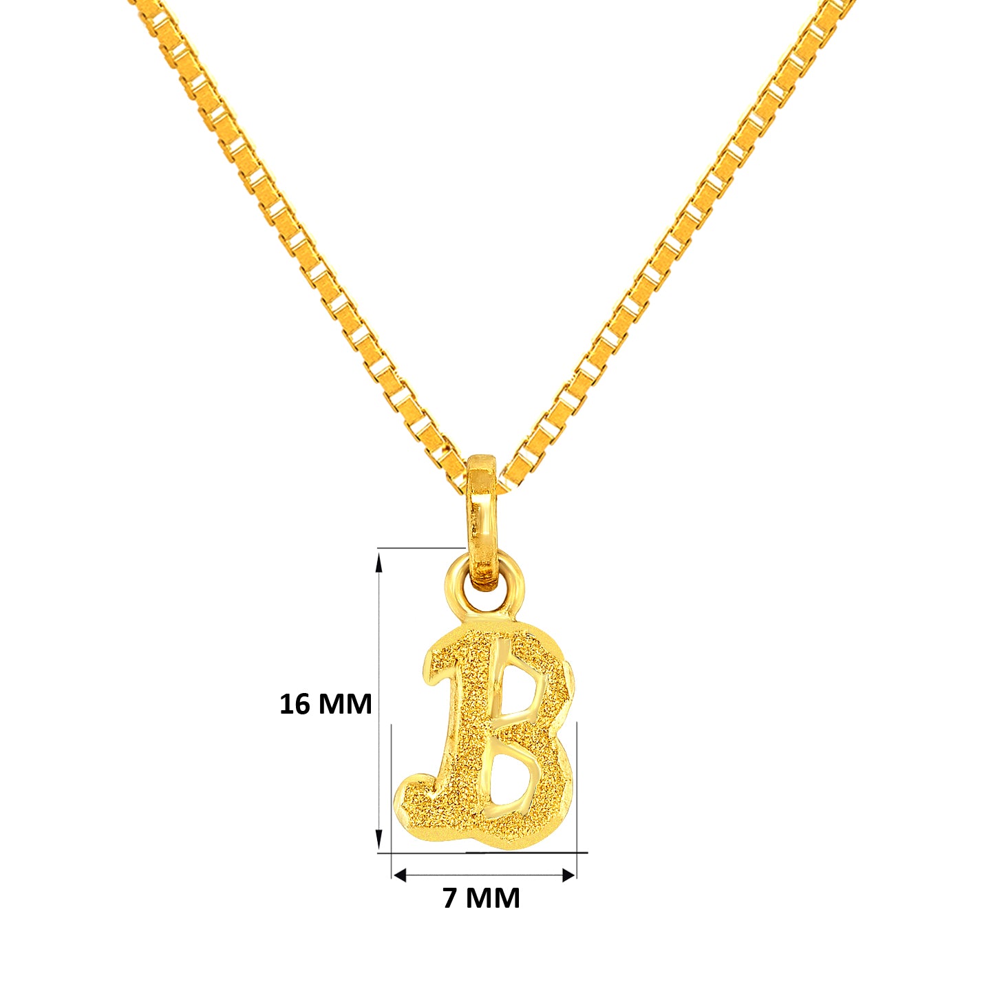22k gold pendant with initial "B." Pendant measures 16mm in length and 7mm in width. Pendant can fit a chain up to 2mm in thickness. Pendant only, no chain included.