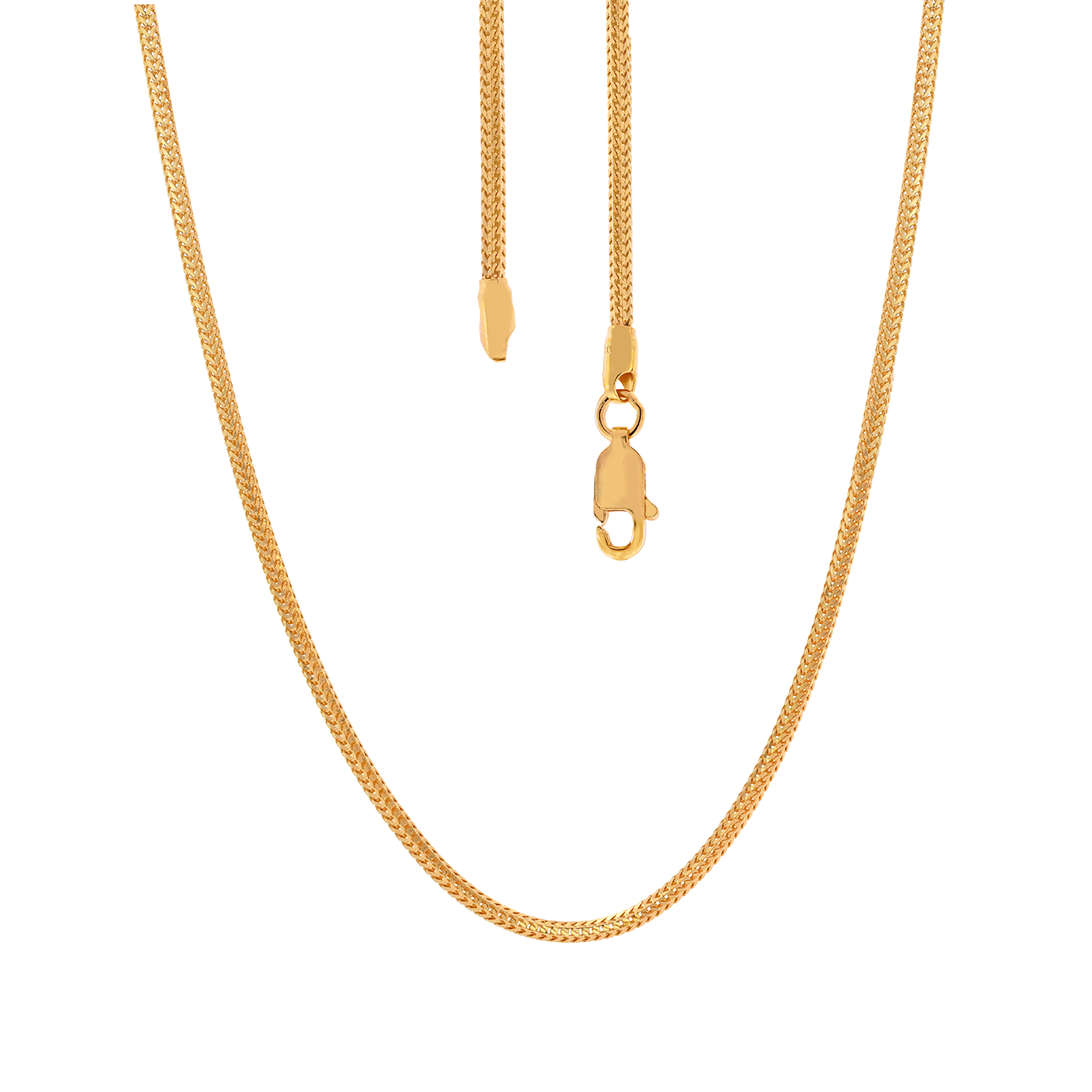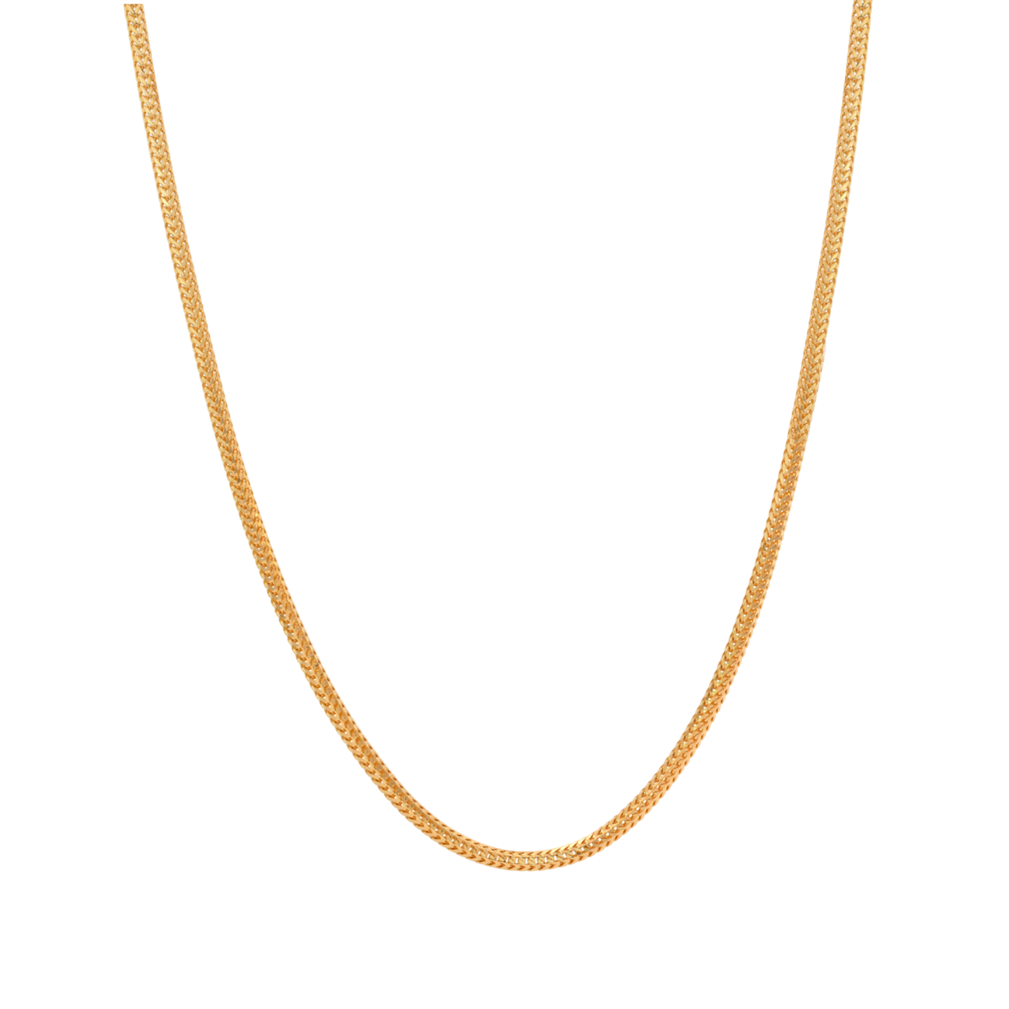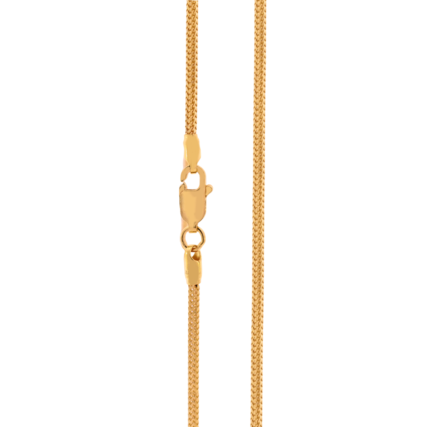 22k gold chain in a small foxtail inspired design. Chain measures 2mm in thickness and features secure lobster clasp.
